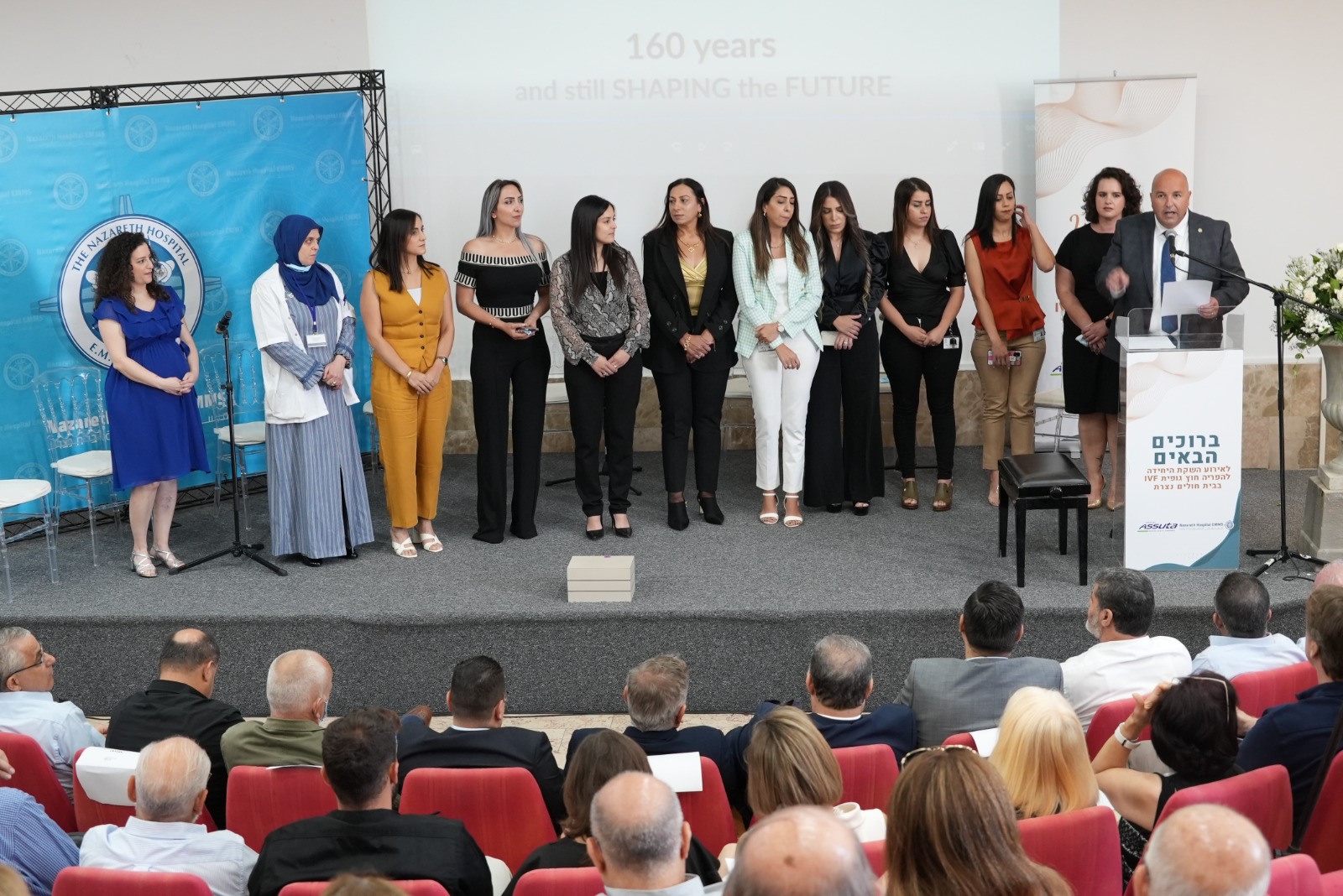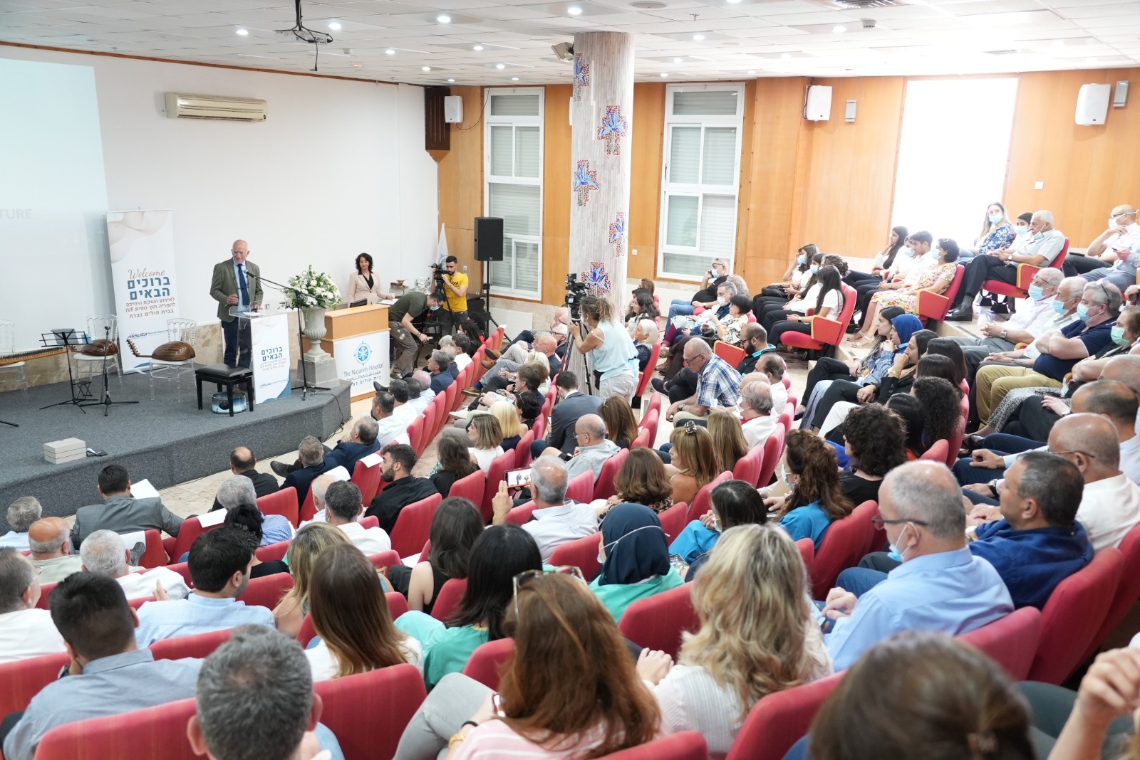 استهلت البرنامج عريفة الحفل الاعلامية غالية ناطور، بالترحيب بالحضور الكريم وأشادت بدور مستشفى الناصرة بتقديم الخدمات الطبية في المنطقة، وشمل الحفل كلمات ترحيبية من إدارة مؤسسة النازرت تراست، إدارة مستشفى الناصرة، رئيس بلدية الناصرة، وزير الصحة، إدارة أسوتا مراكز طبية، ورئيس جمعية أيلا، ومدير وحدة الاخصاب الخارجي.
