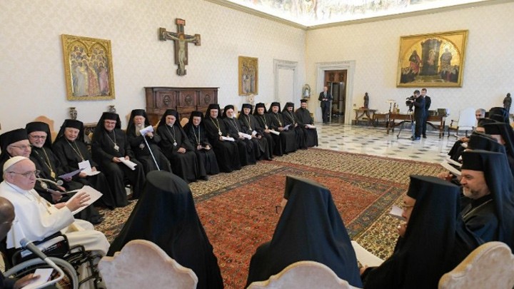 خلال اللّقاء الّذي جمع الإثنين البابا فرنسيس ببطريرك الرّوم الملكيّين الكاثوليك يوسف العبسيّ وأساقفة كنيسته، قبيل افتتاح أعمال السّينودس لهذا العامّ الّذي يُعقد في روما، ألقى العبسيّ كلمة عبّر فيها عن "فرحة الآباء بهذا اللّقاء الّذي يحمل رمزيّة كبيرة"، لافتًا إلى أنّه اللّقاء الخاصّ الثّاني منذ انتخابه بطريركًا في حزيران/ يونيو 2017.