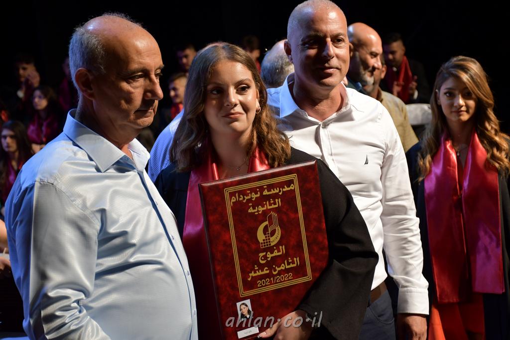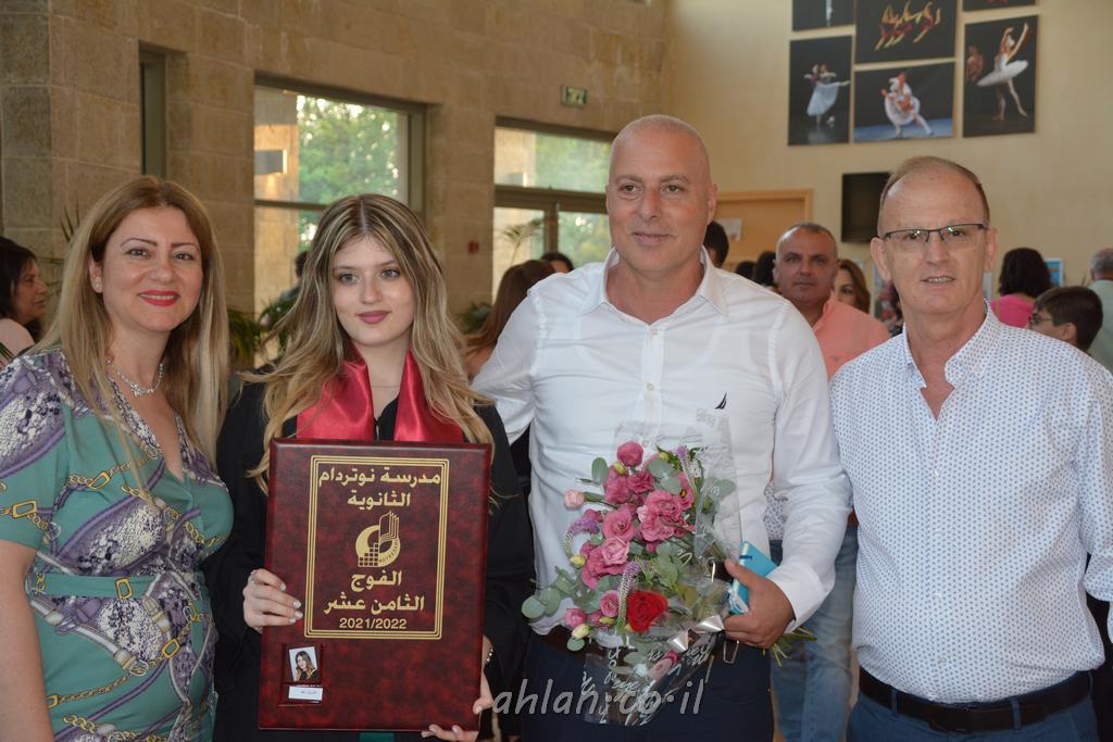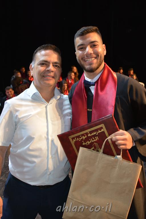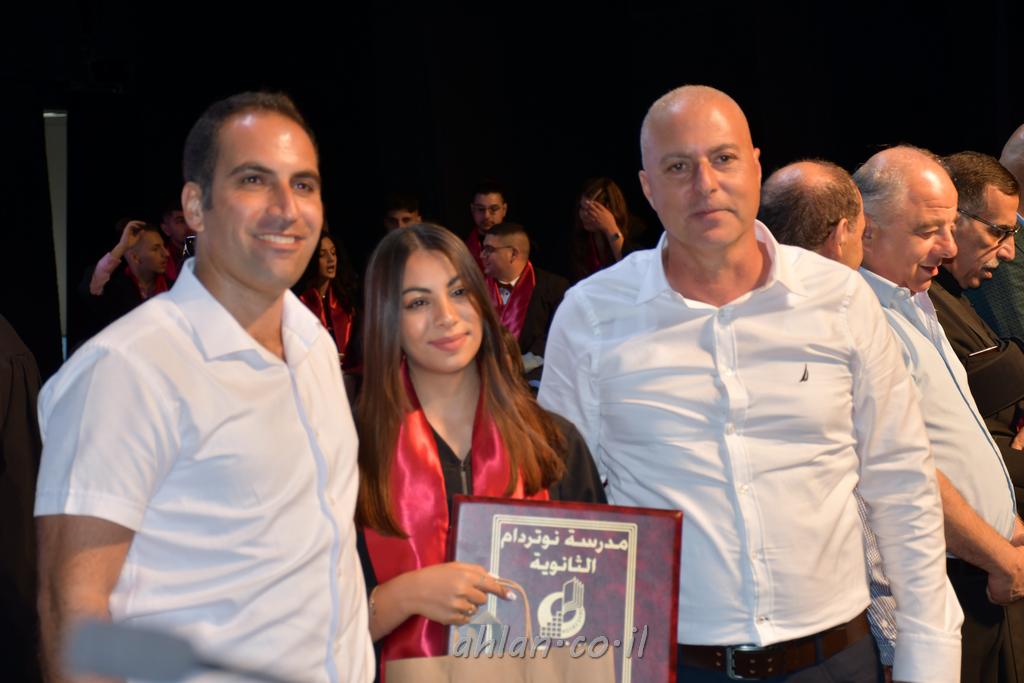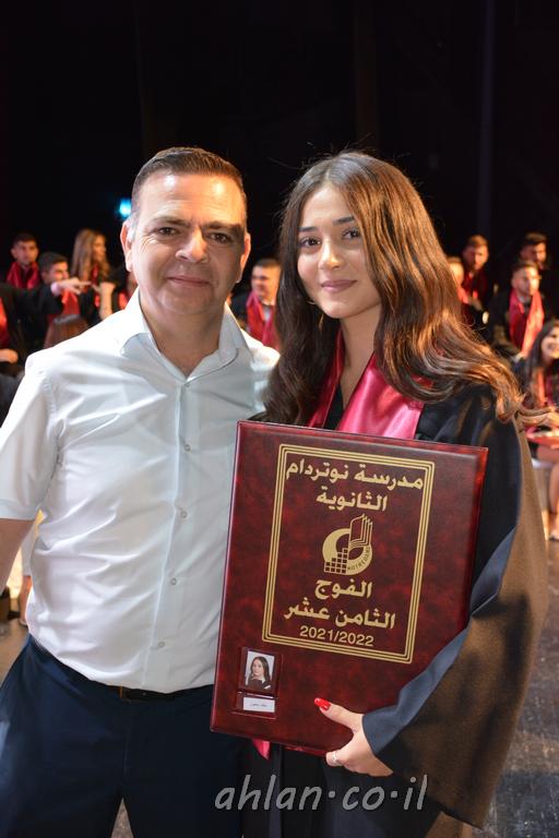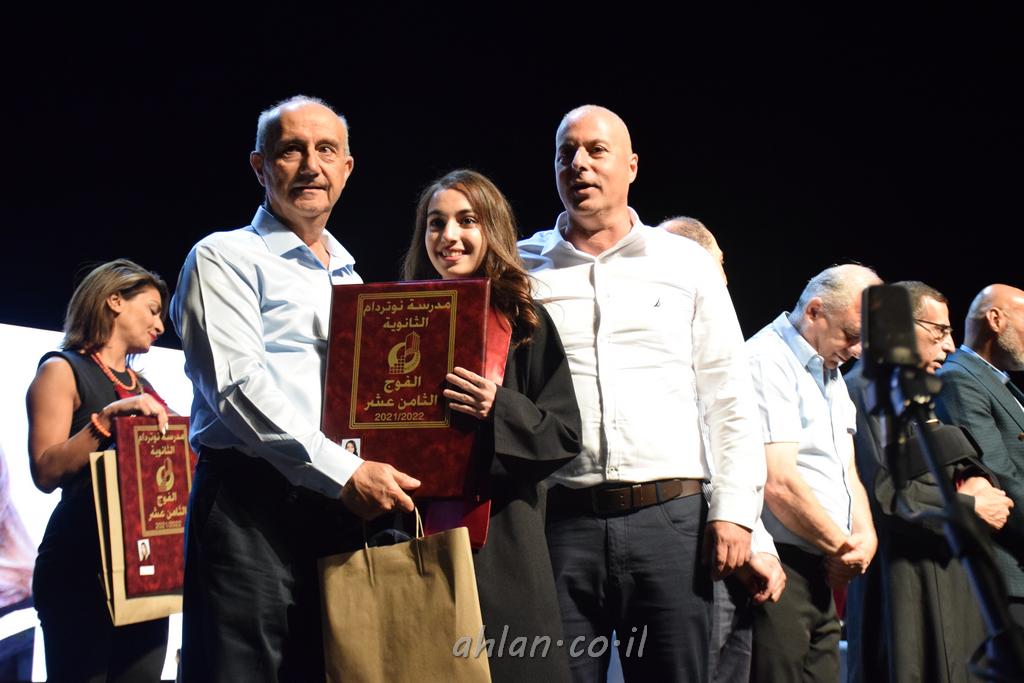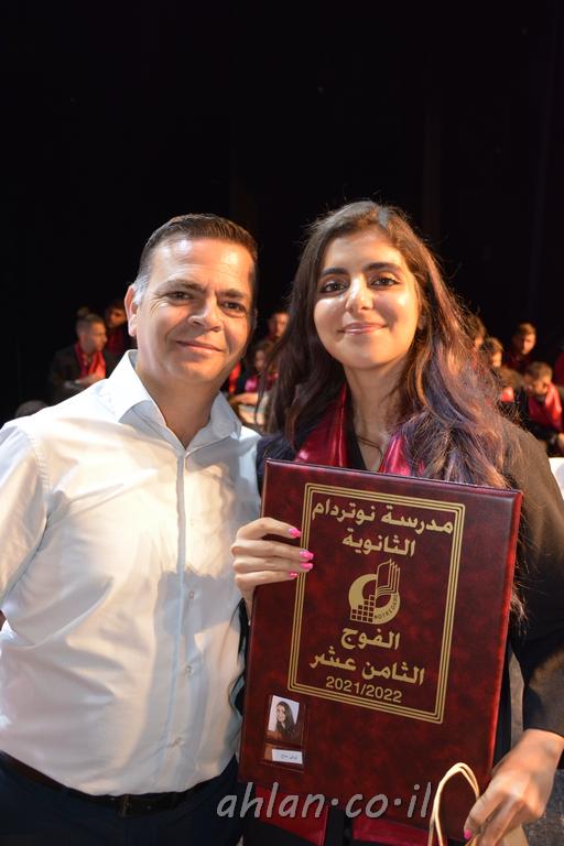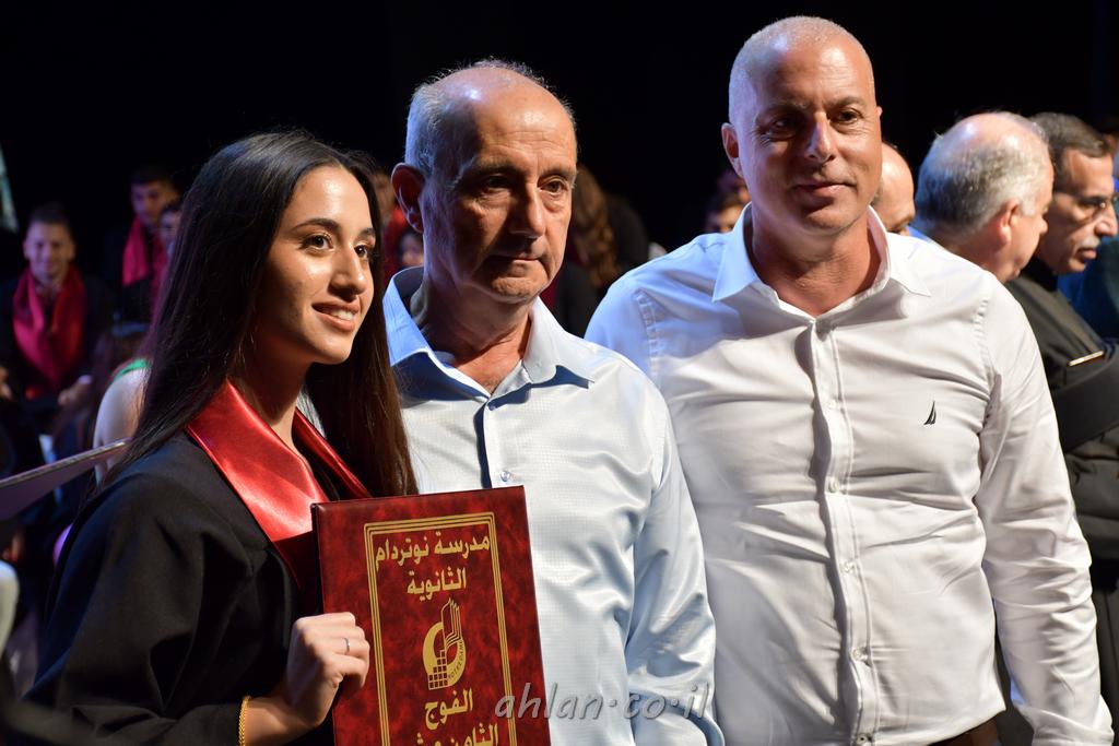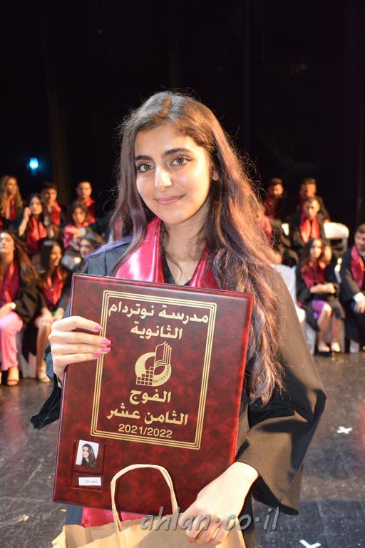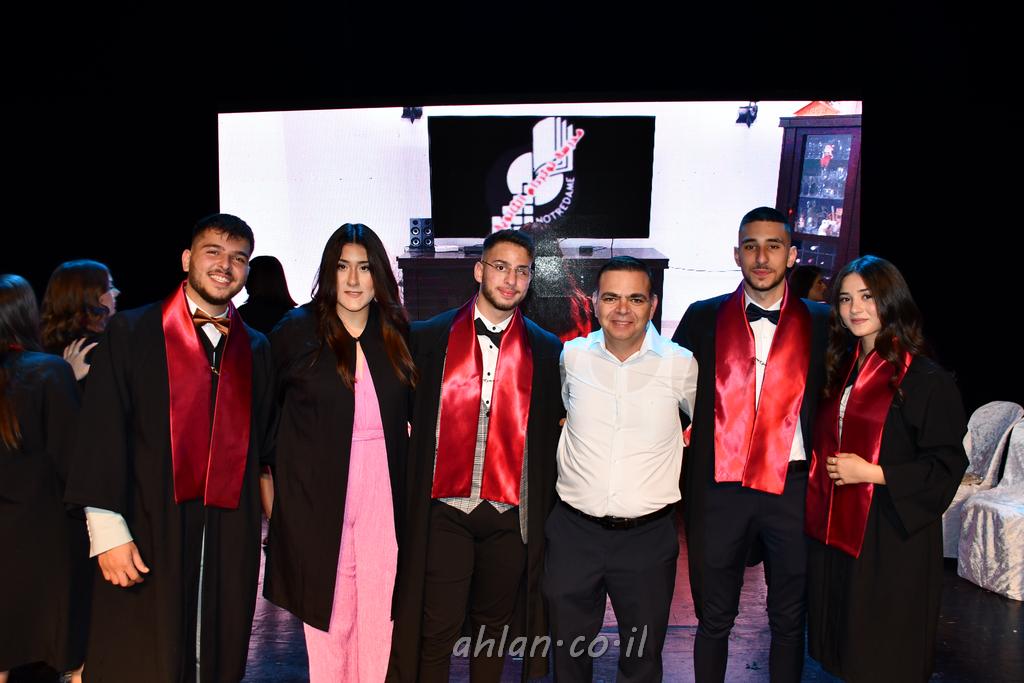 اهلا-تصوير ليلى زيتون ونردين سعد منذ تأسيس المدرسة قبل ما يقارب ٢٠ عاما بهدف الوصول بخريجيها الى أعلى المستويات العلمية المحلية والعالمية في شتى المجالات الحياتية العلميه والادبية ولا ننس ان نذكر في هذا السياق نستذكر مؤسس المدرسة المربي الراحل الياس اسعد خميسه الذي وضع نصب اعينه في الافق البعيد ان تخرج هذه المؤسسة خيرة طلابنا وانخراطهم في سلك الحياة والعمل كما ذكرنا . مدرسة نوتردام الثانوية والقيمين عليها والتي يقف على رأسها جمعية اخذت على عاتقها مسؤولية الحفاظ على ان تكون مدرسة شامخه بنتائجها وتحصيلاتها العلمية والادبية والتربوية وطبعا كل هذا بمسؤولية ربانها وقائدها المربي القدير المدير الاستاذ اياد قسيس وطاقم الهيئة التدريسية مربين ومربيات موظفين وعاملين كل بمكانته . في حفل خاص ومميز هذا العام الدراسي الذي تكلل بالنجاح والتالق والفقرات التي شملت الاستقبال والتصفيق والفن الموسيقى والرقصات والعرض المحوسب وطبعا مع توزيع الشهادات وببركة قدس الاب الياس عبد القيم العام ومدير المدرسة الابتدائية في معليا وبكلمات تنبض محبة واحساس ودعم للخريجين . طبعا تكلل هذا الحفل بكلمة موجزة وكان لا بد ان يذكر بها الانجازات العلمية والتربوية والثقافية والمراحل التي وصل اليها طلاب المدرسة على جميع الاصعدة التعليمية وخلال هذه الكلمة اعرب بها المدير الاستاذ اياد قسيس عن فخره وفخر الاهالي بتحصيل الطلاب الشامل على المستوى المحلي والقطري وبهذا تكون مدرسة وحلم نوتردام يتحقق بهذه التحصيلات والنتائج المرضية للجميع وسط تصفيق حار من الاهل والحضور الكريم.