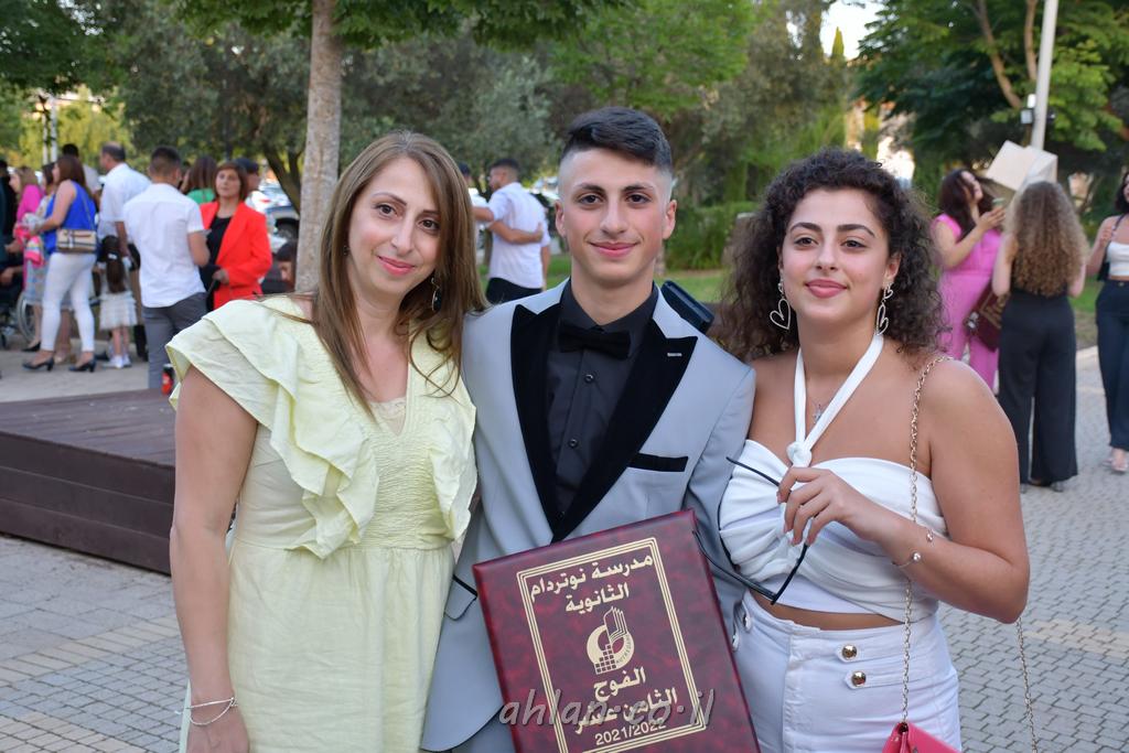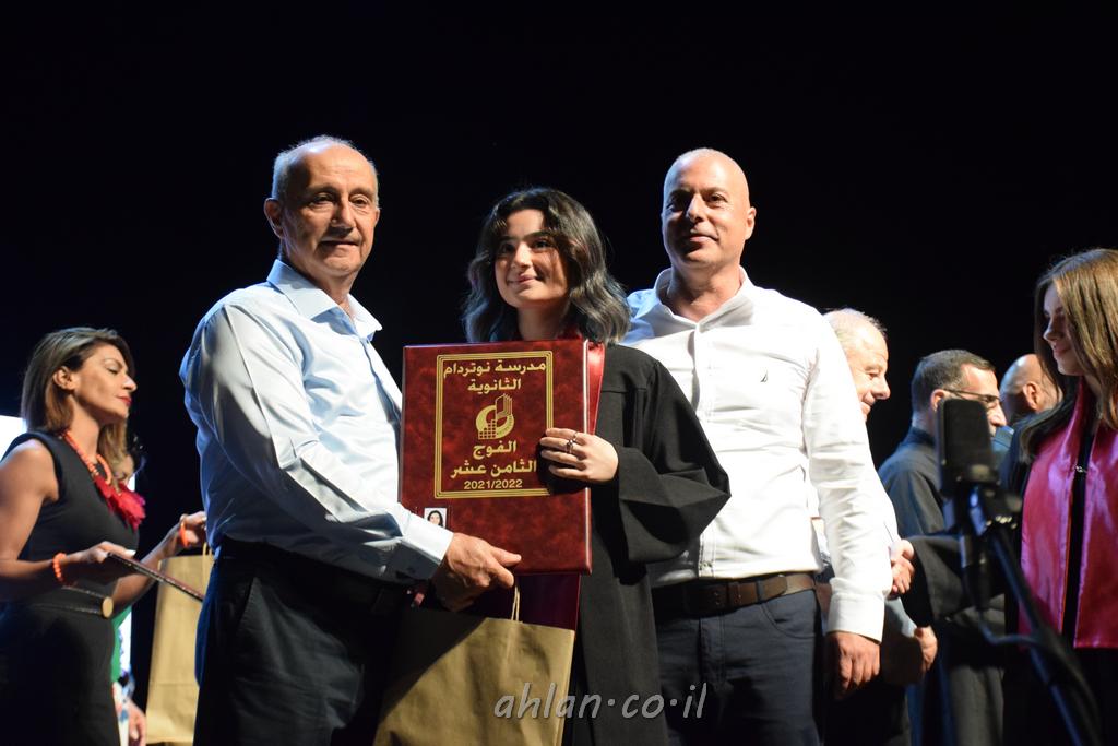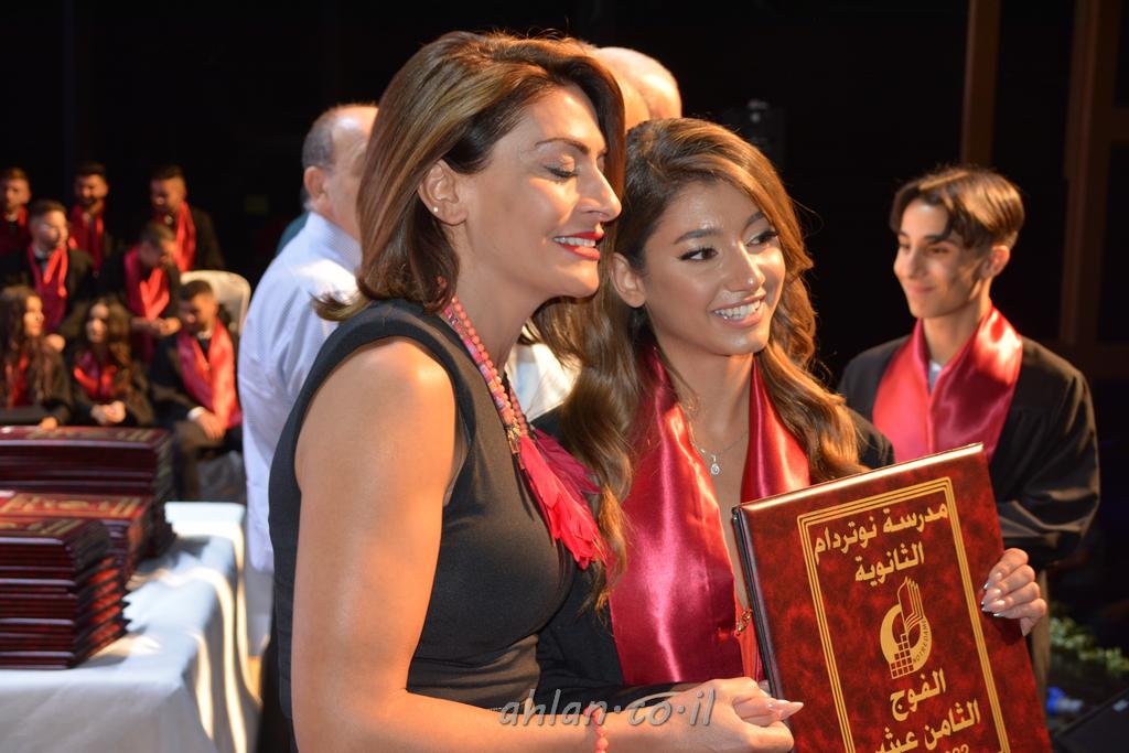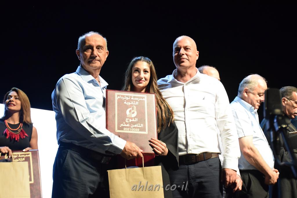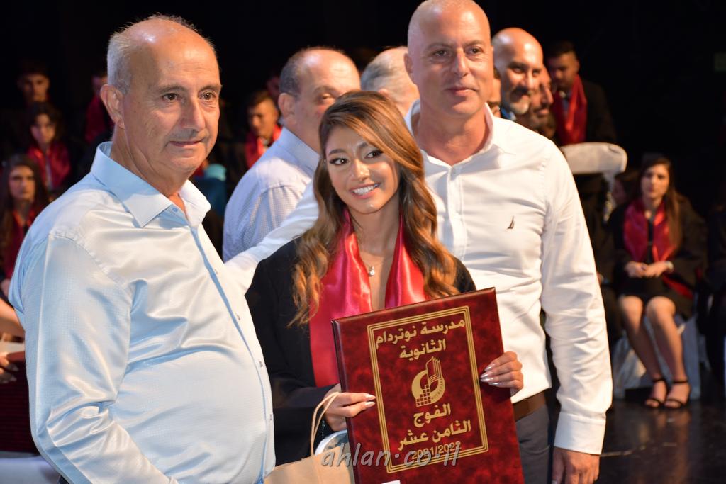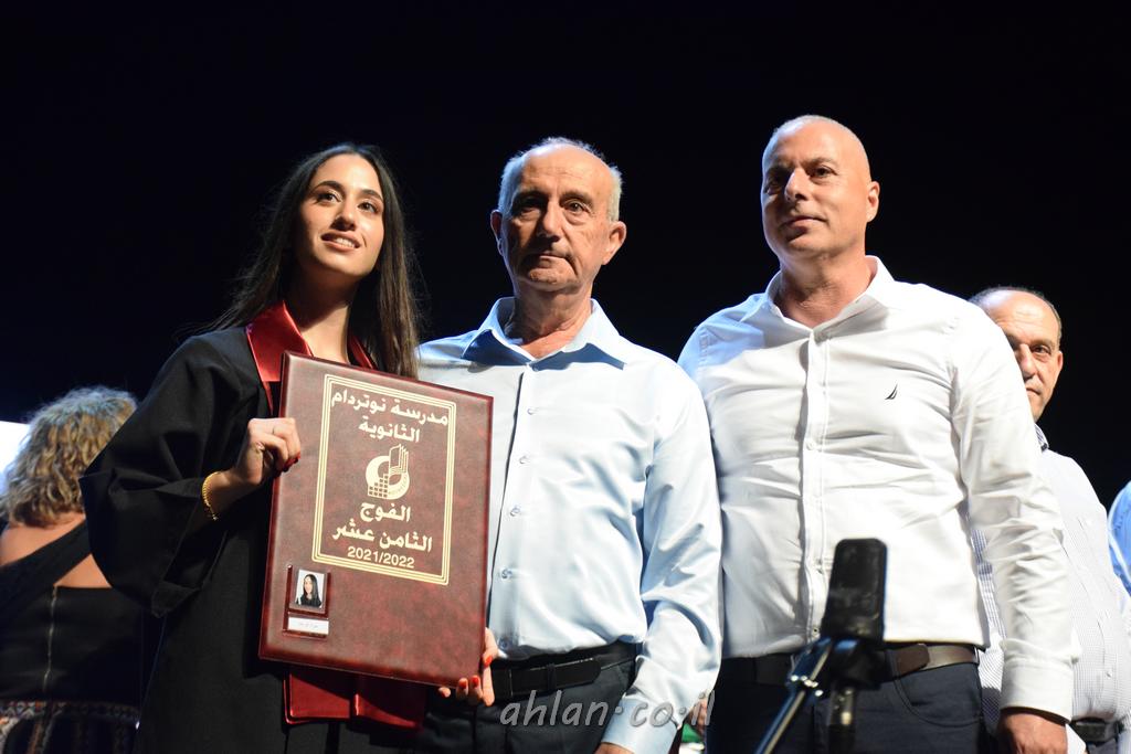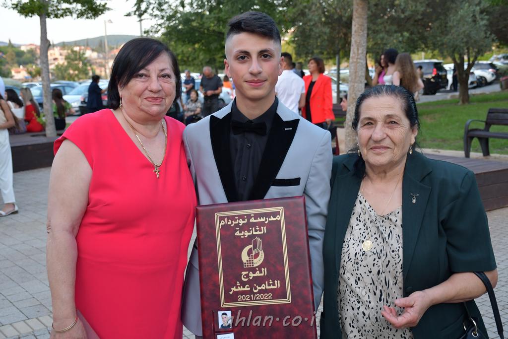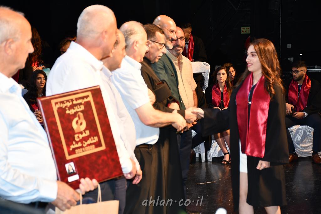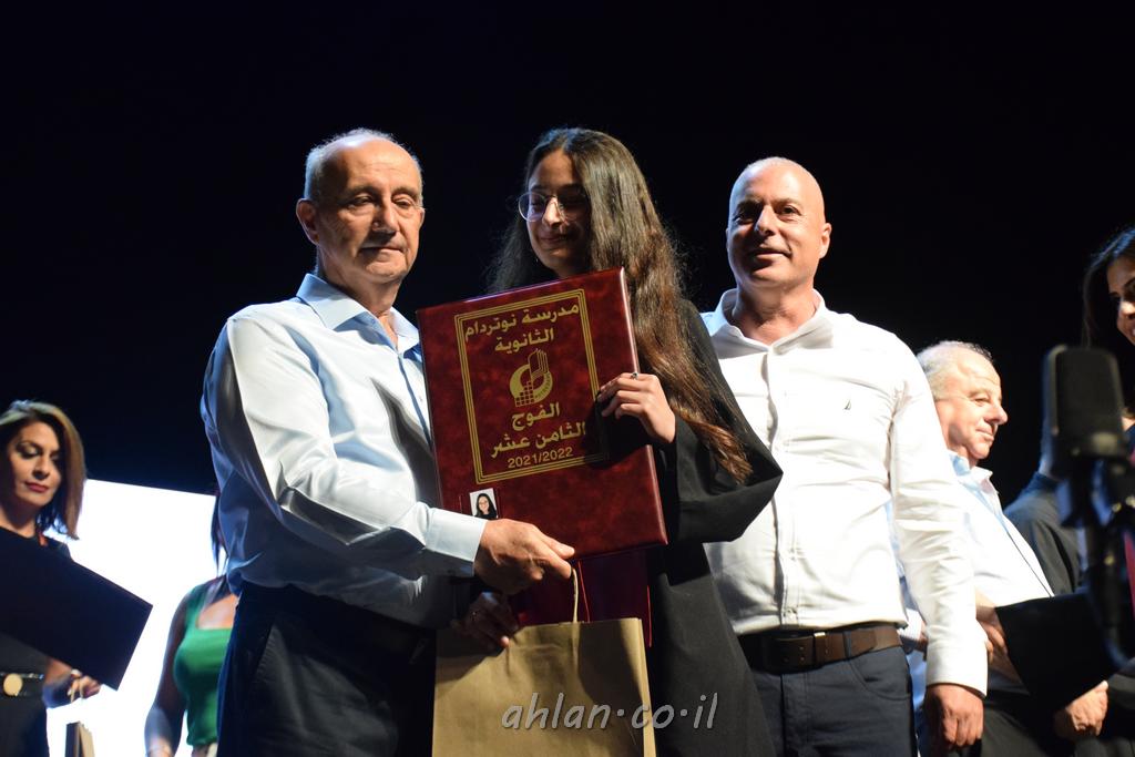 اهلا-تصوير ليلى زيتون ونردين سعد منذ تأسيس المدرسة قبل ما يقارب ٢٠ عاما بهدف الوصول بخريجيها الى أعلى المستويات العلمية المحلية والعالمية في شتى المجالات الحياتية العلميه والادبية ولا ننس ان نذكر في هذا السياق نستذكر مؤسس المدرسة المربي الراحل الياس اسعد خميسه الذي وضع نصب اعينه في الافق البعيد ان تخرج هذه المؤسسة خيرة طلابنا وانخراطهم في سلك الحياة والعمل كما ذكرنا . مدرسة نوتردام الثانوية والقيمين عليها والتي يقف على رأسها جمعية اخذت على عاتقها مسؤولية الحفاظ على ان تكون مدرسة شامخه بنتائجها وتحصيلاتها العلمية والادبية والتربوية وطبعا كل هذا بمسؤولية ربانها وقائدها المربي القدير المدير الاستاذ اياد قسيس وطاقم الهيئة التدريسية مربين ومربيات موظفين وعاملين كل بمكانته . في حفل خاص ومميز هذا العام الدراسي الذي تكلل بالنجاح والتالق والفقرات التي شملت الاستقبال والتصفيق والفن الموسيقى والرقصات والعرض المحوسب وطبعا مع توزيع الشهادات وببركة قدس الاب الياس عبد القيم العام ومدير المدرسة الابتدائية في معليا وبكلمات تنبض محبة واحساس ودعم للخريجين . طبعا تكلل هذا الحفل بكلمة موجزة وكان لا بد ان يذكر بها الانجازات العلمية والتربوية والثقافية والمراحل التي وصل اليها طلاب المدرسة على جميع الاصعدة التعليمية وخلال هذه الكلمة اعرب بها المدير الاستاذ اياد قسيس عن فخره وفخر الاهالي بتحصيل الطلاب الشامل على المستوى المحلي والقطري وبهذا تكون مدرسة وحلم نوتردام يتحقق بهذه التحصيلات والنتائج المرضية للجميع وسط تصفيق حار من الاهل والحضور الكريم.