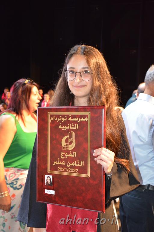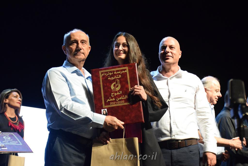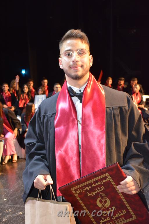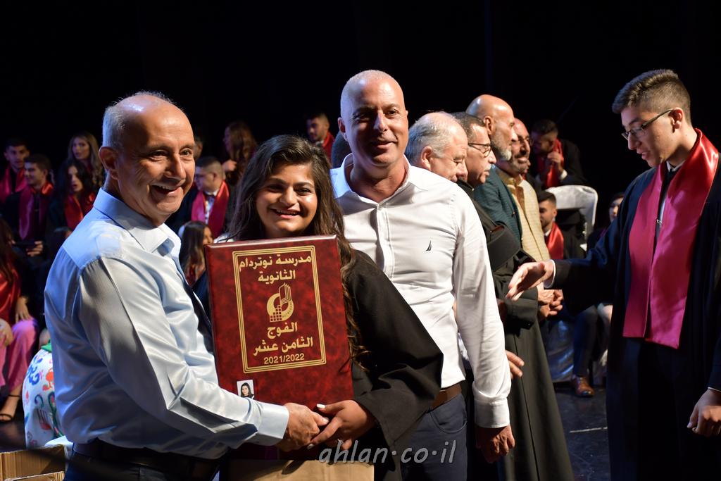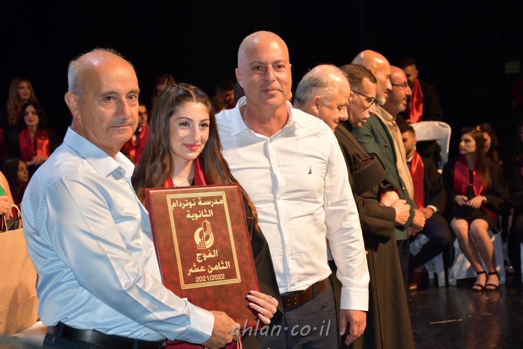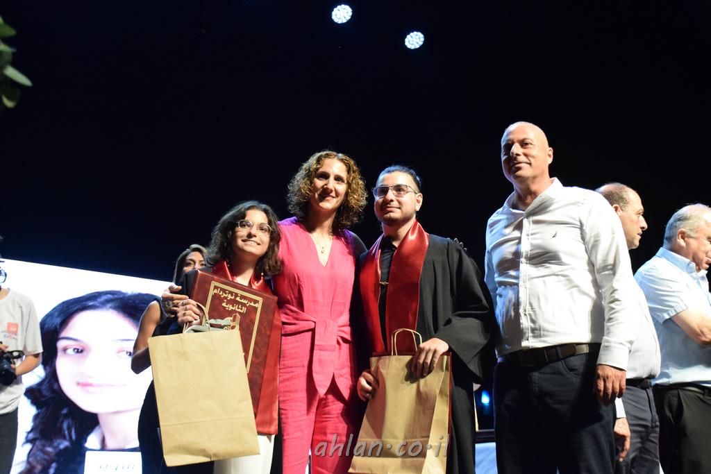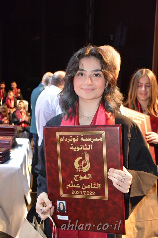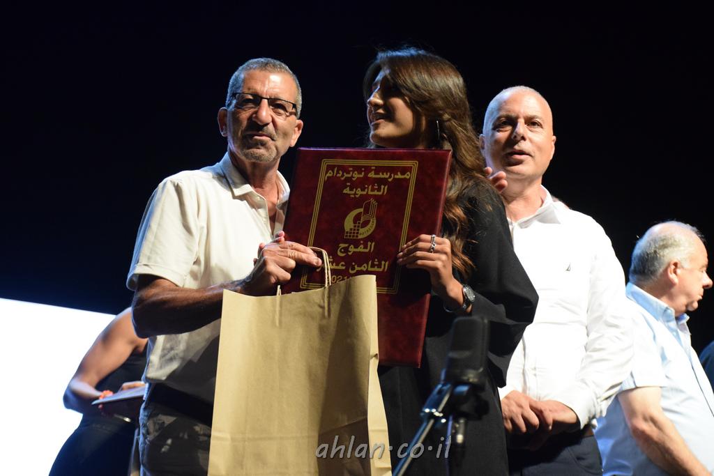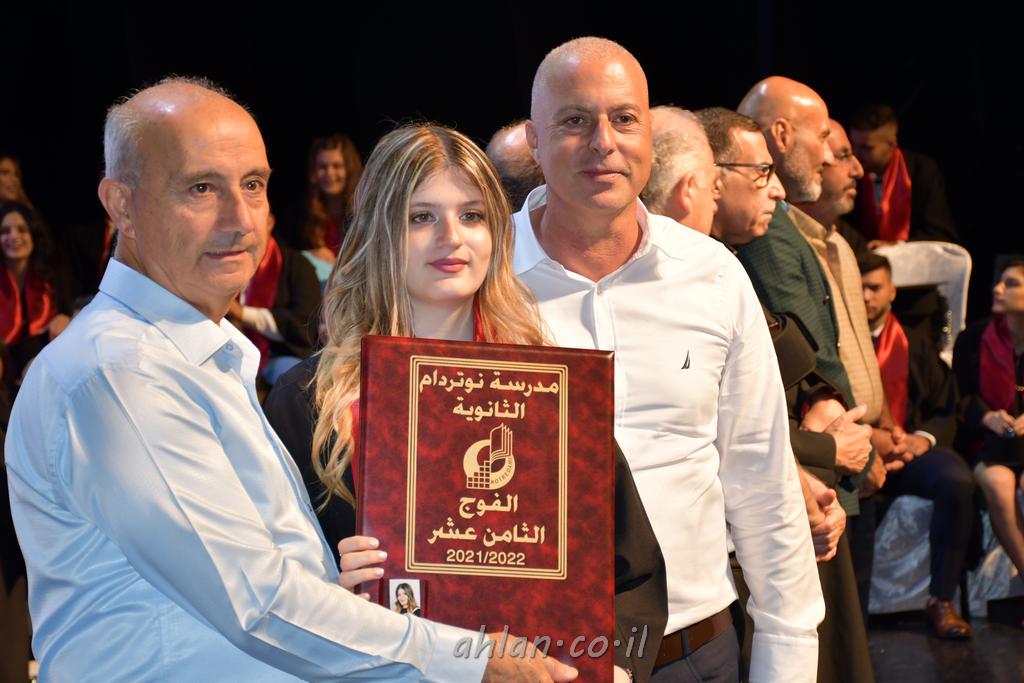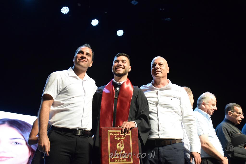 اهلا-تصوير ليلى زيتون ونردين سعد منذ تأسيس المدرسة قبل ما يقارب ٢٠ عاما بهدف الوصول بخريجيها الى أعلى المستويات العلمية المحلية والعالمية في شتى المجالات الحياتية العلميه والادبية ولا ننس ان نذكر في هذا السياق نستذكر مؤسس المدرسة المربي الراحل الياس اسعد خميسه الذي وضع نصب اعينه في الافق البعيد ان تخرج هذه المؤسسة خيرة طلابنا وانخراطهم في سلك الحياة والعمل كما ذكرنا . مدرسة نوتردام الثانوية والقيمين عليها والتي يقف على رأسها جمعية اخذت على عاتقها مسؤولية الحفاظ على ان تكون مدرسة شامخه بنتائجها وتحصيلاتها العلمية والادبية والتربوية وطبعا كل هذا بمسؤولية ربانها وقائدها المربي القدير المدير الاستاذ اياد قسيس وطاقم الهيئة التدريسية مربين ومربيات موظفين وعاملين كل بمكانته . في حفل خاص ومميز هذا العام الدراسي الذي تكلل بالنجاح والتالق والفقرات التي شملت الاستقبال والتصفيق والفن الموسيقى والرقصات والعرض المحوسب وطبعا مع توزيع الشهادات وببركة قدس الاب الياس عبد القيم العام ومدير المدرسة الابتدائية في معليا وبكلمات تنبض محبة واحساس ودعم للخريجين . طبعا تكلل هذا الحفل بكلمة موجزة وكان لا بد ان يذكر بها الانجازات العلمية والتربوية والثقافية والمراحل التي وصل اليها طلاب المدرسة على جميع الاصعدة التعليمية وخلال هذه الكلمة اعرب بها المدير الاستاذ اياد قسيس عن فخره وفخر الاهالي بتحصيل الطلاب الشامل على المستوى المحلي والقطري وبهذا تكون مدرسة وحلم نوتردام يتحقق بهذه التحصيلات والنتائج المرضية للجميع وسط تصفيق حار من الاهل والحضور الكريم.