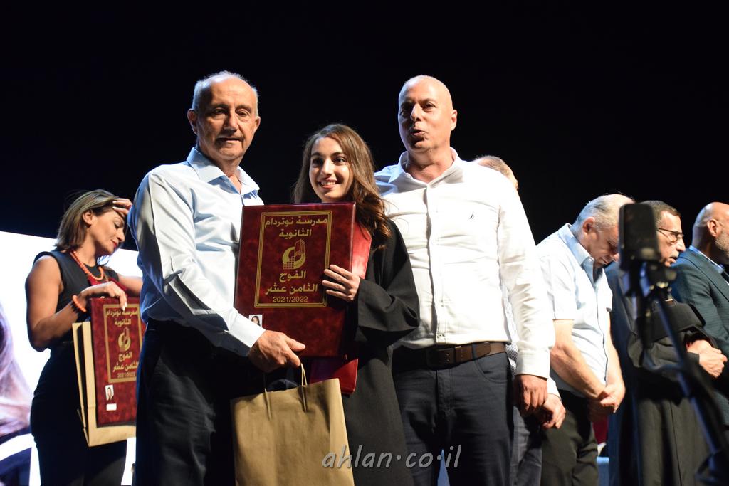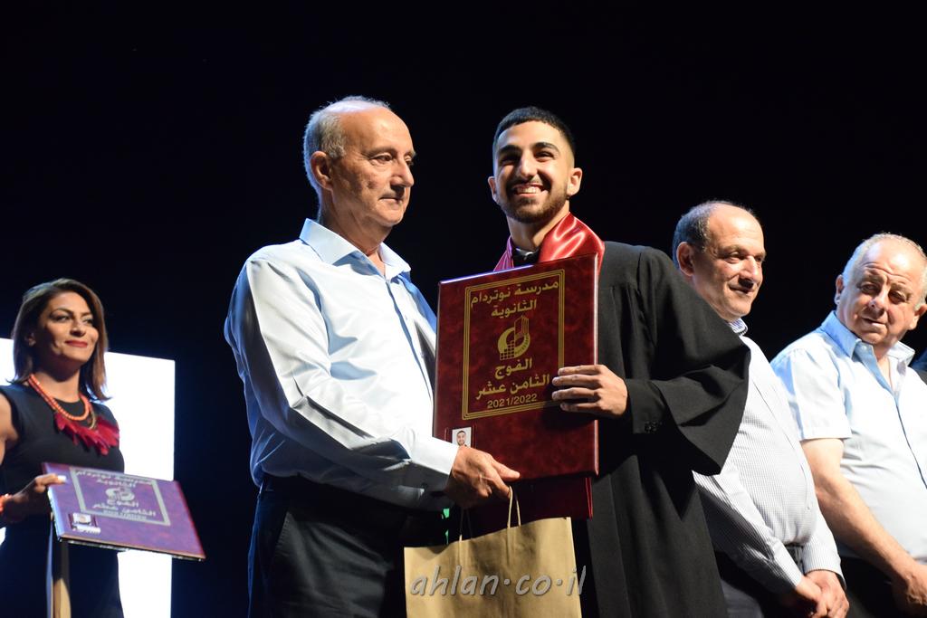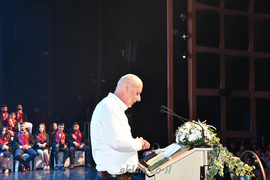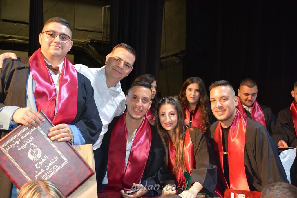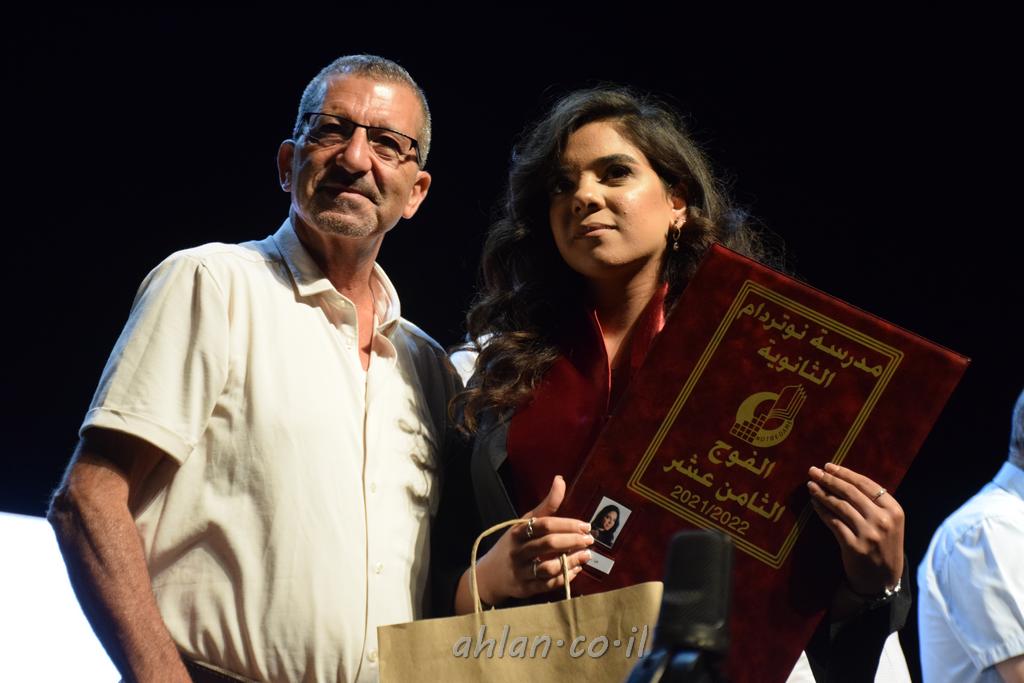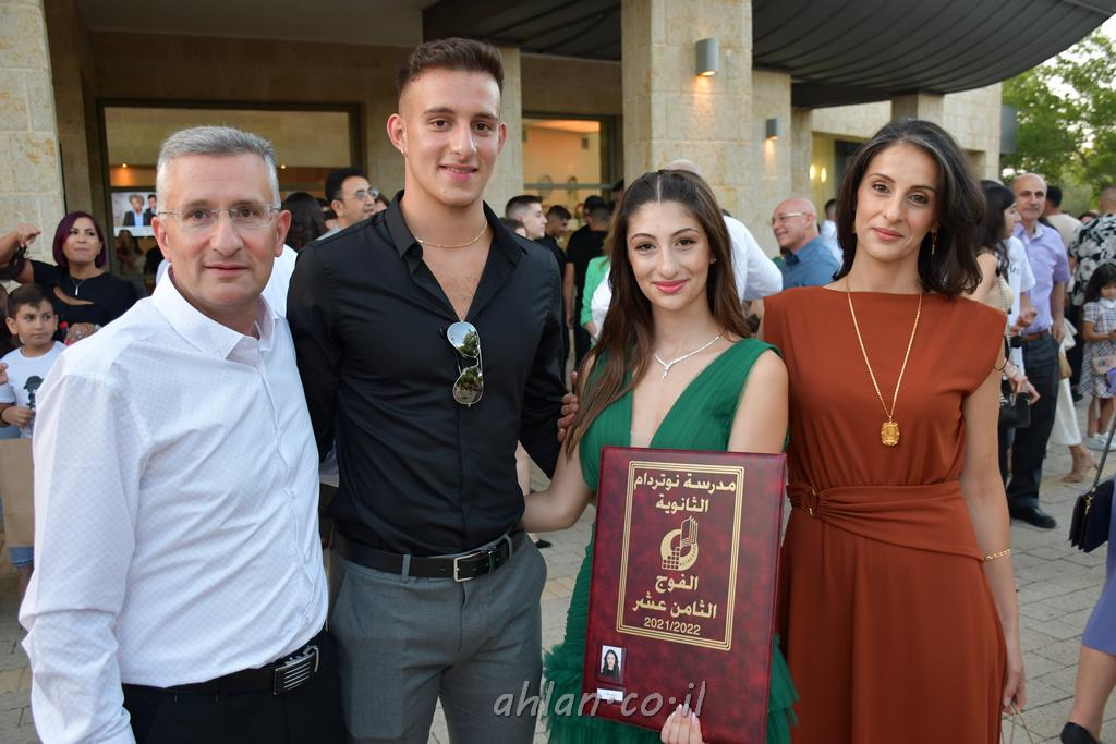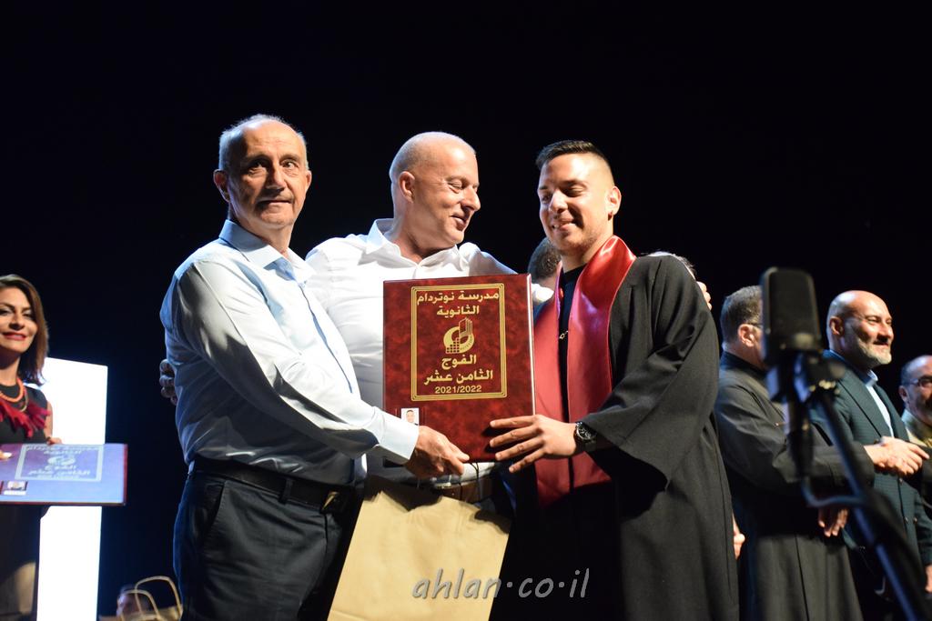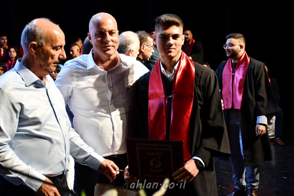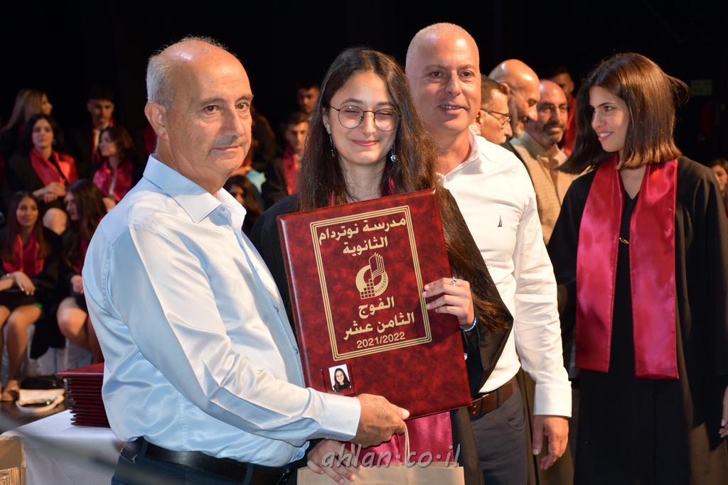 اهلا-تصوير ليلى زيتون ونردين سعد منذ تأسيس المدرسة قبل ما يقارب ٢٠ عاما بهدف الوصول بخريجيها الى أعلى المستويات العلمية المحلية والعالمية في شتى المجالات الحياتية العلميه والادبية ولا ننس ان نذكر في هذا السياق نستذكر مؤسس المدرسة المربي الراحل الياس اسعد خميسه الذي وضع نصب اعينه في الافق البعيد ان تخرج هذه المؤسسة خيرة طلابنا وانخراطهم في سلك الحياة والعمل كما ذكرنا . مدرسة نوتردام الثانوية والقيمين عليها والتي يقف على رأسها جمعية اخذت على عاتقها مسؤولية الحفاظ على ان تكون مدرسة شامخه بنتائجها وتحصيلاتها العلمية والادبية والتربوية وطبعا كل هذا بمسؤولية ربانها وقائدها المربي القدير المدير الاستاذ اياد قسيس وطاقم الهيئة التدريسية مربين ومربيات موظفين وعاملين كل بمكانته . في حفل خاص ومميز هذا العام الدراسي الذي تكلل بالنجاح والتالق والفقرات التي شملت الاستقبال والتصفيق والفن الموسيقى والرقصات والعرض المحوسب وطبعا مع توزيع الشهادات وببركة قدس الاب الياس عبد القيم العام ومدير المدرسة الابتدائية في معليا وبكلمات تنبض محبة واحساس ودعم للخريجين . طبعا تكلل هذا الحفل بكلمة موجزة وكان لا بد ان يذكر بها الانجازات العلمية والتربوية والثقافية والمراحل التي وصل اليها طلاب المدرسة على جميع الاصعدة التعليمية وخلال هذه الكلمة اعرب بها المدير الاستاذ اياد قسيس عن فخره وفخر الاهالي بتحصيل الطلاب الشامل على المستوى المحلي والقطري وبهذا تكون مدرسة وحلم نوتردام يتحقق بهذه التحصيلات والنتائج المرضية للجميع وسط تصفيق حار من الاهل والحضور الكريم.
