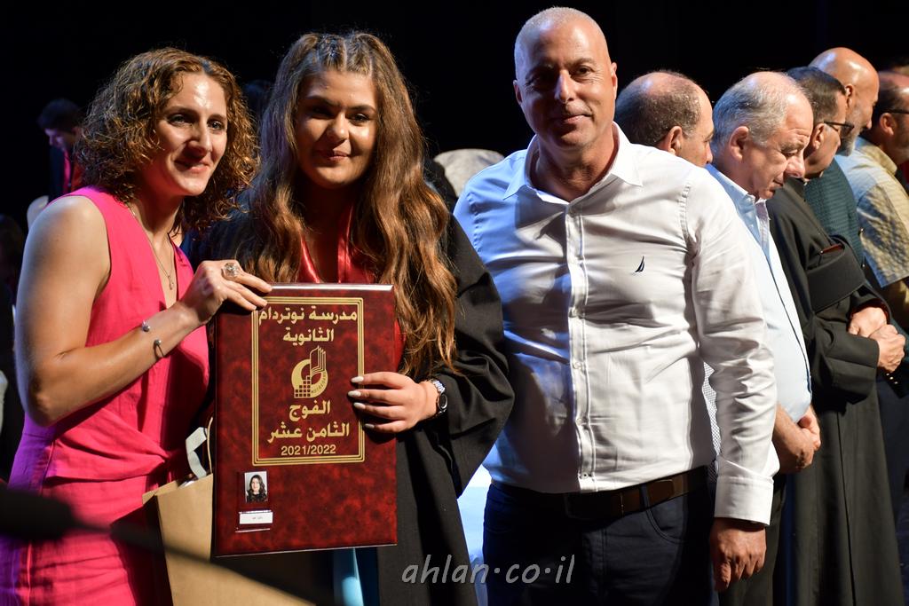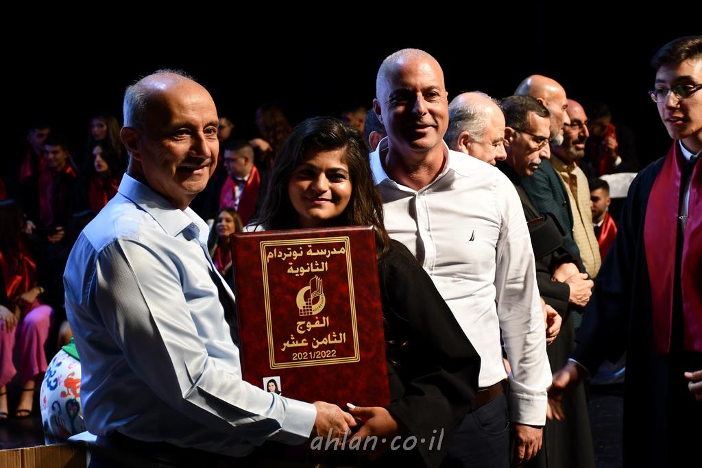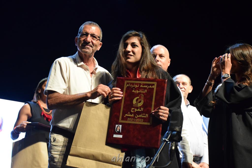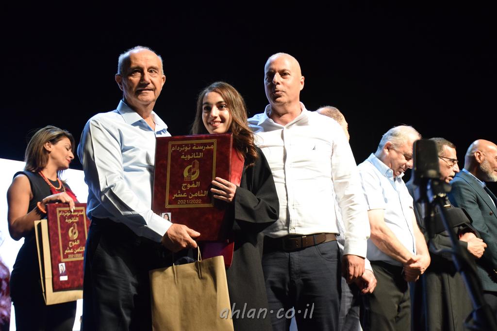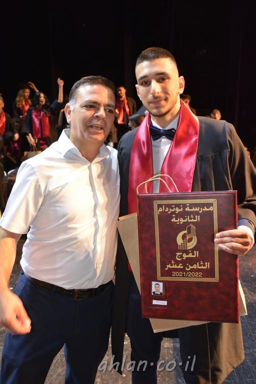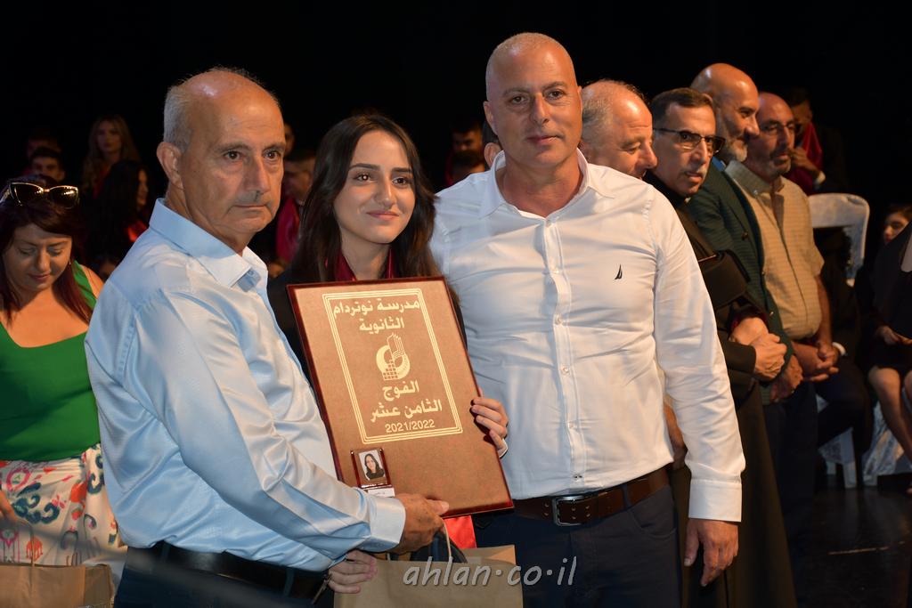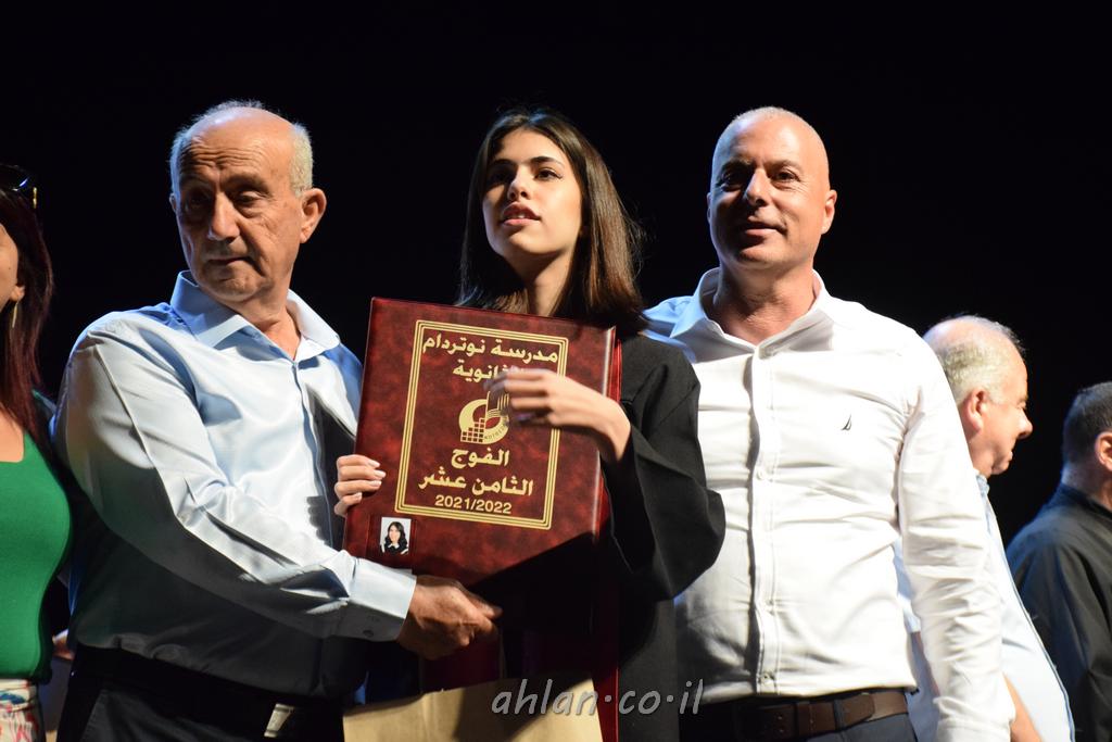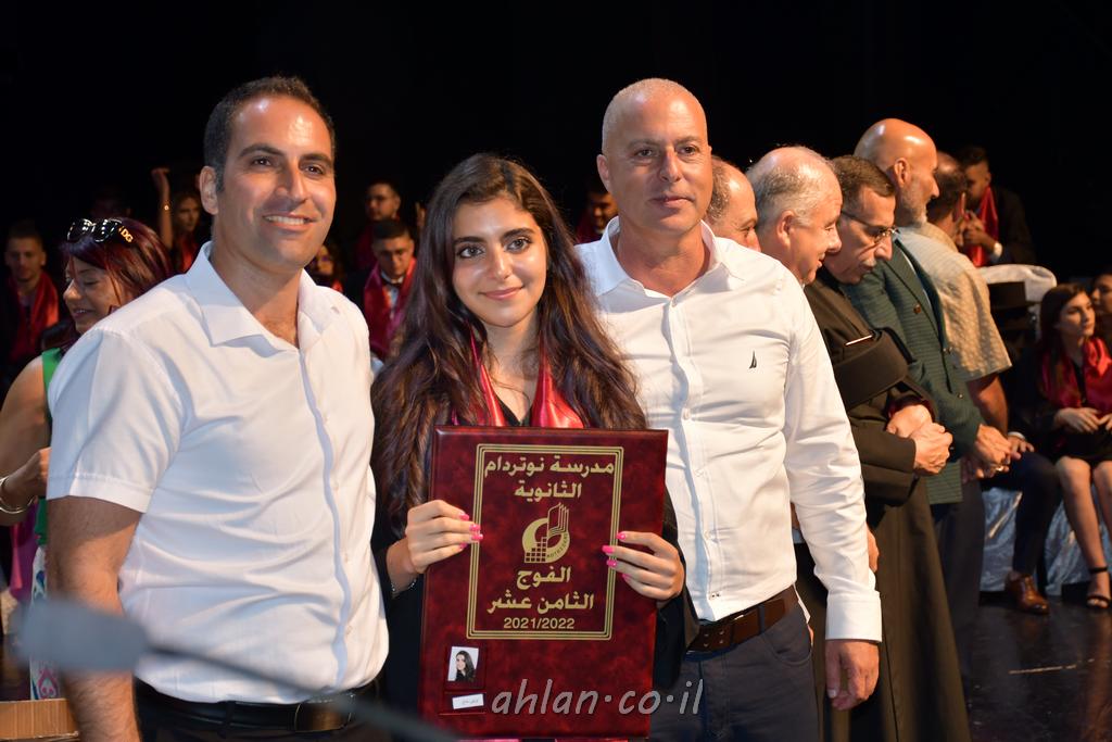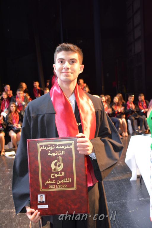 اهلا-تصوير ليلى زيتون ونردين سعد منذ تأسيس المدرسة قبل ما يقارب ٢٠ عاما بهدف الوصول بخريجيها الى أعلى المستويات العلمية المحلية والعالمية في شتى المجالات الحياتية العلميه والادبية ولا ننس ان نذكر في هذا السياق نستذكر مؤسس المدرسة المربي الراحل الياس اسعد خميسه الذي وضع نصب اعينه في الافق البعيد ان تخرج هذه المؤسسة خيرة طلابنا وانخراطهم في سلك الحياة والعمل كما ذكرنا . مدرسة نوتردام الثانوية والقيمين عليها والتي يقف على رأسها جمعية اخذت على عاتقها مسؤولية الحفاظ على ان تكون مدرسة شامخه بنتائجها وتحصيلاتها العلمية والادبية والتربوية وطبعا كل هذا بمسؤولية ربانها وقائدها المربي القدير المدير الاستاذ اياد قسيس وطاقم الهيئة التدريسية مربين ومربيات موظفين وعاملين كل بمكانته . في حفل خاص ومميز هذا العام الدراسي الذي تكلل بالنجاح والتالق والفقرات التي شملت الاستقبال والتصفيق والفن الموسيقى والرقصات والعرض المحوسب وطبعا مع توزيع الشهادات وببركة قدس الاب الياس عبد القيم العام ومدير المدرسة الابتدائية في معليا وبكلمات تنبض محبة واحساس ودعم للخريجين . طبعا تكلل هذا الحفل بكلمة موجزة وكان لا بد ان يذكر بها الانجازات العلمية والتربوية والثقافية والمراحل التي وصل اليها طلاب المدرسة على جميع الاصعدة التعليمية وخلال هذه الكلمة اعرب بها المدير الاستاذ اياد قسيس عن فخره وفخر الاهالي بتحصيل الطلاب الشامل على المستوى المحلي والقطري وبهذا تكون مدرسة وحلم نوتردام يتحقق بهذه التحصيلات والنتائج المرضية للجميع وسط تصفيق حار من الاهل والحضور الكريم.