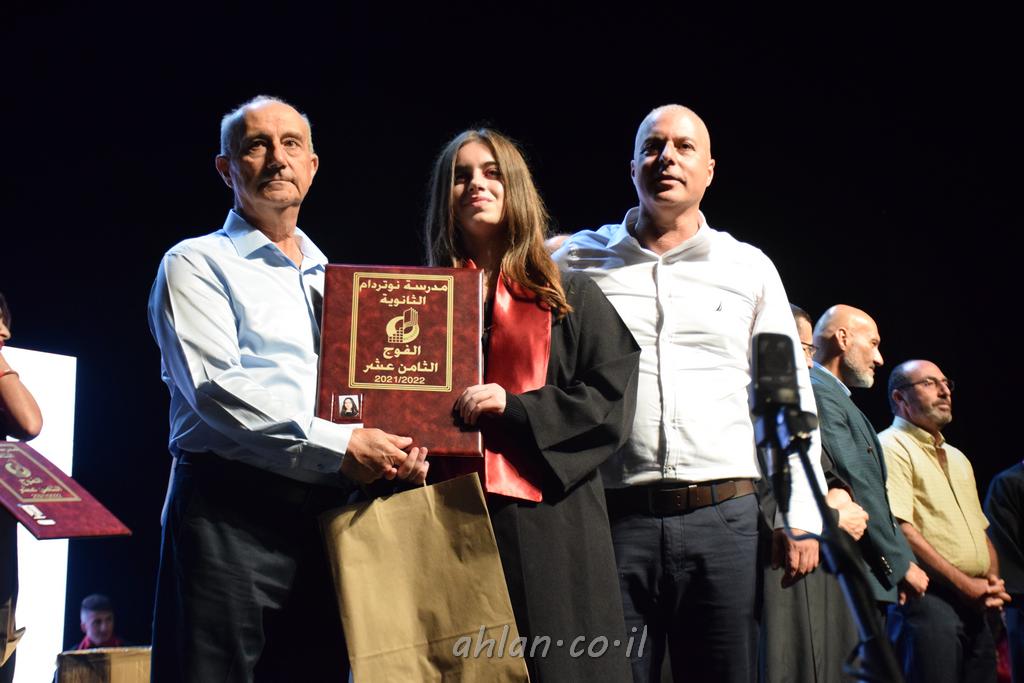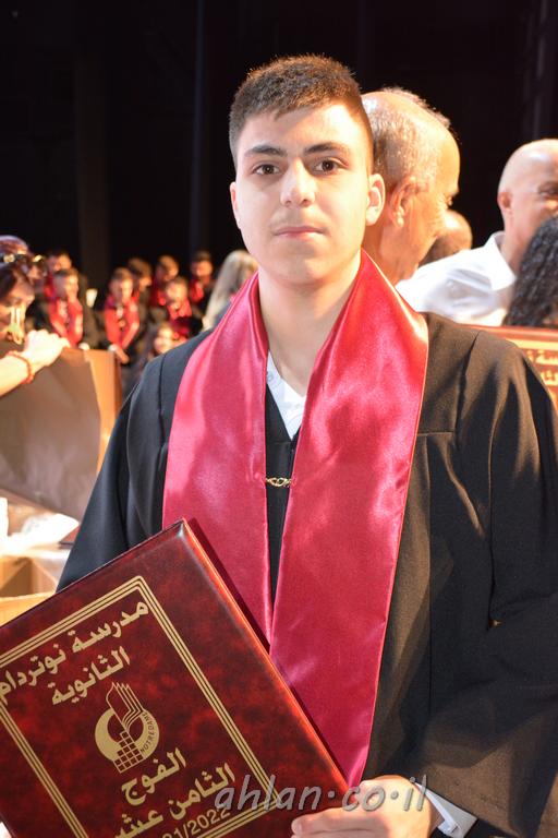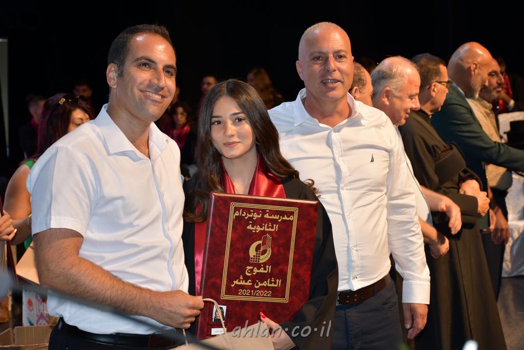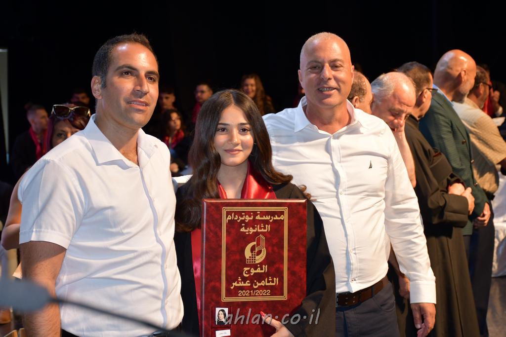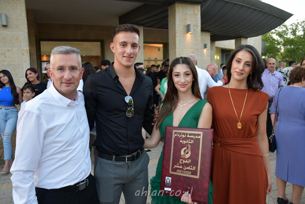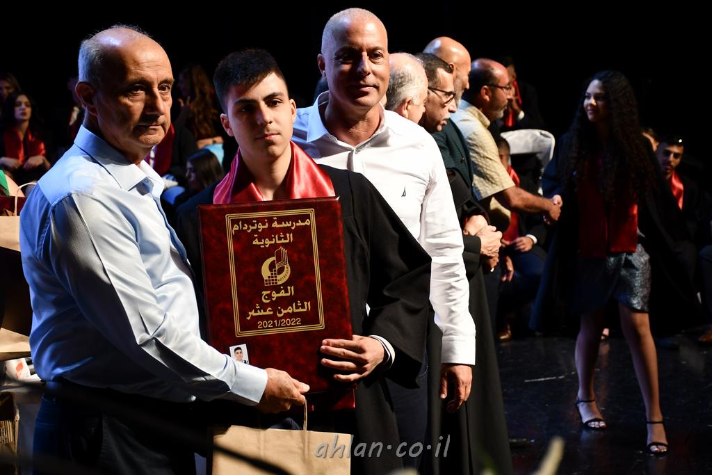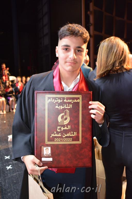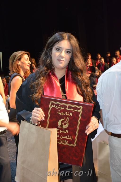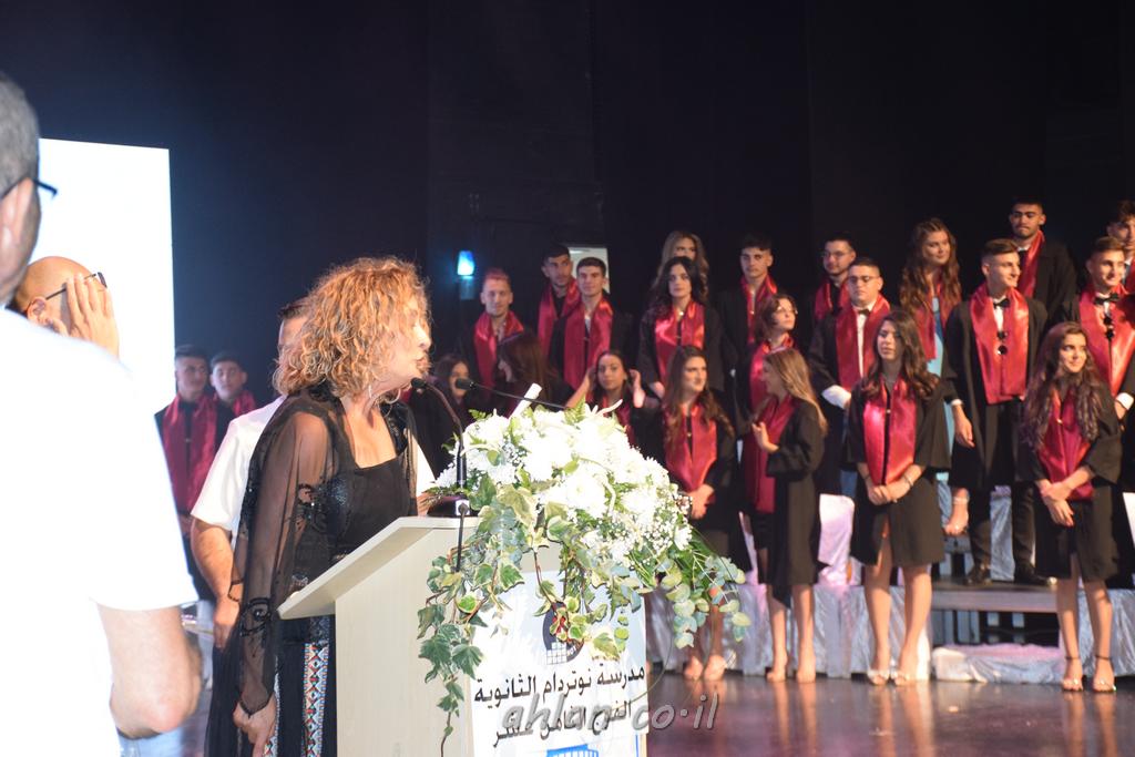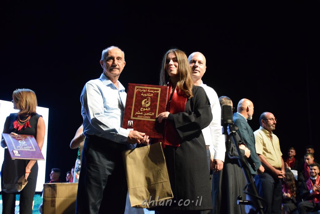 اهلا-تصوير ليلى زيتون ونردين سعد منذ تأسيس المدرسة قبل ما يقارب ٢٠ عاما بهدف الوصول بخريجيها الى أعلى المستويات العلمية المحلية والعالمية في شتى المجالات الحياتية العلميه والادبية ولا ننس ان نذكر في هذا السياق نستذكر مؤسس المدرسة المربي الراحل الياس اسعد خميسه الذي وضع نصب اعينه في الافق البعيد ان تخرج هذه المؤسسة خيرة طلابنا وانخراطهم في سلك الحياة والعمل كما ذكرنا . مدرسة نوتردام الثانوية والقيمين عليها والتي يقف على رأسها جمعية اخذت على عاتقها مسؤولية الحفاظ على ان تكون مدرسة شامخه بنتائجها وتحصيلاتها العلمية والادبية والتربوية وطبعا كل هذا بمسؤولية ربانها وقائدها المربي القدير المدير الاستاذ اياد قسيس وطاقم الهيئة التدريسية مربين ومربيات موظفين وعاملين كل بمكانته . في حفل خاص ومميز هذا العام الدراسي الذي تكلل بالنجاح والتالق والفقرات التي شملت الاستقبال والتصفيق والفن الموسيقى والرقصات والعرض المحوسب وطبعا مع توزيع الشهادات وببركة قدس الاب الياس عبد القيم العام ومدير المدرسة الابتدائية في معليا وبكلمات تنبض محبة واحساس ودعم للخريجين . طبعا تكلل هذا الحفل بكلمة موجزة وكان لا بد ان يذكر بها الانجازات العلمية والتربوية والثقافية والمراحل التي وصل اليها طلاب المدرسة على جميع الاصعدة التعليمية وخلال هذه الكلمة اعرب بها المدير الاستاذ اياد قسيس عن فخره وفخر الاهالي بتحصيل الطلاب الشامل على المستوى المحلي والقطري وبهذا تكون مدرسة وحلم نوتردام يتحقق بهذه التحصيلات والنتائج المرضية للجميع وسط تصفيق حار من الاهل والحضور الكريم.