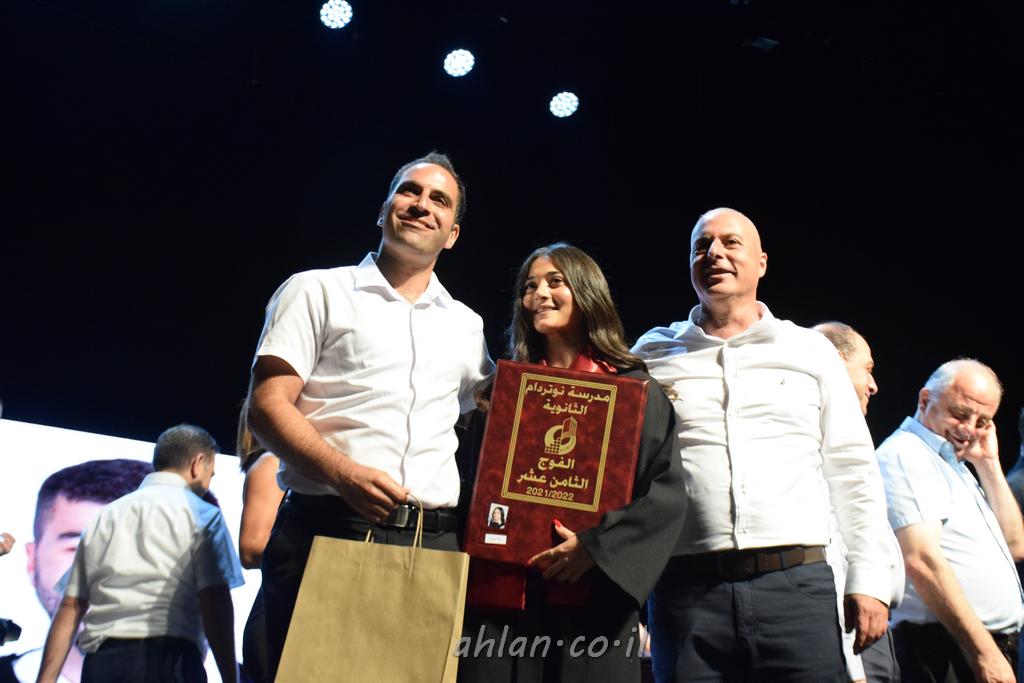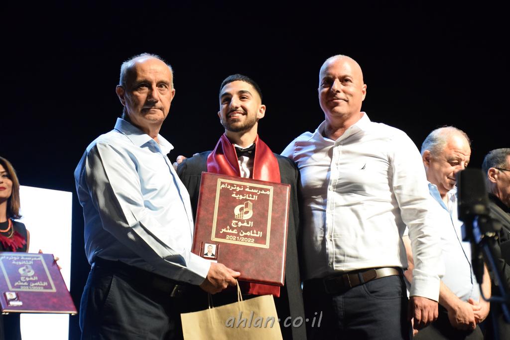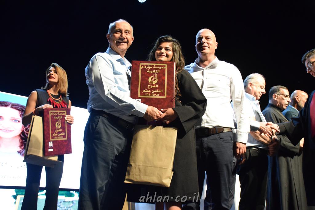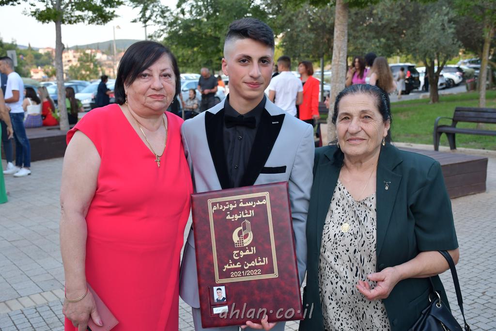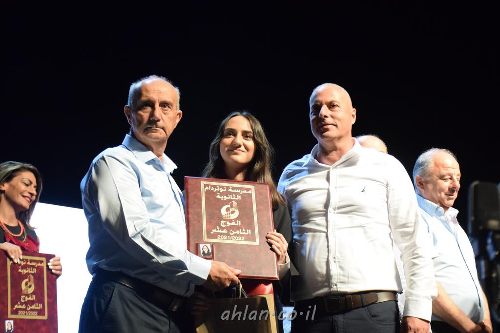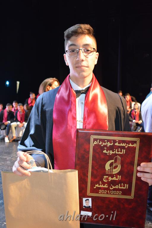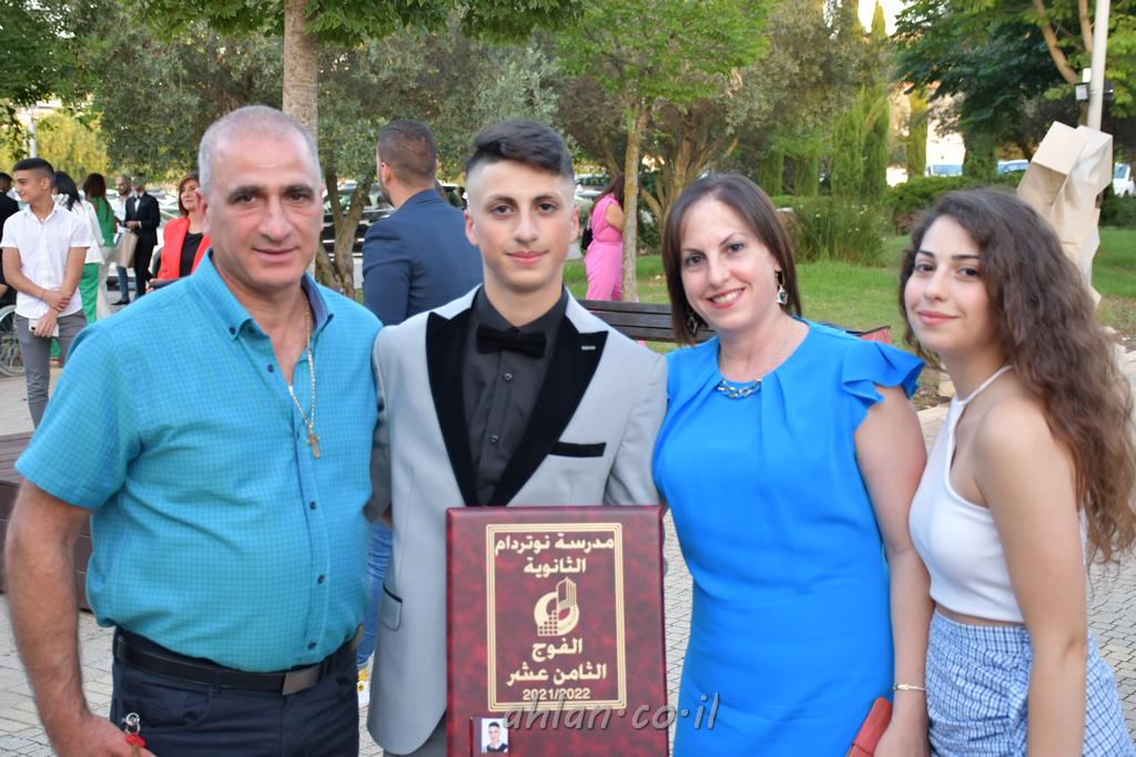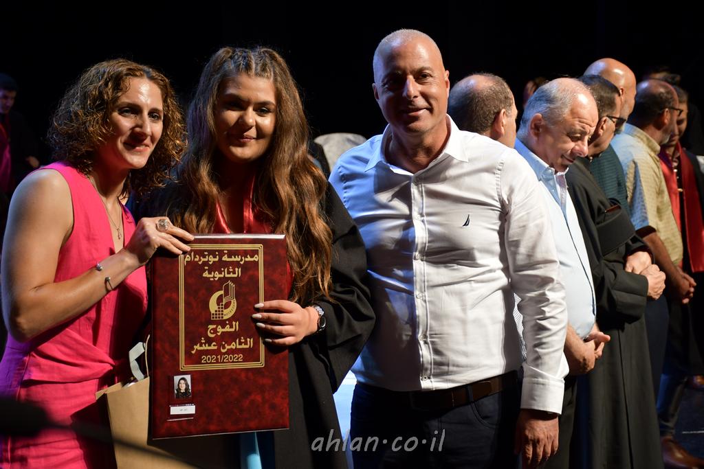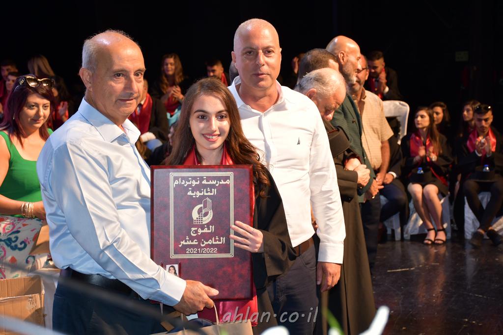 اهلا-تصوير ليلى زيتون ونردين سعد منذ تأسيس المدرسة قبل ما يقارب ٢٠ عاما بهدف الوصول بخريجيها الى أعلى المستويات العلمية المحلية والعالمية في شتى المجالات الحياتية العلميه والادبية ولا ننس ان نذكر في هذا السياق نستذكر مؤسس المدرسة المربي الراحل الياس اسعد خميسه الذي وضع نصب اعينه في الافق البعيد ان تخرج هذه المؤسسة خيرة طلابنا وانخراطهم في سلك الحياة والعمل كما ذكرنا . مدرسة نوتردام الثانوية والقيمين عليها والتي يقف على رأسها جمعية اخذت على عاتقها مسؤولية الحفاظ على ان تكون مدرسة شامخه بنتائجها وتحصيلاتها العلمية والادبية والتربوية وطبعا كل هذا بمسؤولية ربانها وقائدها المربي القدير المدير الاستاذ اياد قسيس وطاقم الهيئة التدريسية مربين ومربيات موظفين وعاملين كل بمكانته . في حفل خاص ومميز هذا العام الدراسي الذي تكلل بالنجاح والتالق والفقرات التي شملت الاستقبال والتصفيق والفن الموسيقى والرقصات والعرض المحوسب وطبعا مع توزيع الشهادات وببركة قدس الاب الياس عبد القيم العام ومدير المدرسة الابتدائية في معليا وبكلمات تنبض محبة واحساس ودعم للخريجين . طبعا تكلل هذا الحفل بكلمة موجزة وكان لا بد ان يذكر بها الانجازات العلمية والتربوية والثقافية والمراحل التي وصل اليها طلاب المدرسة على جميع الاصعدة التعليمية وخلال هذه الكلمة اعرب بها المدير الاستاذ اياد قسيس عن فخره وفخر الاهالي بتحصيل الطلاب الشامل على المستوى المحلي والقطري وبهذا تكون مدرسة وحلم نوتردام يتحقق بهذه التحصيلات والنتائج المرضية للجميع وسط تصفيق حار من الاهل والحضور الكريم.