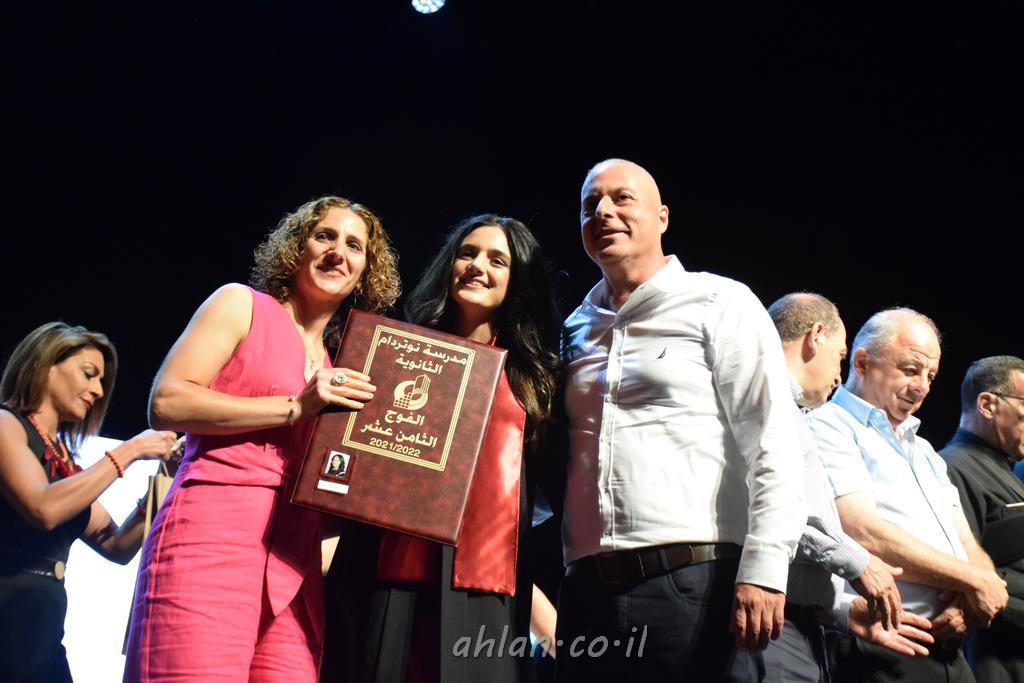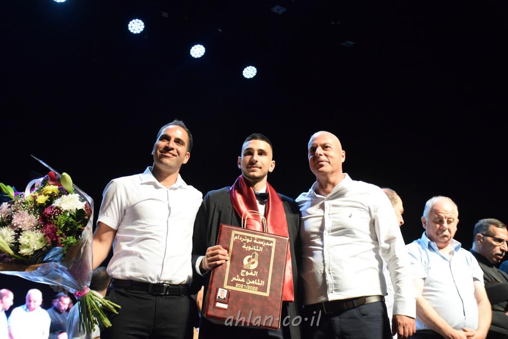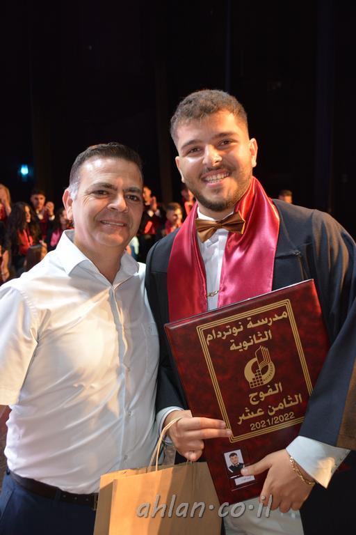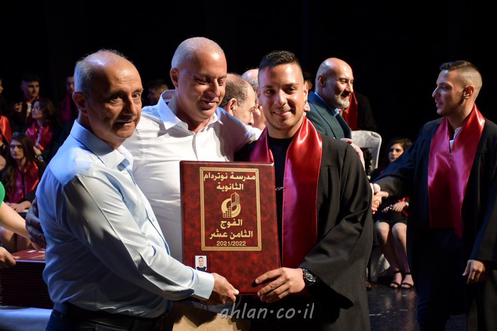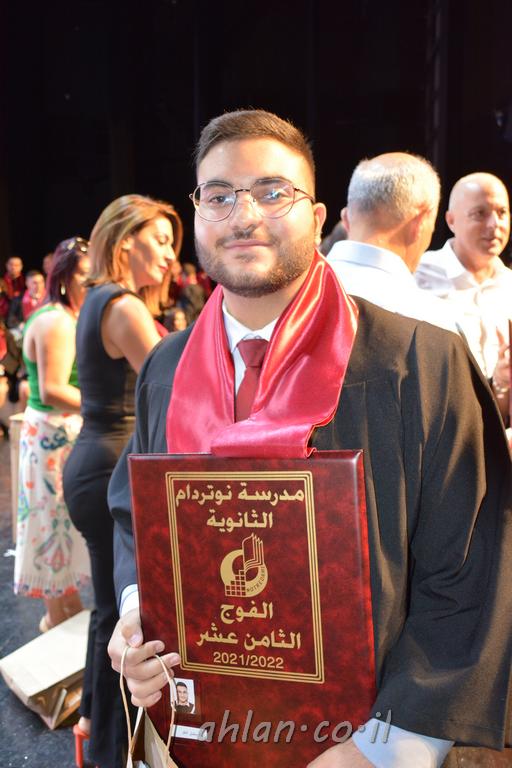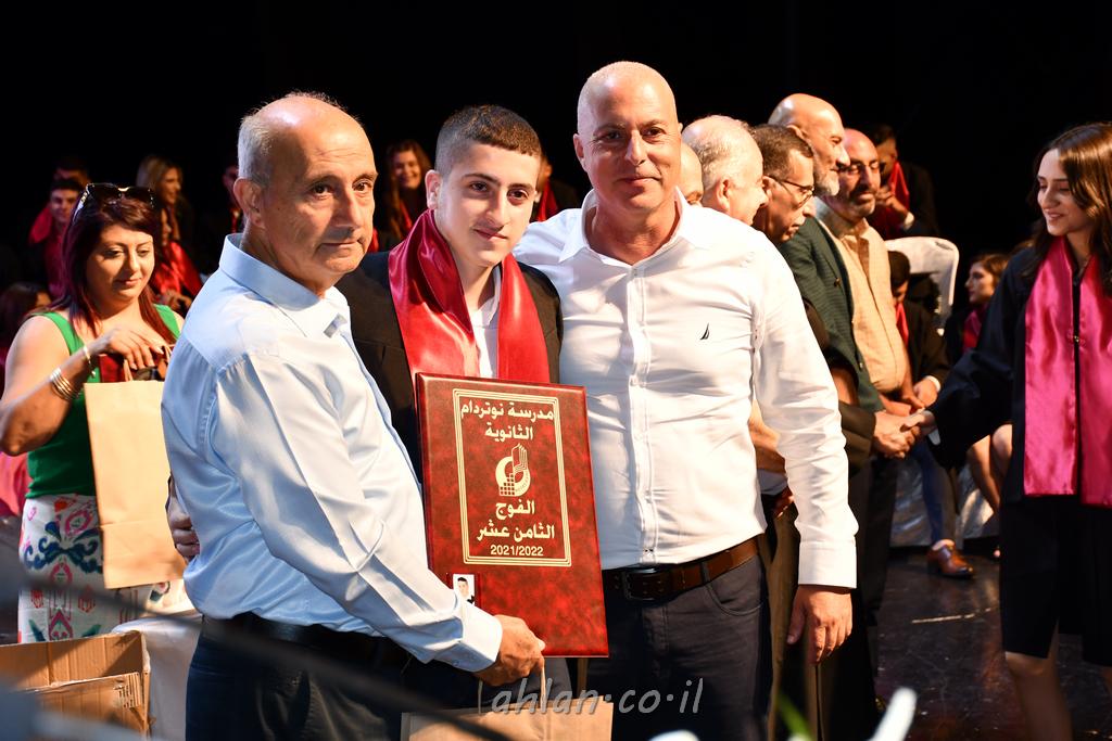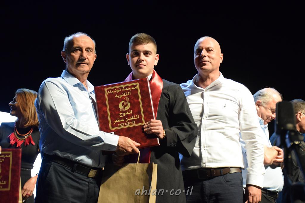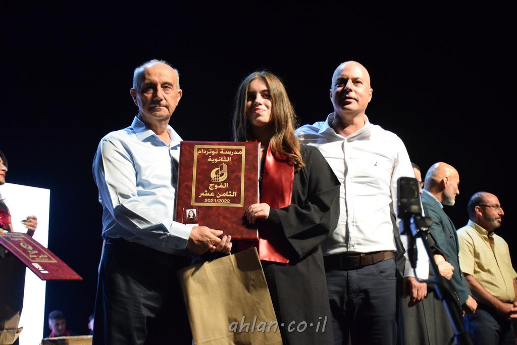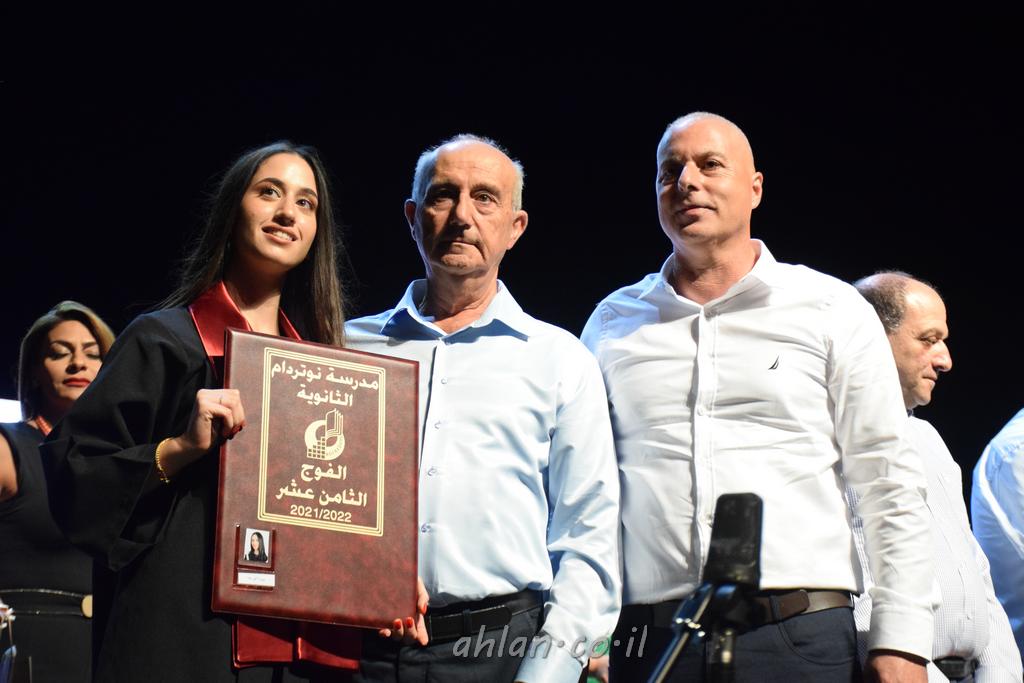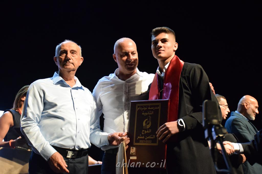 اهلا-تصوير ليلى زيتون ونردين سعد منذ تأسيس المدرسة قبل ما يقارب ٢٠ عاما بهدف الوصول بخريجيها الى أعلى المستويات العلمية المحلية والعالمية في شتى المجالات الحياتية العلميه والادبية ولا ننس ان نذكر في هذا السياق نستذكر مؤسس المدرسة المربي الراحل الياس اسعد خميسه الذي وضع نصب اعينه في الافق البعيد ان تخرج هذه المؤسسة خيرة طلابنا وانخراطهم في سلك الحياة والعمل كما ذكرنا . مدرسة نوتردام الثانوية والقيمين عليها والتي يقف على رأسها جمعية اخذت على عاتقها مسؤولية الحفاظ على ان تكون مدرسة شامخه بنتائجها وتحصيلاتها العلمية والادبية والتربوية وطبعا كل هذا بمسؤولية ربانها وقائدها المربي القدير المدير الاستاذ اياد قسيس وطاقم الهيئة التدريسية مربين ومربيات موظفين وعاملين كل بمكانته . في حفل خاص ومميز هذا العام الدراسي الذي تكلل بالنجاح والتالق والفقرات التي شملت الاستقبال والتصفيق والفن الموسيقى والرقصات والعرض المحوسب وطبعا مع توزيع الشهادات وببركة قدس الاب الياس عبد القيم العام ومدير المدرسة الابتدائية في معليا وبكلمات تنبض محبة واحساس ودعم للخريجين . طبعا تكلل هذا الحفل بكلمة موجزة وكان لا بد ان يذكر بها الانجازات العلمية والتربوية والثقافية والمراحل التي وصل اليها طلاب المدرسة على جميع الاصعدة التعليمية وخلال هذه الكلمة اعرب بها المدير الاستاذ اياد قسيس عن فخره وفخر الاهالي بتحصيل الطلاب الشامل على المستوى المحلي والقطري وبهذا تكون مدرسة وحلم نوتردام يتحقق بهذه التحصيلات والنتائج المرضية للجميع وسط تصفيق حار من الاهل والحضور الكريم.