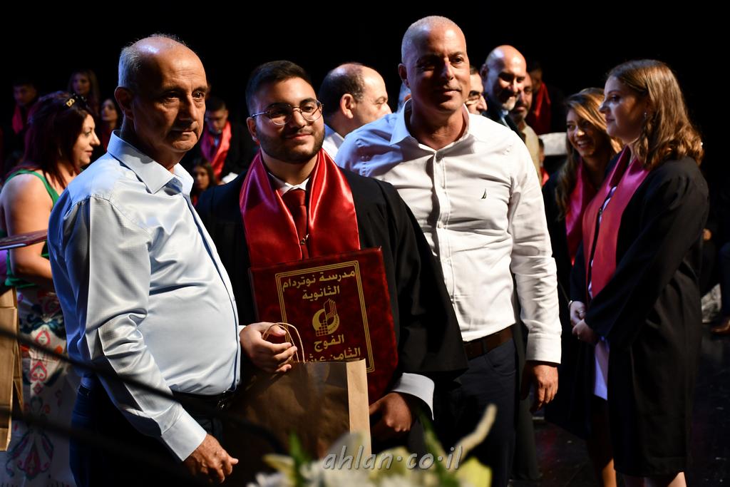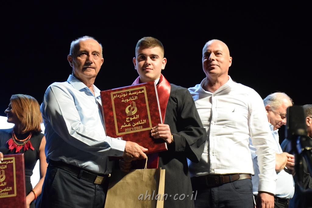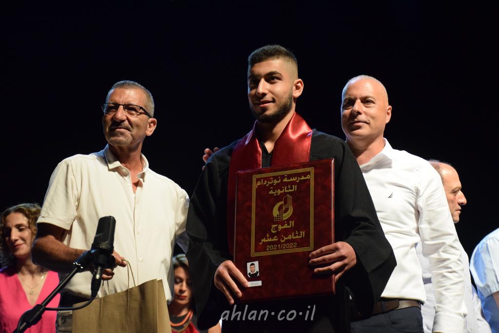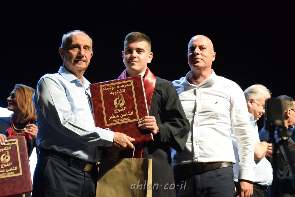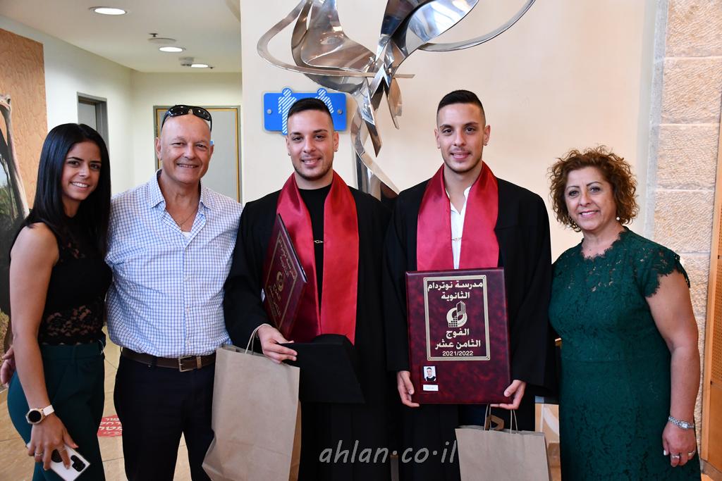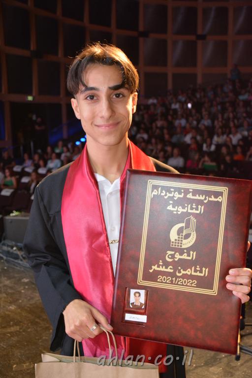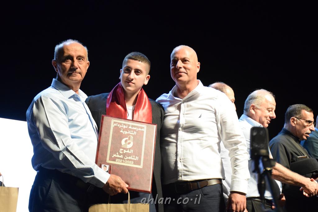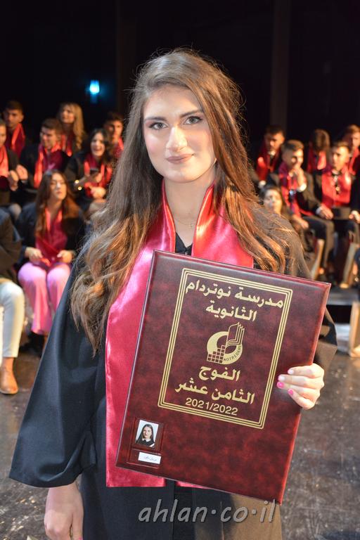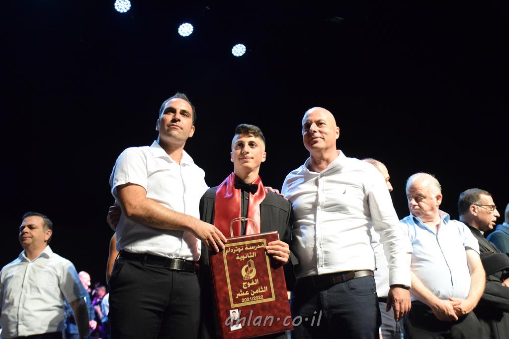 اهلا-تصوير ليلى زيتون ونردين سعد منذ تأسيس المدرسة قبل ما يقارب ٢٠ عاما بهدف الوصول بخريجيها الى أعلى المستويات العلمية المحلية والعالمية في شتى المجالات الحياتية العلميه والادبية ولا ننس ان نذكر في هذا السياق نستذكر مؤسس المدرسة المربي الراحل الياس اسعد خميسه الذي وضع نصب اعينه في الافق البعيد ان تخرج هذه المؤسسة خيرة طلابنا وانخراطهم في سلك الحياة والعمل كما ذكرنا . مدرسة نوتردام الثانوية والقيمين عليها والتي يقف على رأسها جمعية اخذت على عاتقها مسؤولية الحفاظ على ان تكون مدرسة شامخه بنتائجها وتحصيلاتها العلمية والادبية والتربوية وطبعا كل هذا بمسؤولية ربانها وقائدها المربي القدير المدير الاستاذ اياد قسيس وطاقم الهيئة التدريسية مربين ومربيات موظفين وعاملين كل بمكانته . في حفل خاص ومميز هذا العام الدراسي الذي تكلل بالنجاح والتالق والفقرات التي شملت الاستقبال والتصفيق والفن الموسيقى والرقصات والعرض المحوسب وطبعا مع توزيع الشهادات وببركة قدس الاب الياس عبد القيم العام ومدير المدرسة الابتدائية في معليا وبكلمات تنبض محبة واحساس ودعم للخريجين . طبعا تكلل هذا الحفل بكلمة موجزة وكان لا بد ان يذكر بها الانجازات العلمية والتربوية والثقافية والمراحل التي وصل اليها طلاب المدرسة على جميع الاصعدة التعليمية وخلال هذه الكلمة اعرب بها المدير الاستاذ اياد قسيس عن فخره وفخر الاهالي بتحصيل الطلاب الشامل على المستوى المحلي والقطري وبهذا تكون مدرسة وحلم نوتردام يتحقق بهذه التحصيلات والنتائج المرضية للجميع وسط تصفيق حار من الاهل والحضور الكريم.