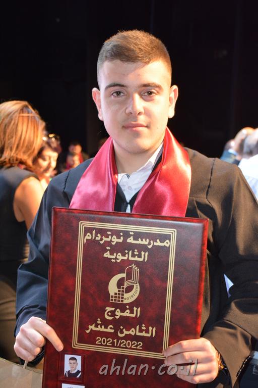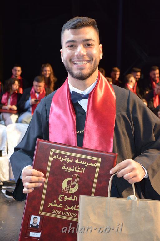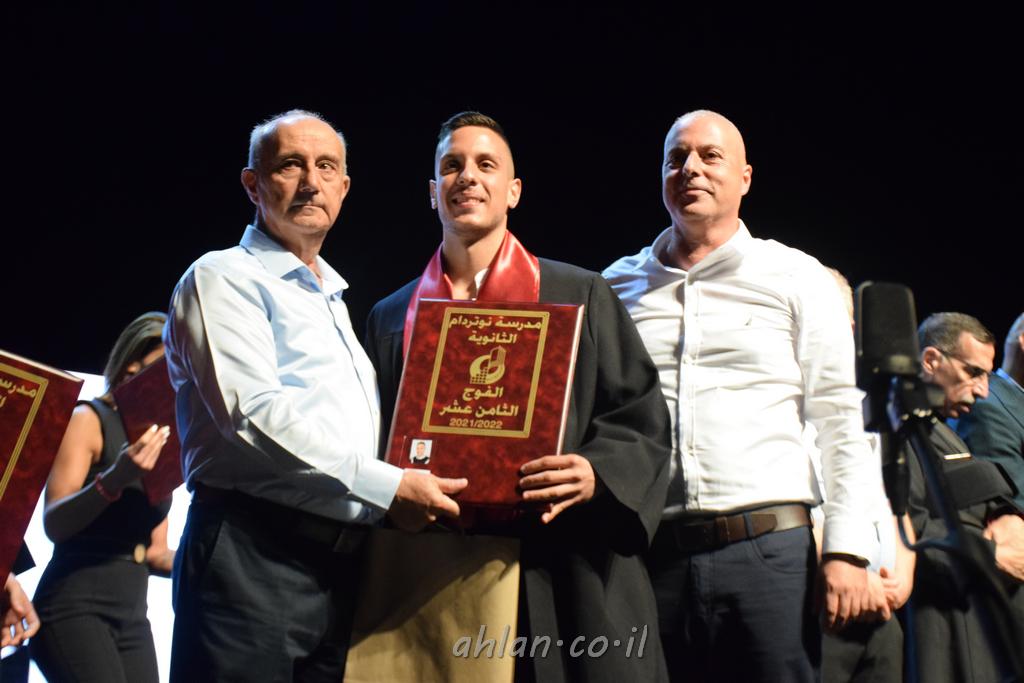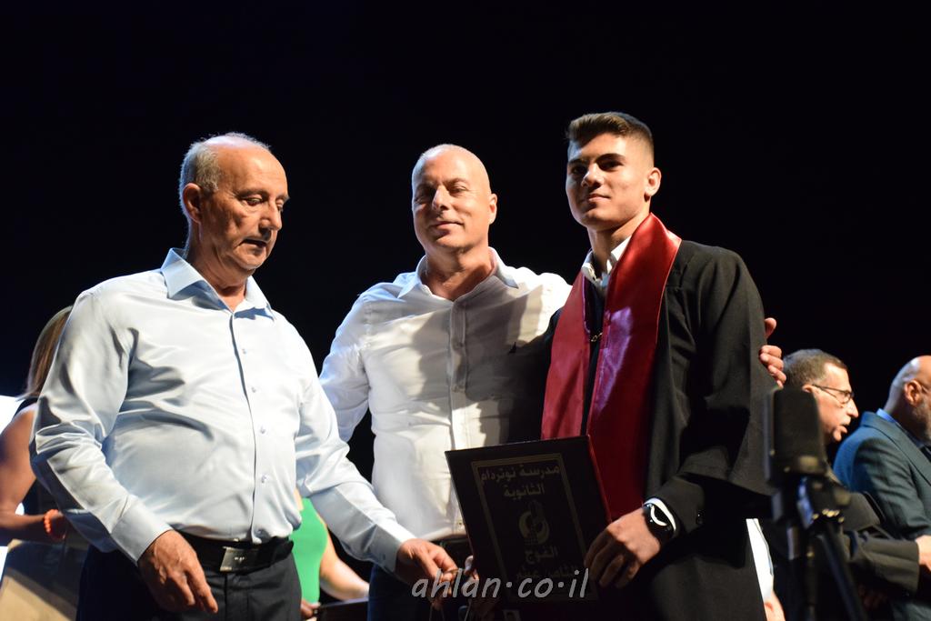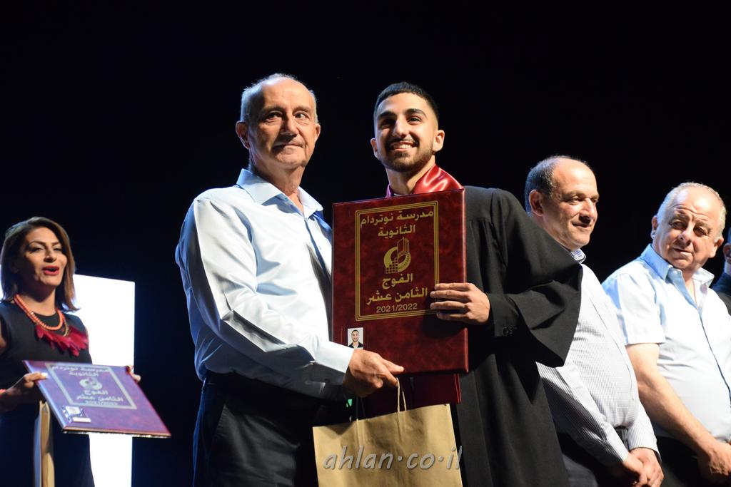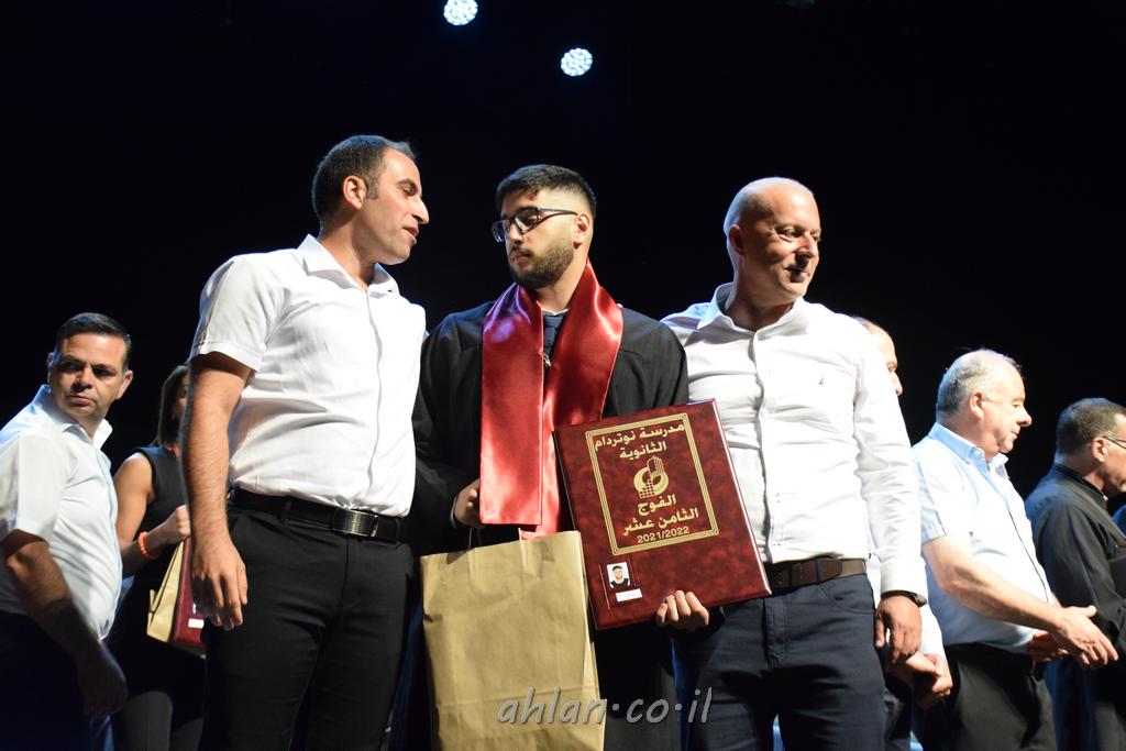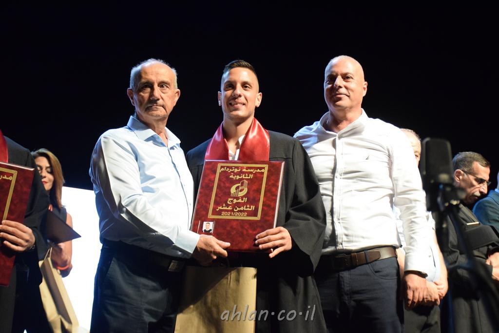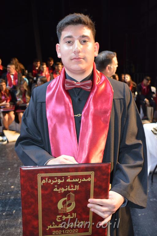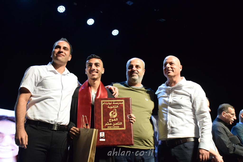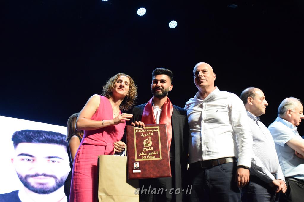 اهلا-تصوير ليلى زيتون ونردين سعد منذ تأسيس المدرسة قبل ما يقارب ٢٠ عاما بهدف الوصول بخريجيها الى أعلى المستويات العلمية المحلية والعالمية في شتى المجالات الحياتية العلميه والادبية ولا ننس ان نذكر في هذا السياق نستذكر مؤسس المدرسة المربي الراحل الياس اسعد خميسه الذي وضع نصب اعينه في الافق البعيد ان تخرج هذه المؤسسة خيرة طلابنا وانخراطهم في سلك الحياة والعمل كما ذكرنا . مدرسة نوتردام الثانوية والقيمين عليها والتي يقف على رأسها جمعية اخذت على عاتقها مسؤولية الحفاظ على ان تكون مدرسة شامخه بنتائجها وتحصيلاتها العلمية والادبية والتربوية وطبعا كل هذا بمسؤولية ربانها وقائدها المربي القدير المدير الاستاذ اياد قسيس وطاقم الهيئة التدريسية مربين ومربيات موظفين وعاملين كل بمكانته . في حفل خاص ومميز هذا العام الدراسي الذي تكلل بالنجاح والتالق والفقرات التي شملت الاستقبال والتصفيق والفن الموسيقى والرقصات والعرض المحوسب وطبعا مع توزيع الشهادات وببركة قدس الاب الياس عبد القيم العام ومدير المدرسة الابتدائية في معليا وبكلمات تنبض محبة واحساس ودعم للخريجين . طبعا تكلل هذا الحفل بكلمة موجزة وكان لا بد ان يذكر بها الانجازات العلمية والتربوية والثقافية والمراحل التي وصل اليها طلاب المدرسة على جميع الاصعدة التعليمية وخلال هذه الكلمة اعرب بها المدير الاستاذ اياد قسيس عن فخره وفخر الاهالي بتحصيل الطلاب الشامل على المستوى المحلي والقطري وبهذا تكون مدرسة وحلم نوتردام يتحقق بهذه التحصيلات والنتائج المرضية للجميع وسط تصفيق حار من الاهل والحضور الكريم.