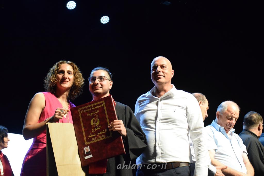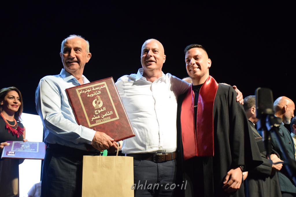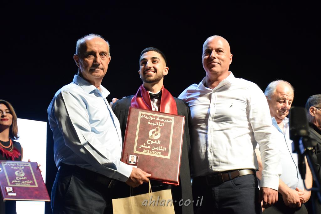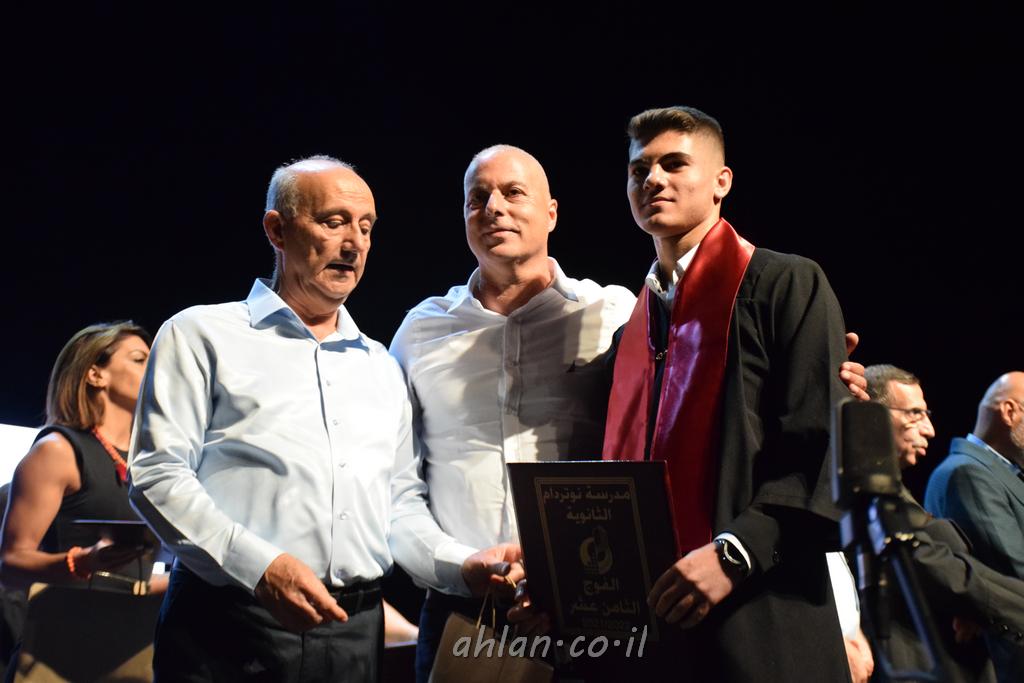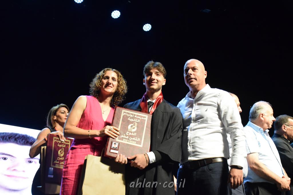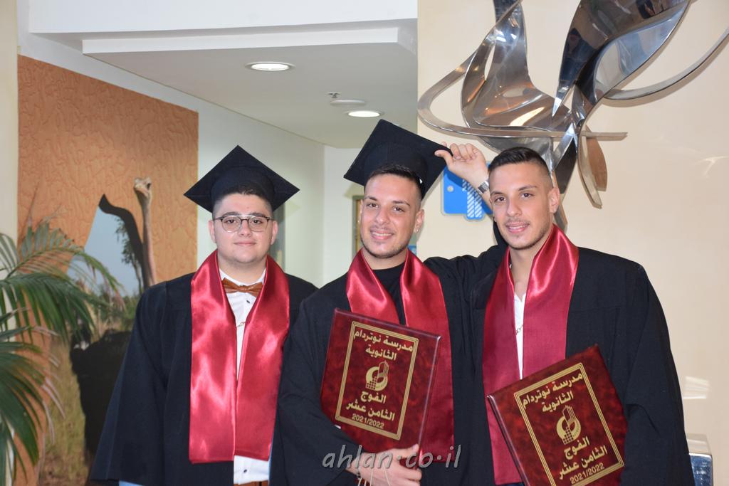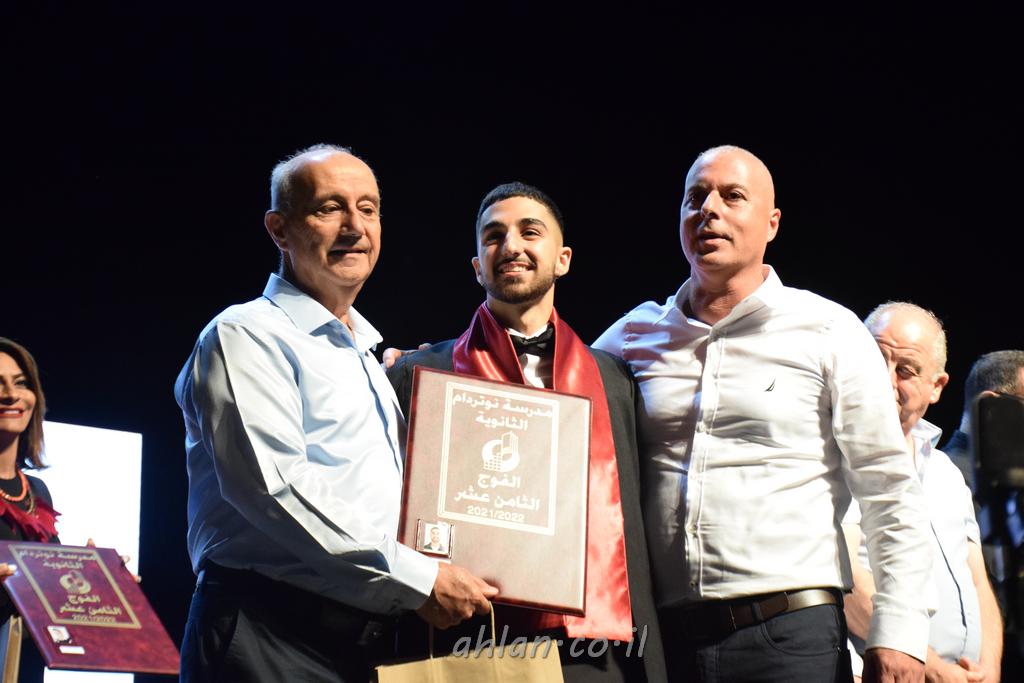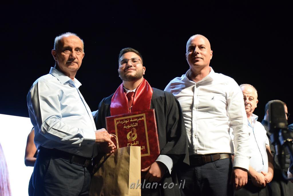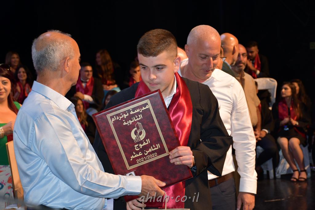 اهلا-تصوير ليلى زيتون ونردين سعد منذ تأسيس المدرسة قبل ما يقارب ٢٠ عاما بهدف الوصول بخريجيها الى أعلى المستويات العلمية المحلية والعالمية في شتى المجالات الحياتية العلميه والادبية ولا ننس ان نذكر في هذا السياق نستذكر مؤسس المدرسة المربي الراحل الياس اسعد خميسه الذي وضع نصب اعينه في الافق البعيد ان تخرج هذه المؤسسة خيرة طلابنا وانخراطهم في سلك الحياة والعمل كما ذكرنا . مدرسة نوتردام الثانوية والقيمين عليها والتي يقف على رأسها جمعية اخذت على عاتقها مسؤولية الحفاظ على ان تكون مدرسة شامخه بنتائجها وتحصيلاتها العلمية والادبية والتربوية وطبعا كل هذا بمسؤولية ربانها وقائدها المربي القدير المدير الاستاذ اياد قسيس وطاقم الهيئة التدريسية مربين ومربيات موظفين وعاملين كل بمكانته . في حفل خاص ومميز هذا العام الدراسي الذي تكلل بالنجاح والتالق والفقرات التي شملت الاستقبال والتصفيق والفن الموسيقى والرقصات والعرض المحوسب وطبعا مع توزيع الشهادات وببركة قدس الاب الياس عبد القيم العام ومدير المدرسة الابتدائية في معليا وبكلمات تنبض محبة واحساس ودعم للخريجين . طبعا تكلل هذا الحفل بكلمة موجزة وكان لا بد ان يذكر بها الانجازات العلمية والتربوية والثقافية والمراحل التي وصل اليها طلاب المدرسة على جميع الاصعدة التعليمية وخلال هذه الكلمة اعرب بها المدير الاستاذ اياد قسيس عن فخره وفخر الاهالي بتحصيل الطلاب الشامل على المستوى المحلي والقطري وبهذا تكون مدرسة وحلم نوتردام يتحقق بهذه التحصيلات والنتائج المرضية للجميع وسط تصفيق حار من الاهل والحضور الكريم.