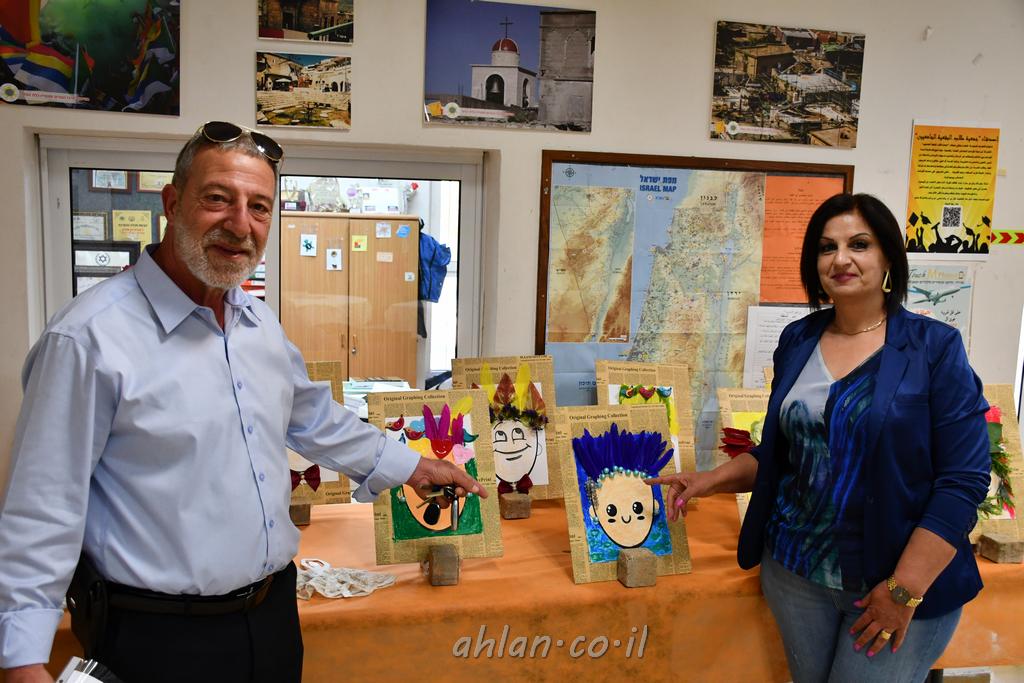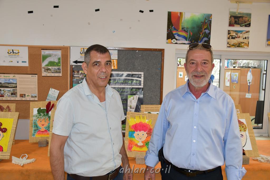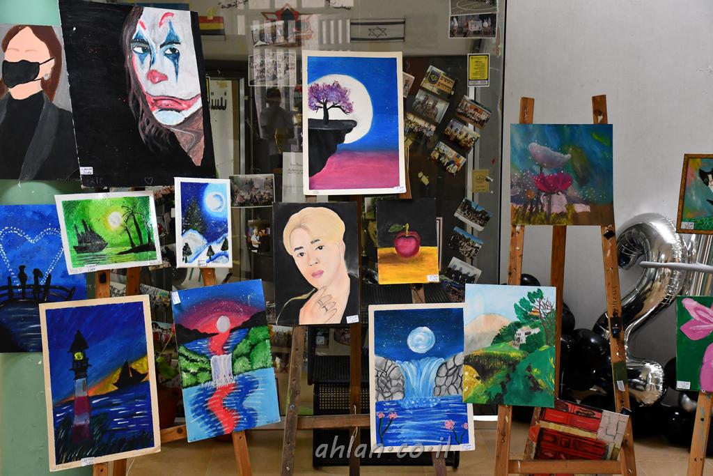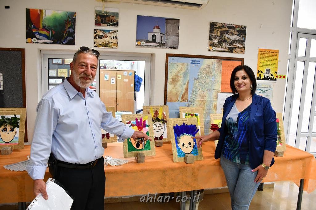 اهلا مع الاحتفال بتخريج طلاب الصف السادس في مدرسة الميس في قرية البقيعه وفي مدخل قاعة الاستقبال تم عرض لوحات فنية خاصة ومميزة من انتاج محلي لطلاب المدرسة قسم الفنون مع المربية المتالقة فريال ابو حلو تجسد ابداعها مع طلابها في مدرسة الميس الابتدائية البقيعة ، حيث تقوم بتعليمه وارشاده في خطوة لايصال رسائل تربوبية هادفة بطرق فنية وابداعية .