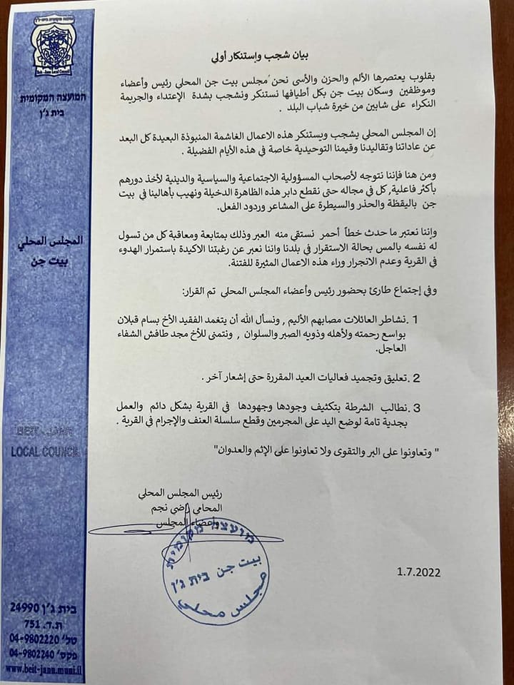 بيت جن: بيان شجبواستنكار للاحداث الدامية في القرية