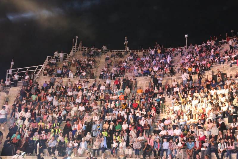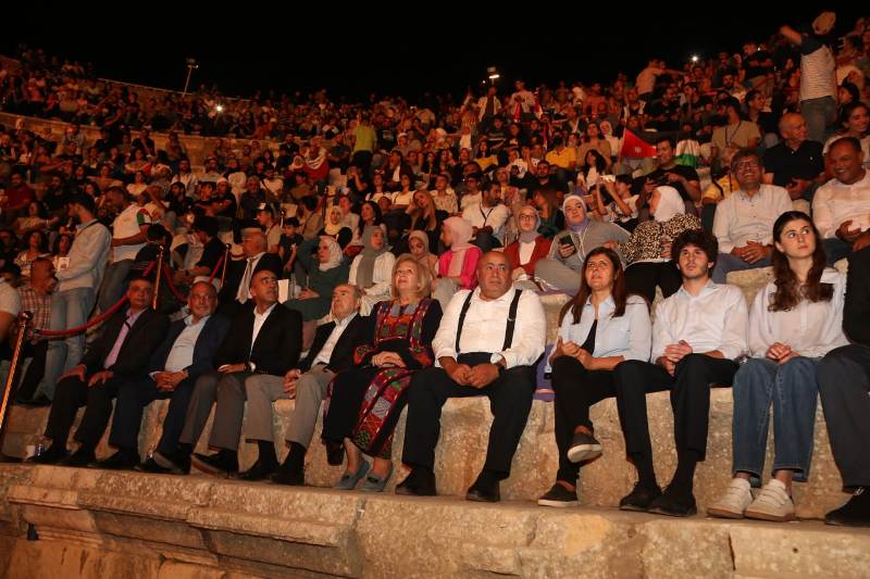 بزهاء 100 امرأة من مختلف الأجيال العمرية يرتدين أثواباً تراثية تمثّل الأردن وفلسطين وكل بلاد الشام، وفرقة موسيقية متنوّعة المرجعيات، وبحضور وزيرة الثقافة هيفاء النجار، ورئيس الوزراء السابق طاهر المصري، والنائب خليل حسين عطية، ورئيس بلدية جرش أحمد العتوم، والمدير التنفيذي لمهرجان جرش مازن قعوار، وجمهور زاد على 3000 حوّلت الفنانة والأكاديمية الفلسطينية دلال أبو آمنة المسرح الجنوبي في مدينة جرش التاريخية إلى منصة وحدة أردنية فلسطينية، وفضاء ذاكرة مسنّنة تأبى النسيان.