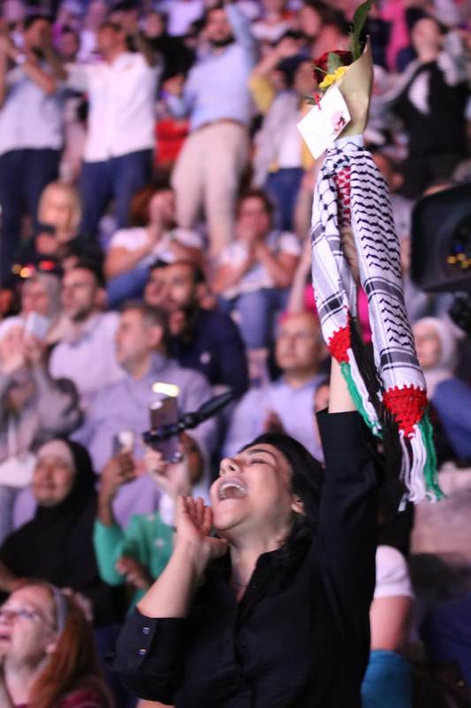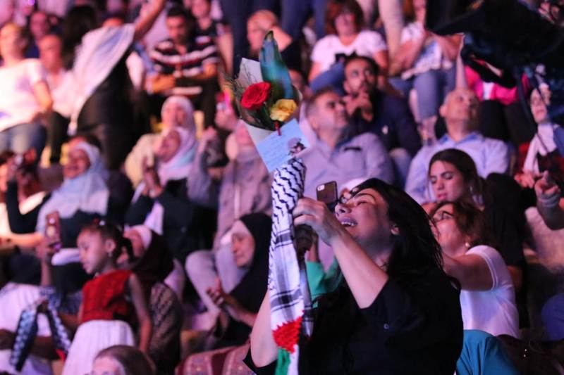 خيل الخليل وطلّتها، ورام الله التحتا والفوكا، وبرج يافا واسمها العالي، وحيفا العربية الرمّانة الساحلية، وسوق الترويحة النابلسي وخان نابلس وغندورتها، والطالعين في جنين عالجبل ليكيدوا الأعادي، وبياع التفاح الناصريّ (إسّا إجا وإسّا راح)، واللي رايحين على صفد، وحبايب بيت لحم، وطبريا ونسوانها ورجالها، وبديوية النقب، وسور عكا، وشعب الجبّارين الذي في غزّة، وطلّة خيلنا من القدس، وروح الشعب كل الشعب كانت حاضرة في مسرحٍ نابتٍ من عبق التاريخ ليعيد لأرض مغتصبة تاريخ أهلها وغنائها وأفراحها وندائها الأزليّ من أجل الحرية والكرامة والنصر والتحرير.