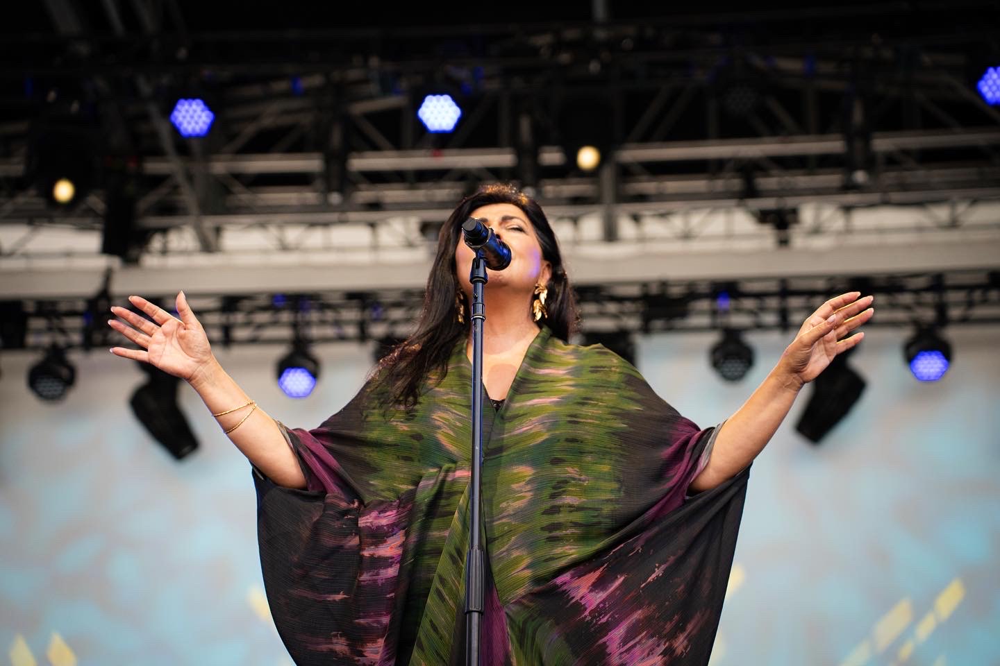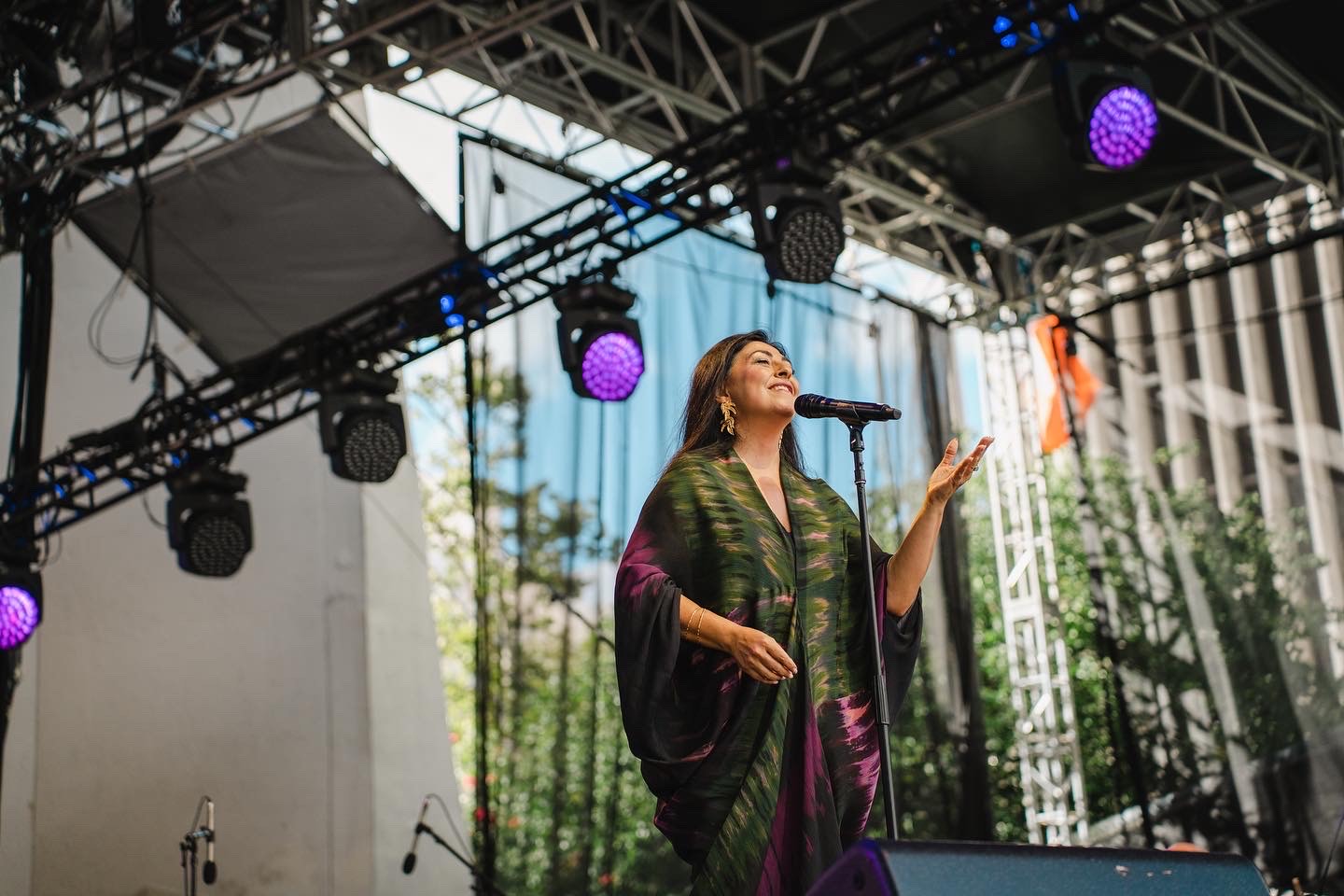 قدمت على امتداد الساعة وامام اكثر من الفين مستمع وجمهور من الفنانين والصحافيين الفنيين في باحة مسرح بارك دارموش، قدمت مجموعة من اغانيها الخاصة المتنوعة: دولا، حكاية، دق، حلم، تعالي الي، عصفور، ع الاوف مشعل، يابالالا، تعالوا ايها الشعراء، تخللها ارتجالات موسيقية ومشاركة وتفاعل كبير من الجمهور الغفير.