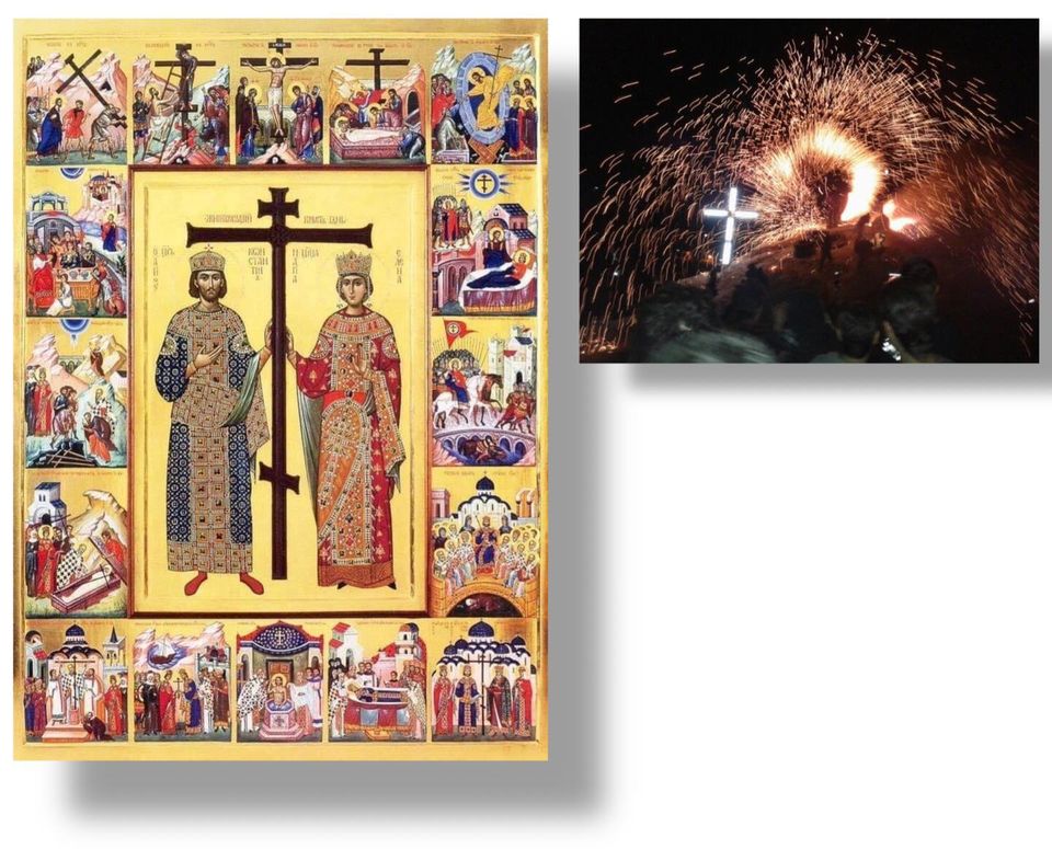 ملاحظة : شعلة النار التي نوقدها على الجبال في هذا اليوم ، سببها أن فرق الجنود المكلفة بالبحث عن الصليب آنذاك ، قد اتفقت فيما بينها على "إعطاء إشارة" ما أن تعثر إحداها على الصليب ، وهذه الإشارة هي "إضرام النار". وهكذا ما أن وجدت إحدى الفرق الصليب في اورشليم ، اضرمت النار وأعطت الإشارة للفرقة العسكرية المواجهة لها ... والفرقة الثانية بدورها أضرمت النار لتعطي الإشارة لغيرها وهلم جرا حتى أنيرت الامبراطورية كلها من القدس الى عاصمة الروم القسطنطينية منبئة بإيجاد الصليب الكريم .