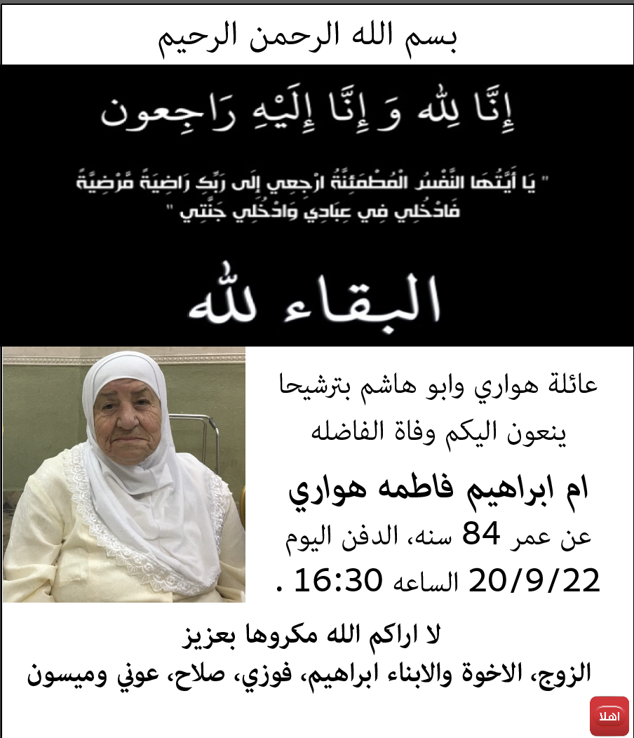 ترشيحا: وفاة الفاضلة ام ابراهيم فاطمة هواري