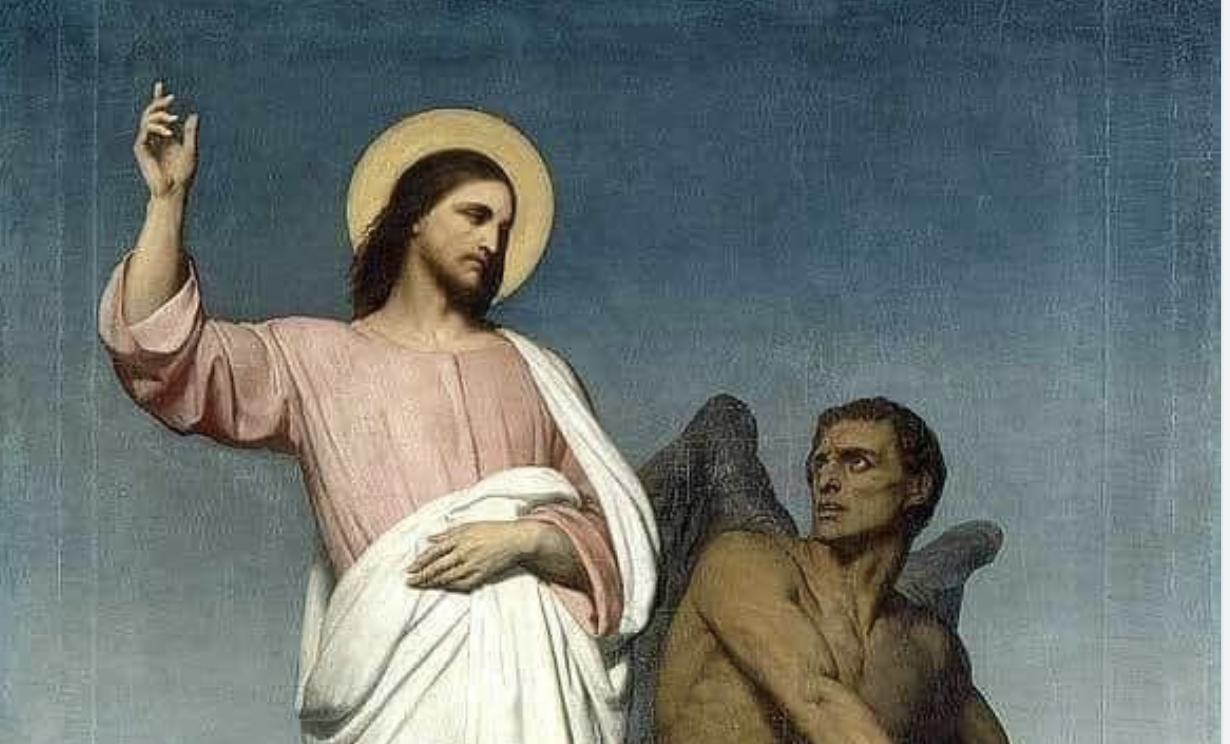 عندما كان الشيطان يجرّبه، فقد كان الرب يسوع يجيب بعبارات من الكتاب المقّدس، وقد كان بإمكانه أن يدفع بمجرِّبه إلى الهاوية، فهو "كلمة الله".