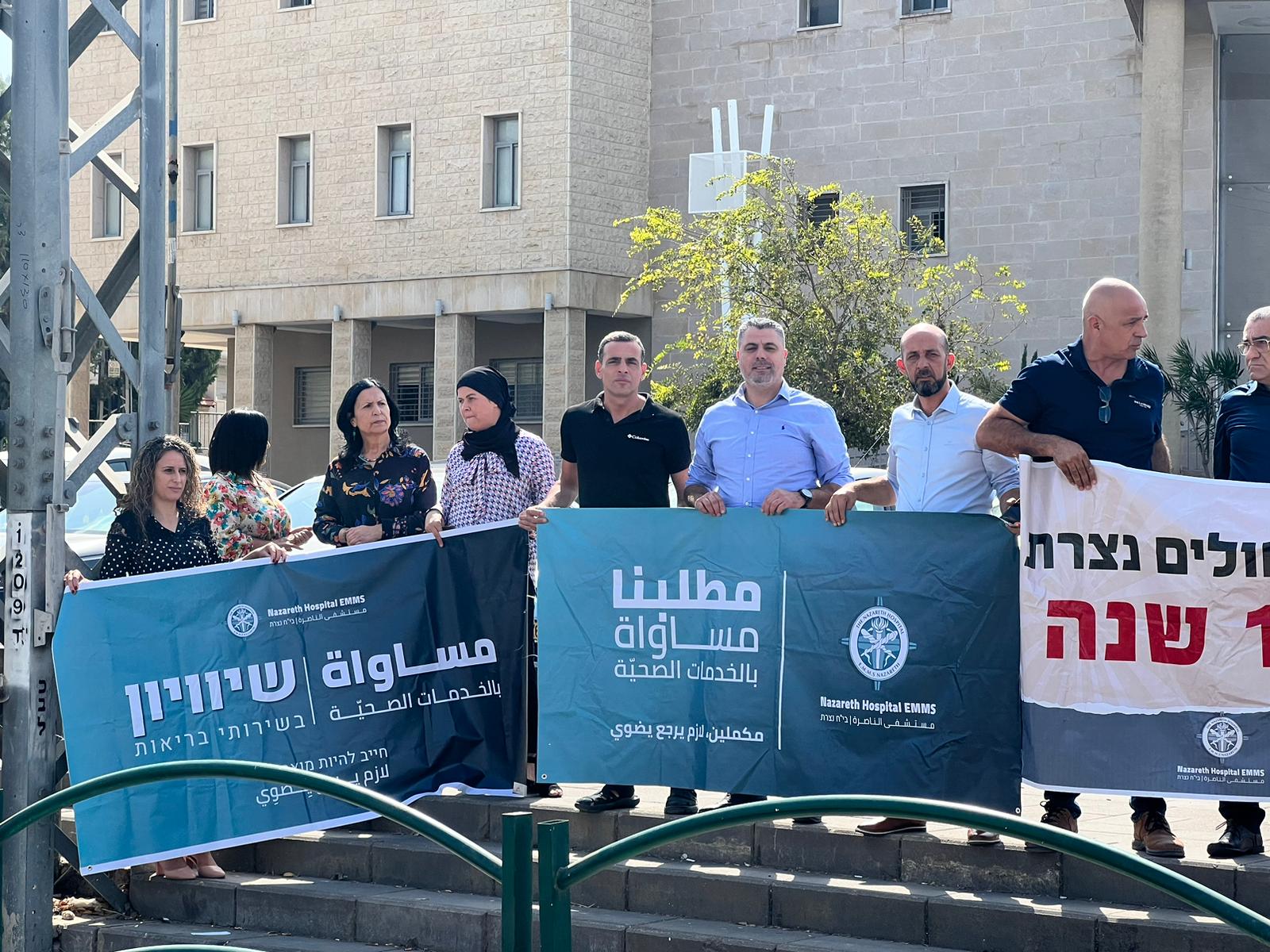 اهلا البلدات العربية: تضامن واسع مع مستشفى الناصرة (الإنجليزي) ● كل يوم في بلدة: وقفة احتجاج وتضامن. حتى الآن 7 بلدات، والحملة مستمرة! نجاح كبير للوقفات الاحتجاجية التضامنية مع مستشفى الناصرة (الإنجليزي) في البلدات العربية. فقد شهدت 7 بلدات عربية، في غضون أسبوع، وقفات تضامنية، حيث رفع المتظاهرون شعارات تؤكد على حق المستشفى بالمساواة وحق المجتمع العربي بالحصول على خدمات صحيّة متساوية. والبلدات العربية التي جرت فيها الوقفات، حتى الآن، هي: دبورية، إكسال، يافة الناصرة، سخنين، الرينة، شفاعمرو وعرابة. وعلمنا من لجنة الأطباء ولجنة المستخدمين في المستشفى ان الوقفات ستستمر هذا الأسبوع أيضًا، حيث ستشهد بلدات عربية أخرى مثل هذه الوقفات. وأكدت لجنة الأطباء ولجنة المستخدمين على اعتزازها بهذا الإلتفاف حول المستشفى ومطالبه، مؤكدة على ان هذه المطالب "سرعان ما تحوّلت الى مطالب مجتمع كامل" وان "النضال الذي يخوضه المستشفى، إدارة وأطباء ومستخدمين، بات نضالاً جماهيريًا، يحتضنه أهلنا ويشاركون فيه، وهو ما يشكل مصدر تقدير وفخر". وتم توجيه الشكر لجميع رؤساء البلديات والمجالس المحلية الذين ساهموا بانجاح هذه الوقفات في بلداتهم..jpeg)
