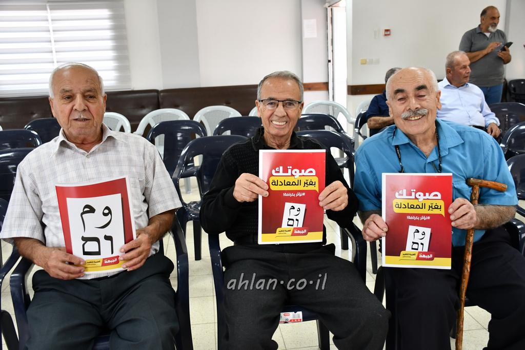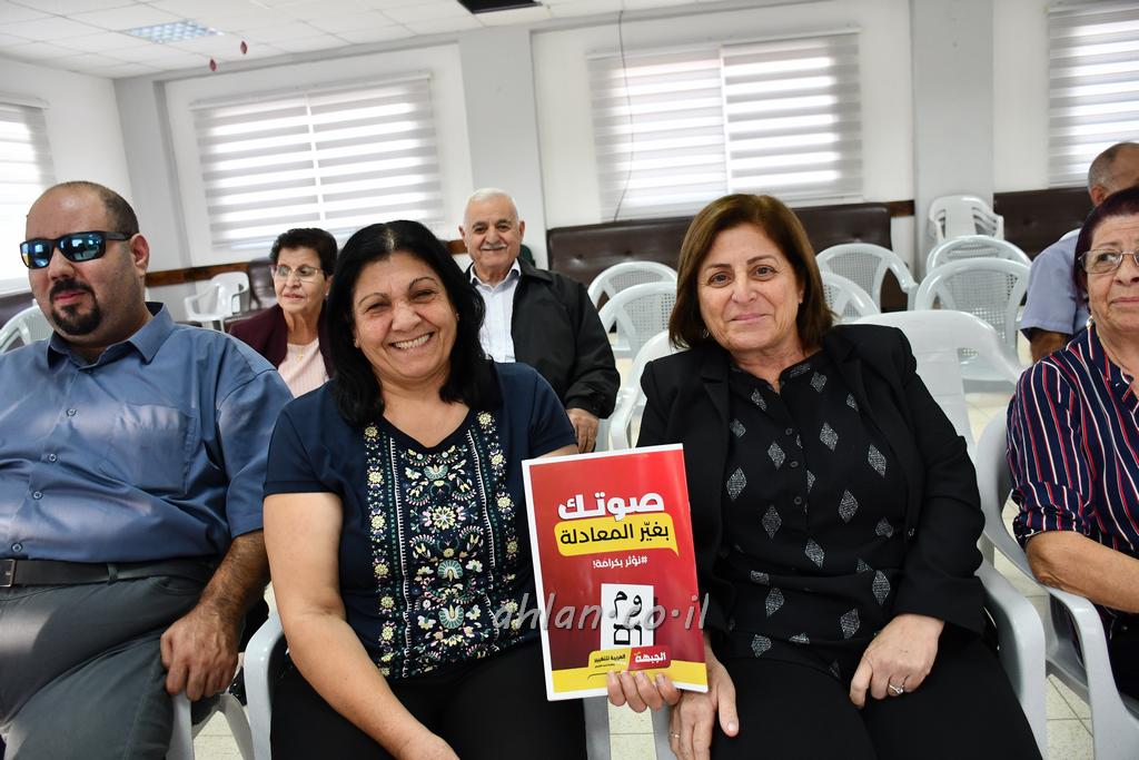 اهلا-الصور تصوير موقع اهلا البقيعة: حضور نوعي ومميز اثرى اجتماعا انتخابيا دعما لقائمة الجبهة والعربية للتغيير استمرارا لما تقوم به جبهة البقيعة الديمقراطية من توزيع المنشورات وعقد اللقاءات بيتية والاطلاع على مكنونات سجل الناخبين، وما الى هذا من اعمال ونشاطات استعدادا لانتخابات الكنيست الـ 25، شهدت قاعة الاخوة في البقيعة المرج، مساء اليوم الجمعة، اجتماعا انتخابيا دعما لقائمة الجبهة والعربية للتغيير، شارك به حشد نوعي ومميز من الاهالي على مختلف مناهلهم الاجتماعية والحياتية، افتتحه وقدم له ابن البقيعة وحيفا الاستاذ نبيل سمور مرحبا ومتوقفا عن بعض الملاحظات الانتخابية التي جرت بشفافية وديمقراطية في مجلس الجبهة. ثم تكلم كل من: النقابية ختام واكد رئيسة كتلة الجبهة "نعمت" في الهستدروت، المحامي شادي شويري رئيس مجلس كفر ياسيف المحلي والنائب ايمن عودة رئيس قائمة الجبهة والعربية للتغيير. حيث مروا على مختلف القضايا ومنها الوزن النوعي للمجتمع العربي والتأثير الكبير على مجريات الاحداث بوصول 15عضو كنيست ضمن القائمة المشتركة مؤكدين على دور نواب الجبهة ومختلف المنتخبين الجبهويين في الهستدروت بمختلف مؤسساتها والمجالس المحلية والبلدية تصدوا ويتصدون لسياسة القهر القومي واليومي حاملين قضايا وهموم شعبهم.