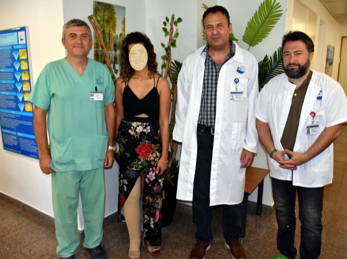 الصورة رقم 231111101 من اليمين: د. برامنيك, د. فراج, المريضة, د.دروبوت (تصوير المركز الطبي بوريا)