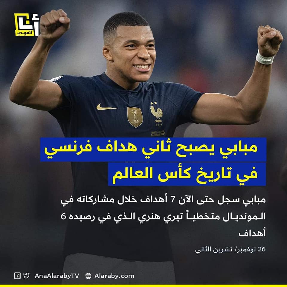قاد النجم الفرنسي الشاب كيليان_مبابي منتخب فرنسا ليكون أول من يتأهل إلى دور الـ 16 في مونديال_قطر، بعد الفوز على الدنمارك 2-1 مساء السبت.