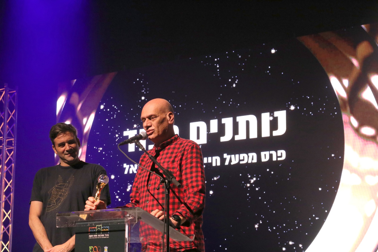 اهلا-تصوير نقابة الفنانين الفنانان سعيد سلامة وميلاد مطر يرافقان زميلهما أسامة مصري للحصول على جائزة مشروع الحياة من نقابة الفنانين *في حفل كبير حضره نخبة من الفنانين المشهورين في البلاد وجمهور واسع من ذويهم ومعارفهم ومعظم أعضاء نقابة الفنانين، تم تقليد الفنان أسامة مصري جائزة "مشروع الحياة" عن مجمل أعماله الفنية، وهي جائزة رمزية وغير مادية، ولكنها تعتبر أعلى جائزة تقدمها نقابة الفنين العامة والتي تضم مختلف أنواع الفن الذي يقدم على خشبات المسارح وفي التلفزيون والسينما وما شابه... ويشار إلى ان هذه الجائزة تقدم لأول مرّة لفنان عربي فلسطيني من قبل النقابة.