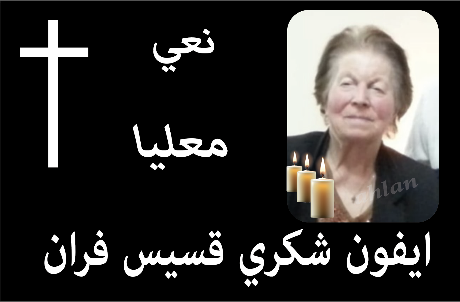 معليا: وفاة الفاضلة ايفون شكري قسيس فران ام قيصر عن عمر يناهز 92 عام