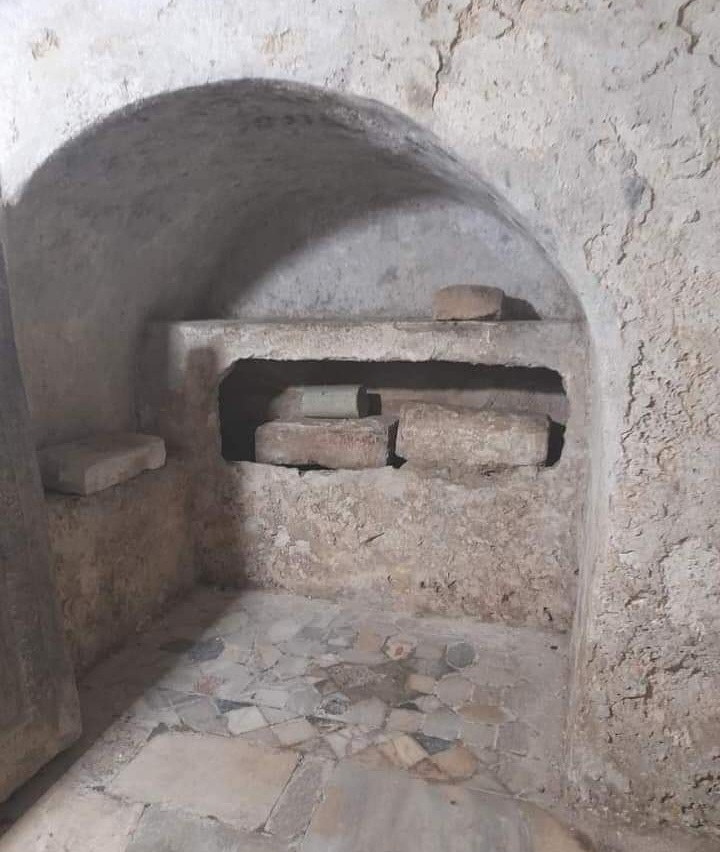 في الدّاخل ضريح يوحنّا وضريحان آخران، تقول المصادر أنّهما للنّبيٌّين أليشع وعوڤاديا، وفي مصادر أخرى زكريّا وأليصابات، ويقول الراهب الفلسطيني جون روفوس الذي زار الموقع في الفترة البيزنطيّة سنة 512م إنه رأى مصلّى صغيرًا داخل الكنيسة محاطًا بحواجز من قضبان متصالبة، لوجود تابوتين مغطّيين بالذهب والفضّة، وأمام كل واحد منهما مصاببح مشتعلة على الدّوام، واحد منهما ليوحنّا والثاني لأليشع، وهناك عرش مغطّى بقماش لا يجلس عليه أحد.