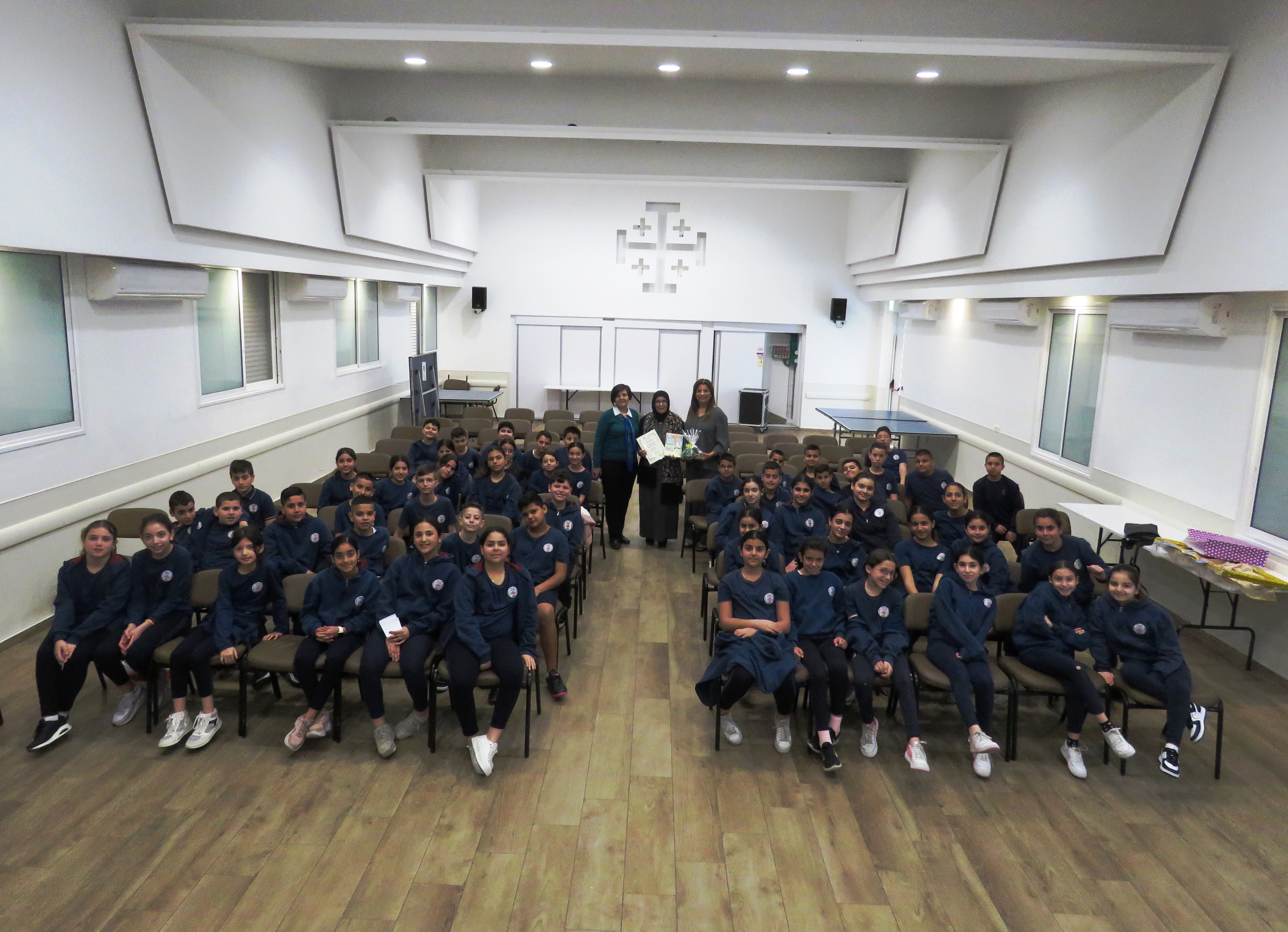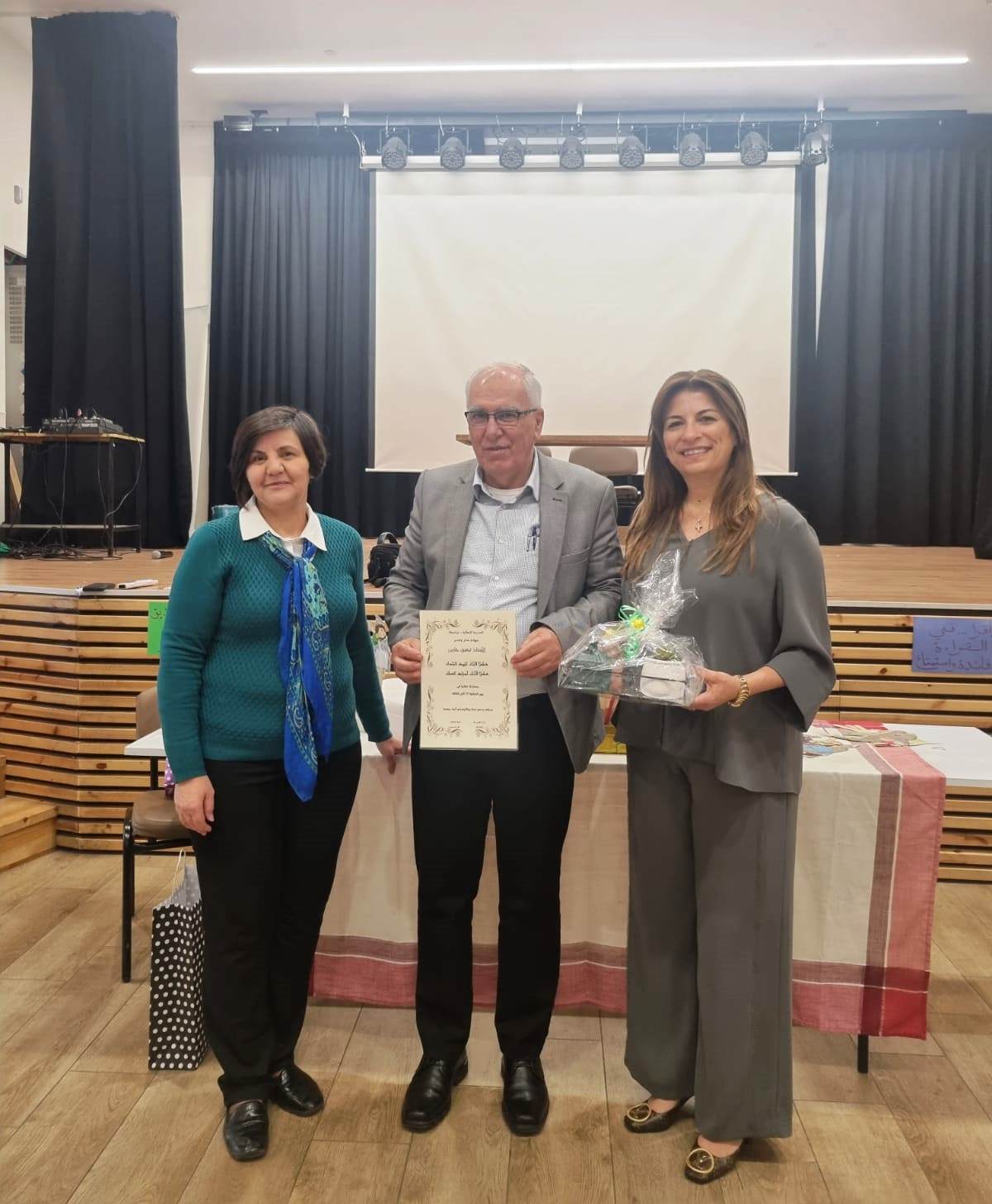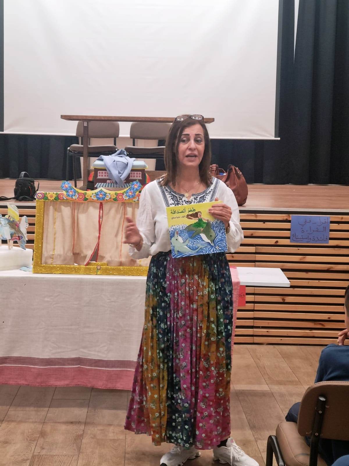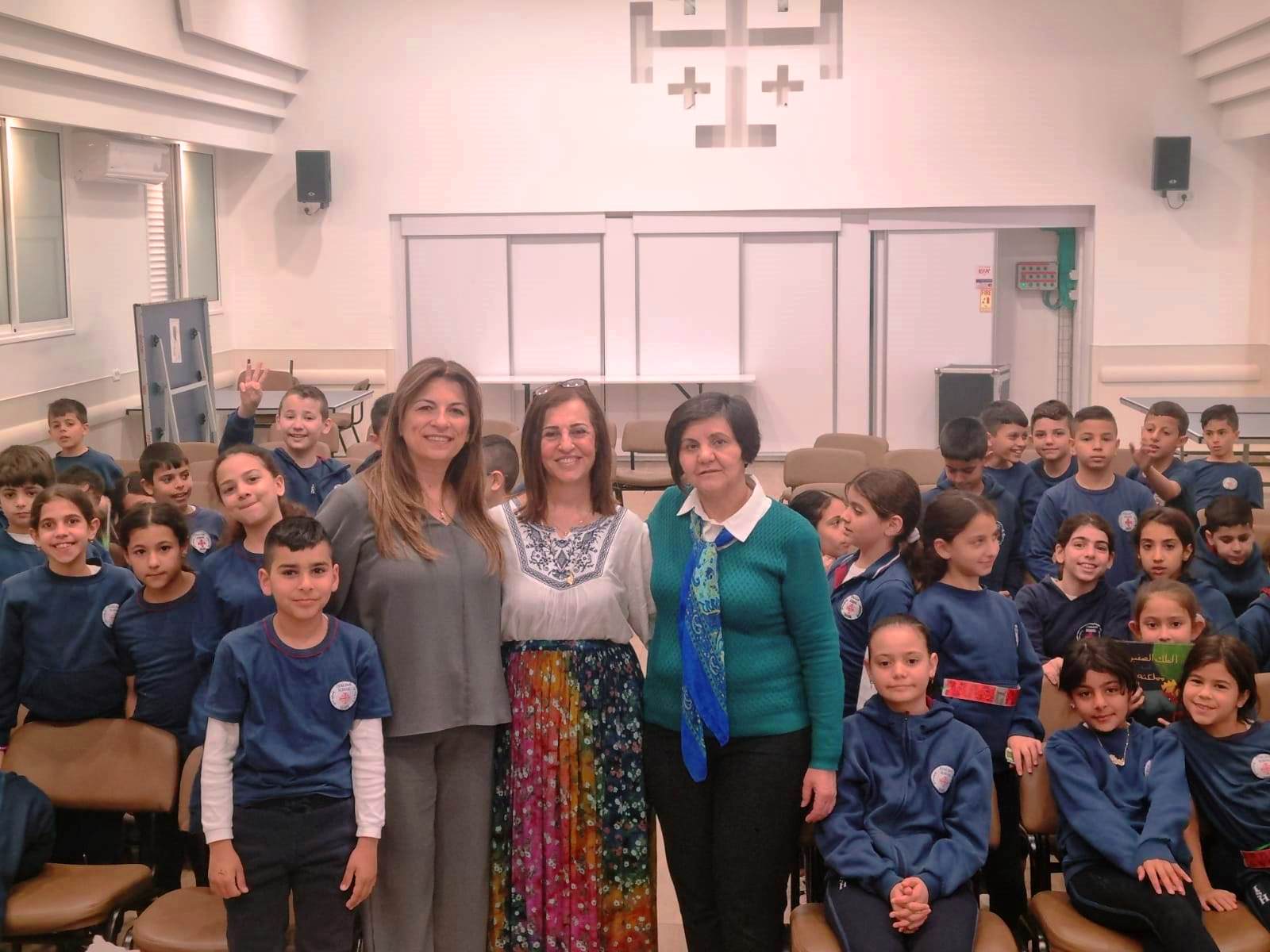 اهلا اللجنة الإعلامية_ التقت الكاتبة نبيهة جبارين مع طلاب الصفوف الخامسة، حيث حدثتهم عن فكرة كتابها "أغاني أولادنا انتماء لبلادنا" المدرَج ضمن مشروع مسيرة الكتاب، وإهدائها إياه لأطفال بلادنا. قرأت بعض أشعار الكتاب وبعضها مُلَحّنا وشاركها الطلاب في الغناء، واطّلعت بعد ذلك على ما قدّمته طالبات الصف السادس في المدرسة لطلاب صفوف الأوائل والثاني من أشعار من الكتاب المذكور مثل "يا ولاد حارتنا"، "دور يا صحن السكر" وغيرها التي قامت كاتبتنا بتغيير كلماتها لتتلاءم مع بيئتنا. أما الكاتبة ناديا صالح فكان لقاؤها مع طلاب الصفوف الرابعة، حيث سردت على مسامعهم قصة "طعم الصداقة" عن طريق مسرح الدّمى، هذه القصة أيضا ضمن قصص مسيرة الكتاب لهذه السنة. لاقى السرد والعرض استحسان الطلاب، هذا وسردت أيضا قصتها "حمّام مبارك" للطلاب مكافأة لهم لتفاعلهم الجميل. تجدر الإشارة أن صديق الاتحاد الأستاذ توفيق جبارين شارك في هذا الاحتفال، فسرد بعض الحكايات لطلاب صفوف السوادس وأتحفهم ببعض جماليات لغتنا العربية.