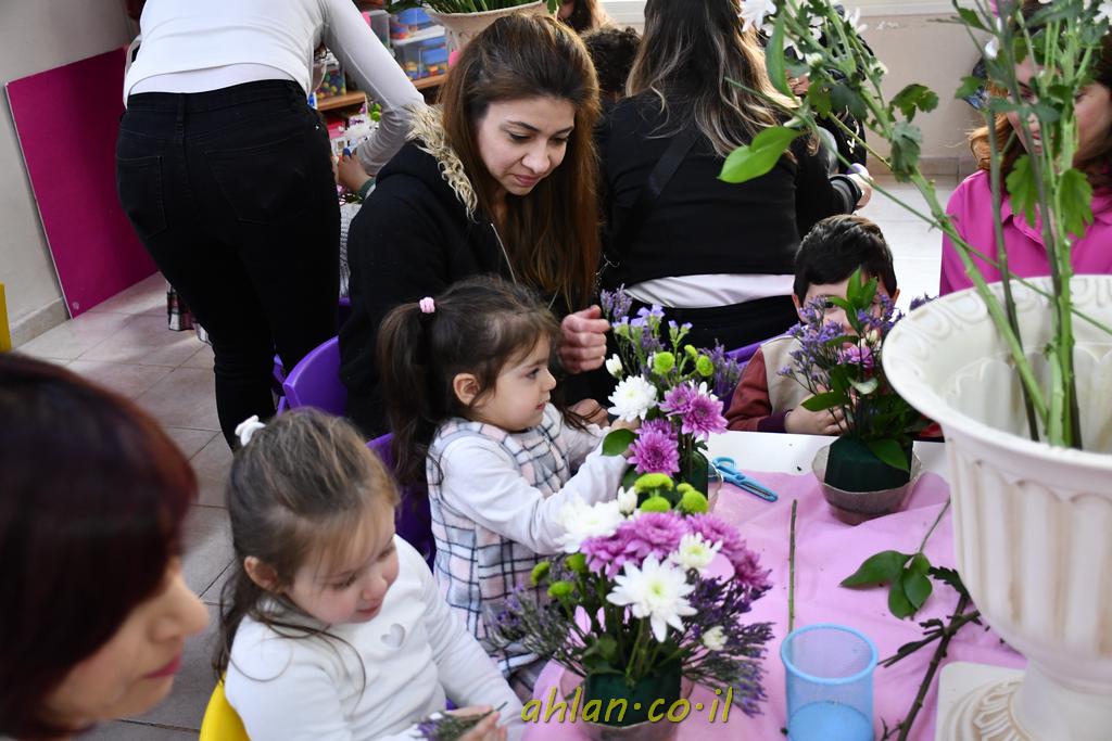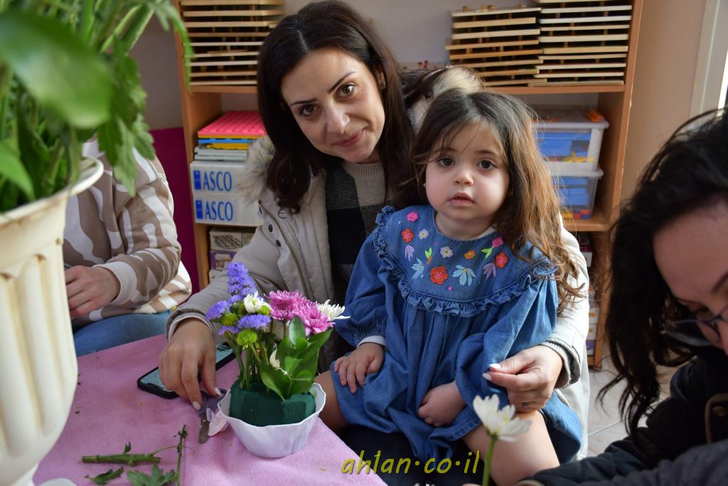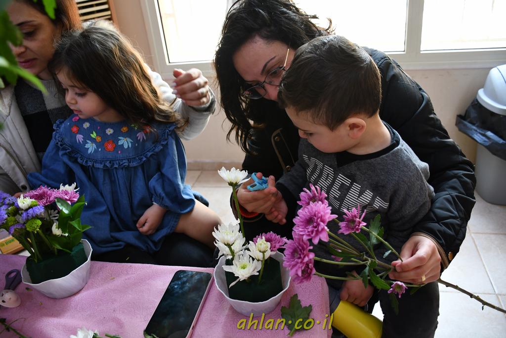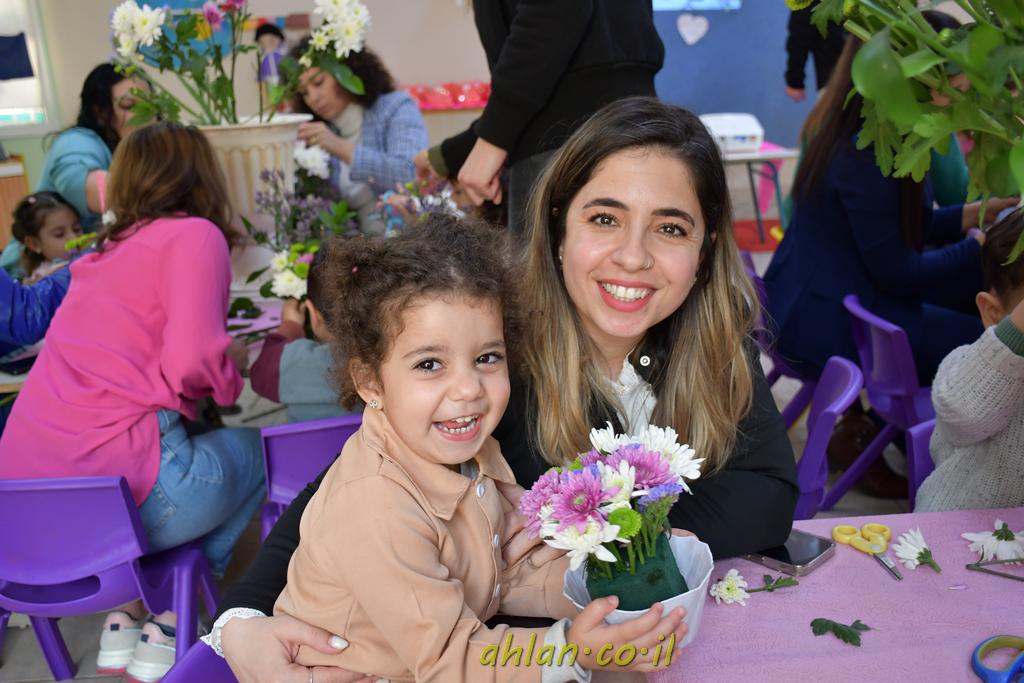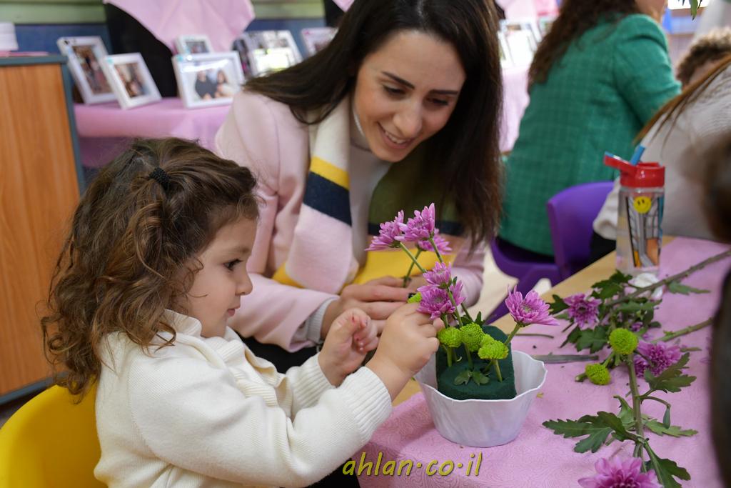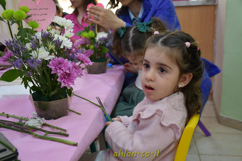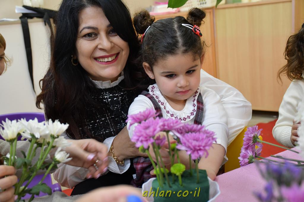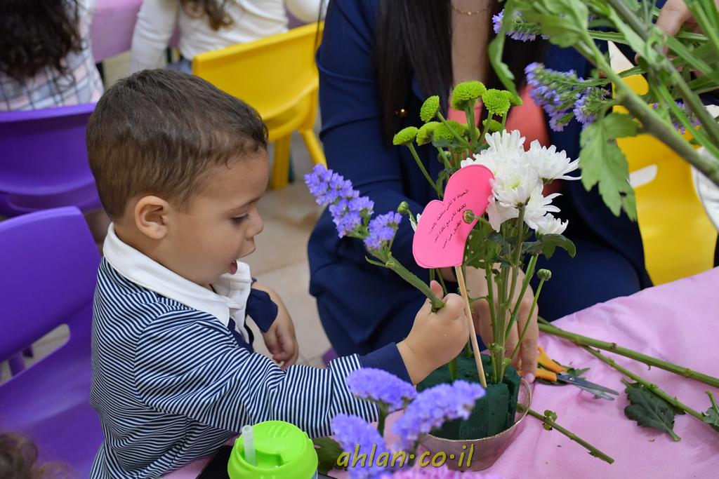 الجزء الاخير من الاحتفال كان ورشه تنسيق زهور فكل طفل وامه نسقا معا ضمه جميله تشبهما جمالا ورونقا .