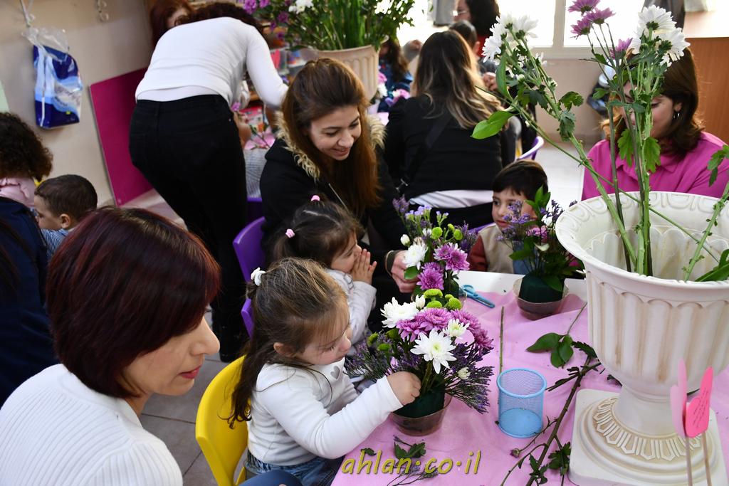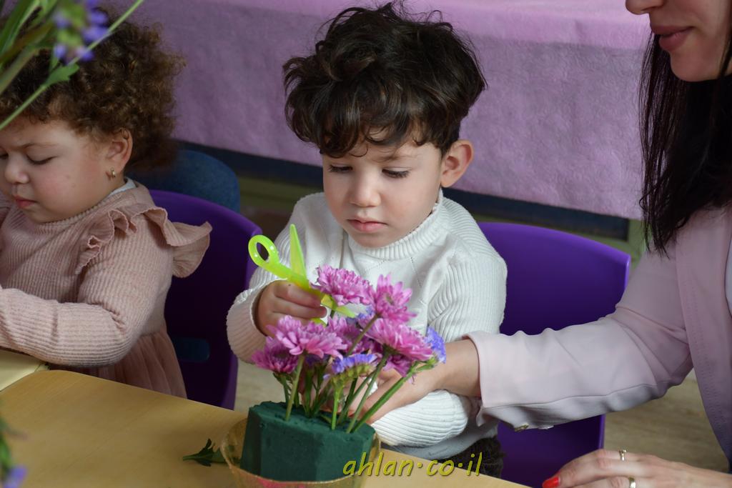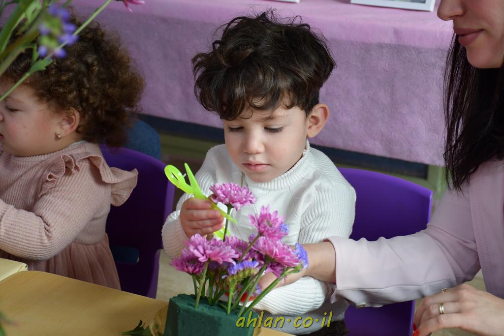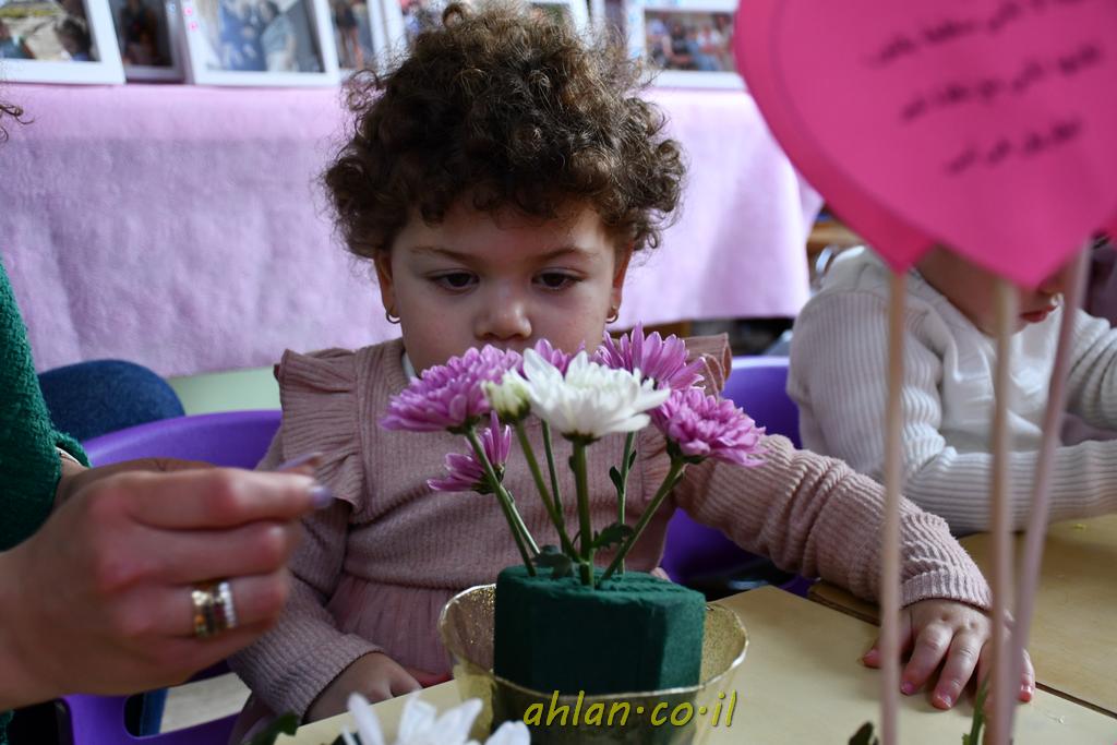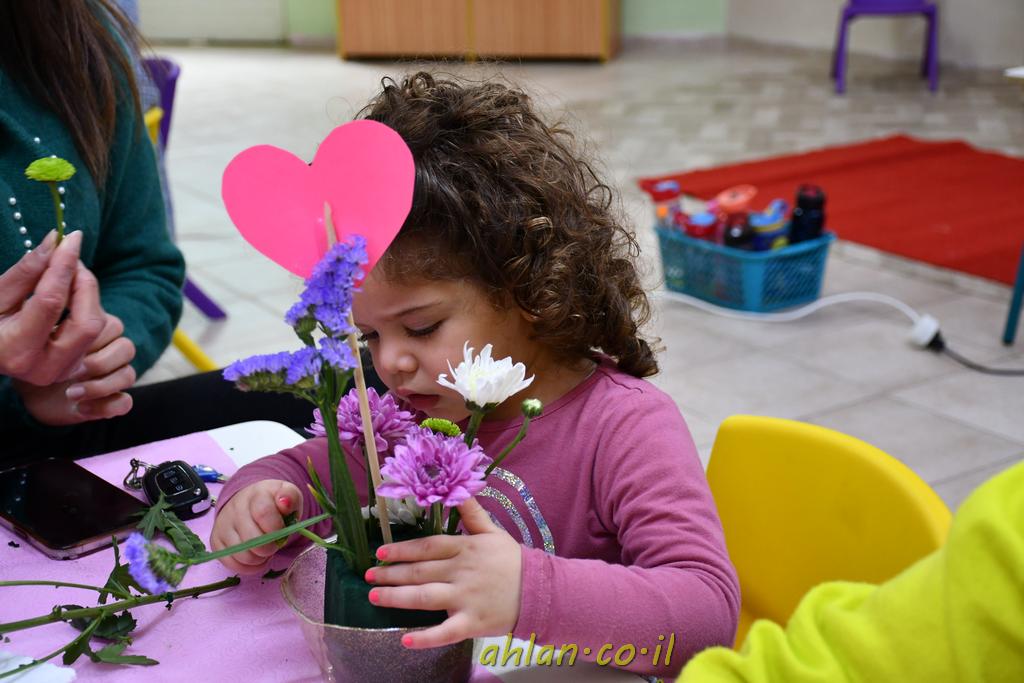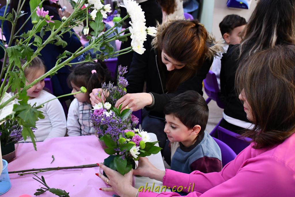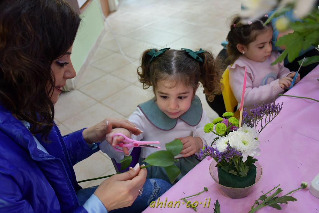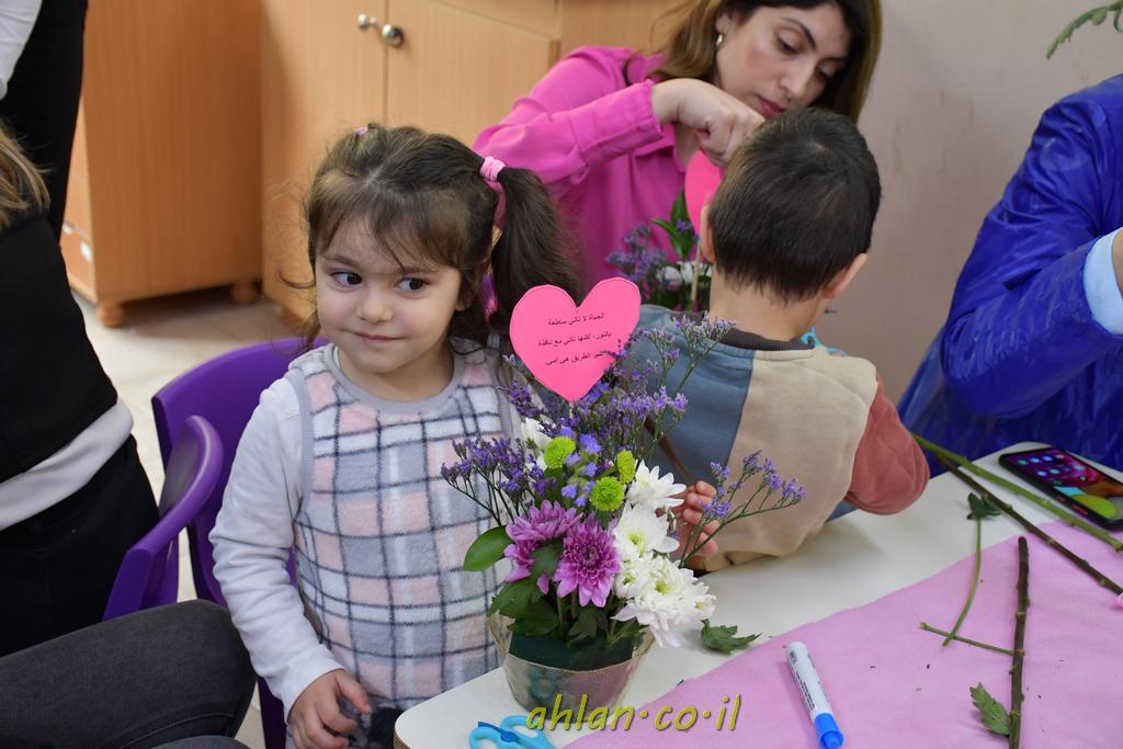 الجزء الاخير من الاحتفال كان ورشه تنسيق زهور فكل طفل وامه نسقا معا ضمه جميله تشبهما جمالا ورونقا .