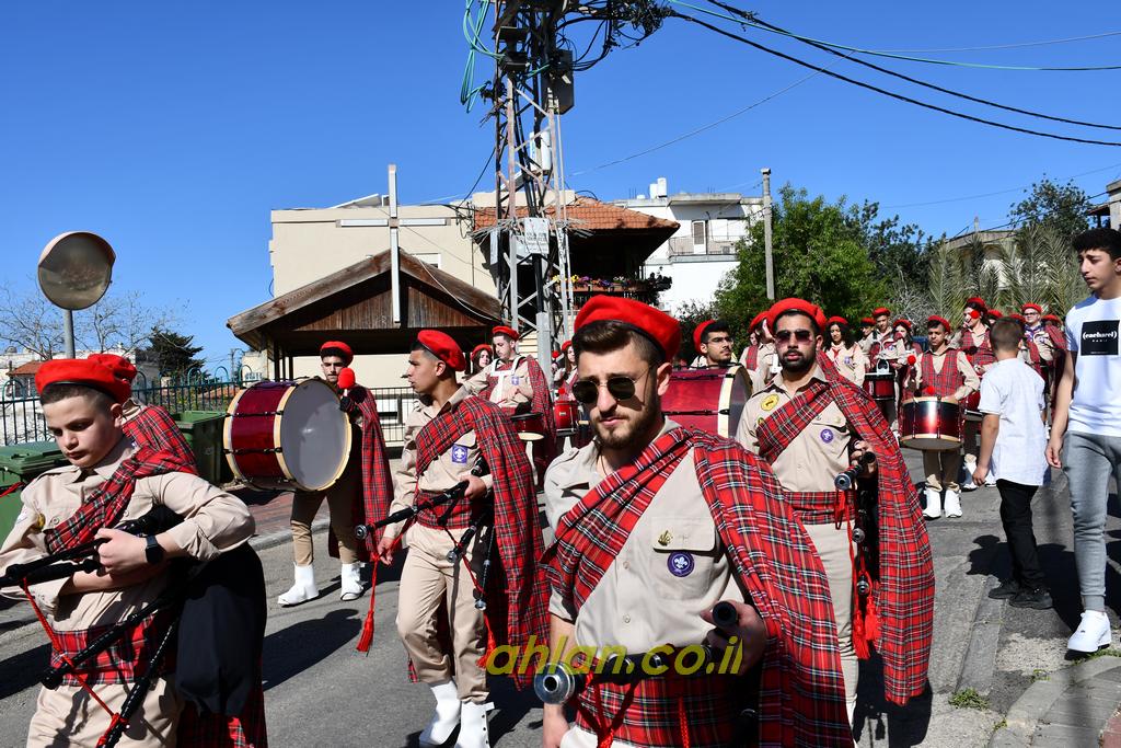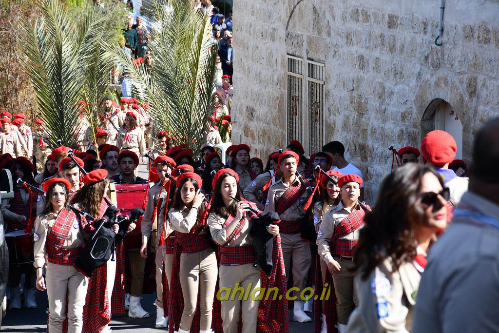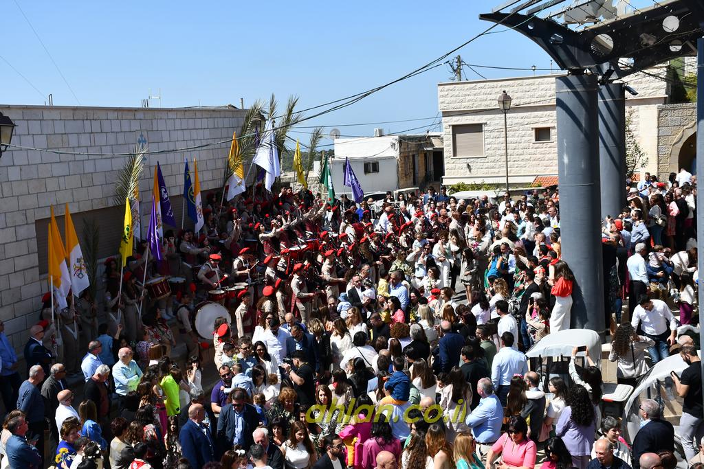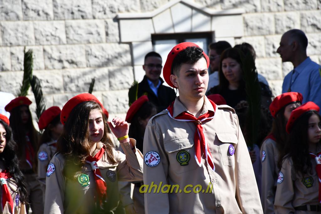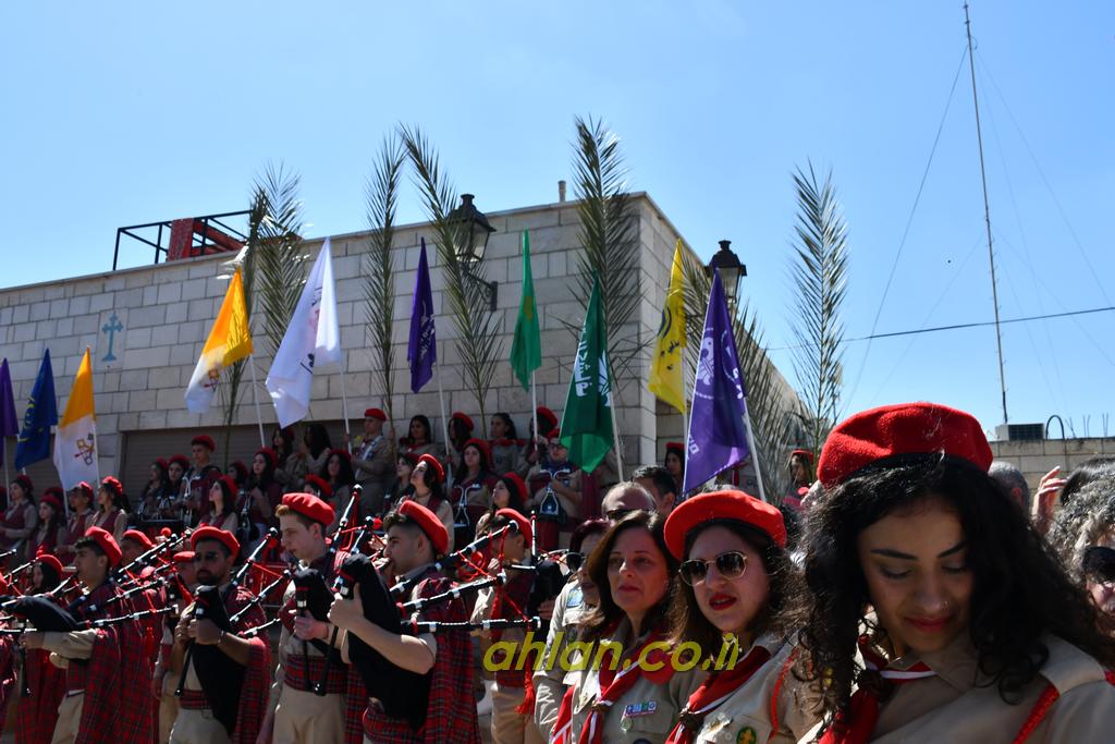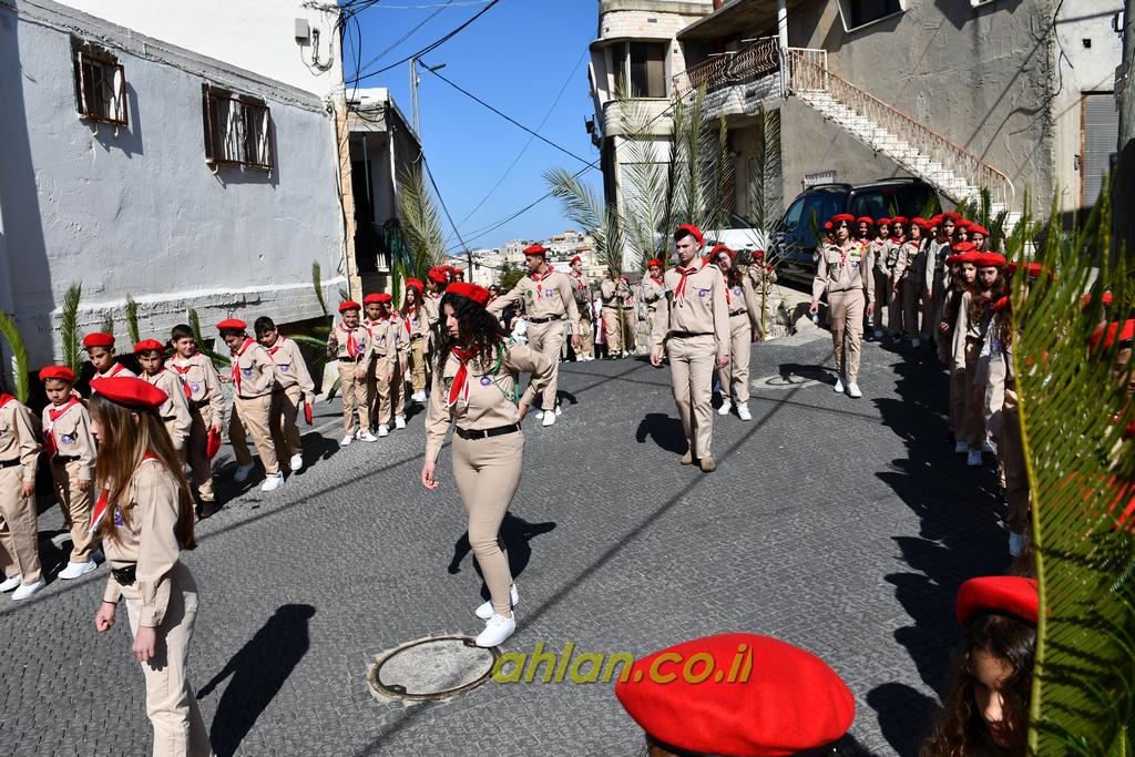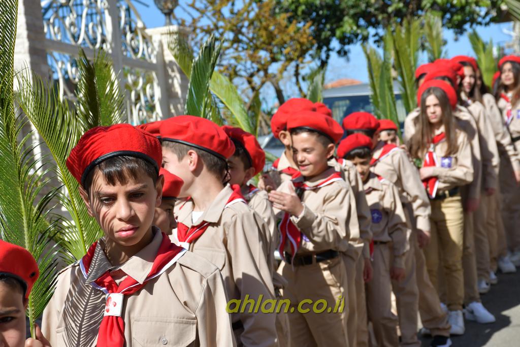 اهلا "هوشعنا، تبارك الآتي باسمِ الرّبّ" هوشعنا في العُلى (متى ٢١: ١ -١٧). اليوم أحد الشعانين، أحد المجد مع يسوع المسيح، المجد الذي سيُدخلنا في أسبوع الآلام لنرافق يسوع حتى القيامة. لماذا نسمي يوم أحد الشعانين بيوم المجد؟ بعد أن أقام يسوع صديقه لعازر من بين الأموات (يوحنا ١١: ١-٤٣)، قرّر أن يدخل للمرة الأخيرة إلى أورشليم ليحتفل بعيد الفصح مع تلاميذِهِ، فاستقبله الشعب بفرح كبير وبعلامات النصر واعتبره هو الملك. استقبله الشعب بأغصان النخل التي تُعبّر عن استقبال الملك المنتصر، وبأغصان الزيتون التي تُعبّر عن السلام الذي يحمله الشعب في قلبه. استقبله الكبار والصغار، وبخاصة الأطفال والرضّع وهم يهتفون: هُوشَعْنا! تَبارَكَ الآتي، الْمَلِكُ، باسمِ الرَّبّ! هكذا الحال في قرية معليا وبمشاركة واسعه لا مثيل لها انطلقت المسيرة الكشفية مع حملة سعف النخيل من مدخل القرية ووصولا الى باحة كنيسة السيدة هناك اقيم القداس الالهي احتفل به قدس الاب نديم شقور كاهن رعية معليا وشارك معه النائب العام قدس الاب الياس عبد وجوقة الكنيسة وعدد كبير من المصلين داخل وخارج الكنيسة ومن ثم انطلقت دورة الشعانين خارج الكنيسة وعل صوت المرنمين من الداحل وصوت العزف من سرية كشافة معليا التي شارك امتعت الجميع بالالحان العذبة ومع صوت جرس الكنيسة احتفلت رعية معليا في احد الشعانين نشيد بمشاركة مدير عام حركة الكشافة العربية اشرف شحادة