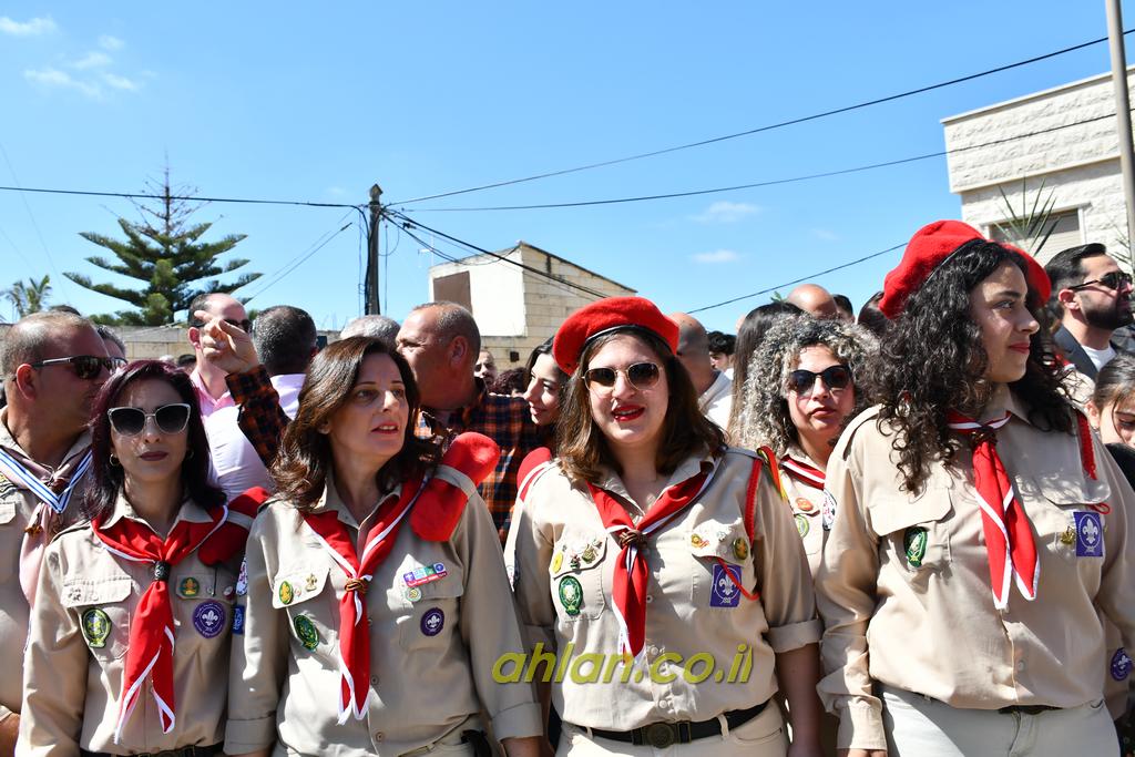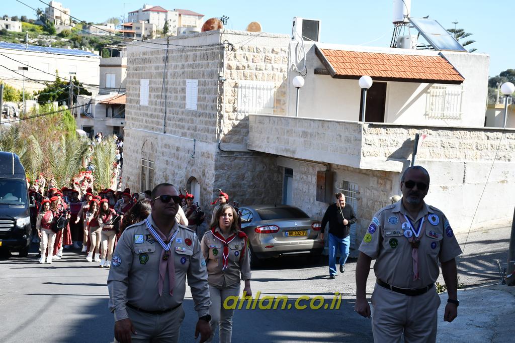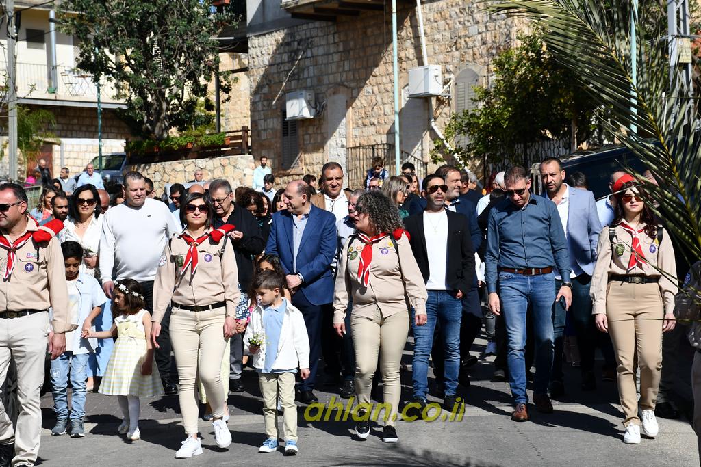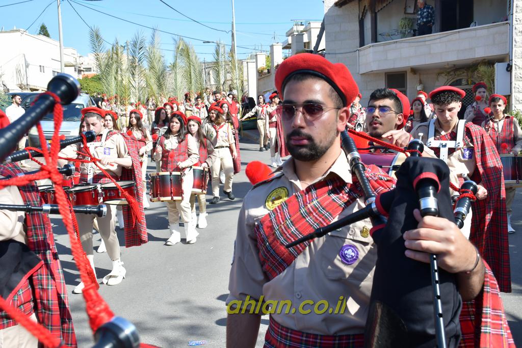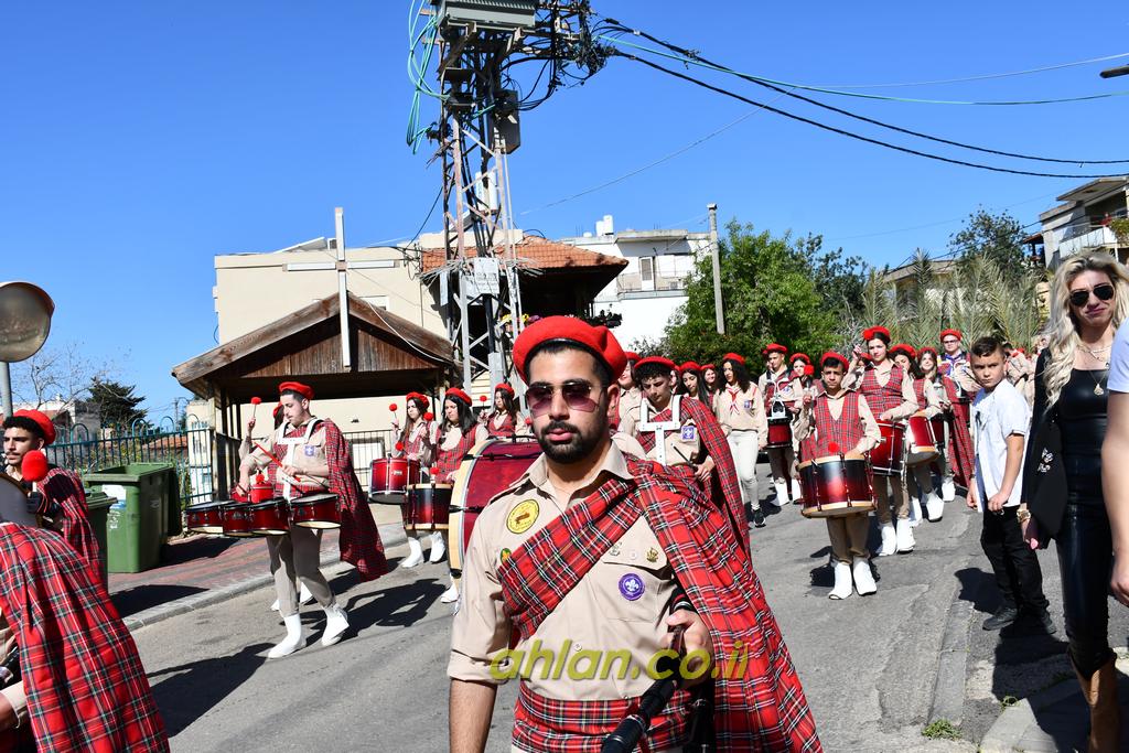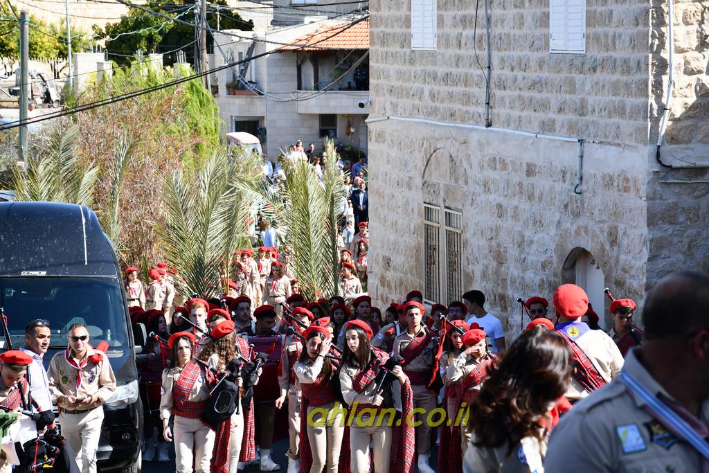 اهلا "هوشعنا، تبارك الآتي باسمِ الرّبّ" هوشعنا في العُلى (متى ٢١: ١ -١٧). اليوم أحد الشعانين، أحد المجد مع يسوع المسيح، المجد الذي سيُدخلنا في أسبوع الآلام لنرافق يسوع حتى القيامة. لماذا نسمي يوم أحد الشعانين بيوم المجد؟ بعد أن أقام يسوع صديقه لعازر من بين الأموات (يوحنا ١١: ١-٤٣)، قرّر أن يدخل للمرة الأخيرة إلى أورشليم ليحتفل بعيد الفصح مع تلاميذِهِ، فاستقبله الشعب بفرح كبير وبعلامات النصر واعتبره هو الملك. استقبله الشعب بأغصان النخل التي تُعبّر عن استقبال الملك المنتصر، وبأغصان الزيتون التي تُعبّر عن السلام الذي يحمله الشعب في قلبه. استقبله الكبار والصغار، وبخاصة الأطفال والرضّع وهم يهتفون: هُوشَعْنا! تَبارَكَ الآتي، الْمَلِكُ، باسمِ الرَّبّ! هكذا الحال في قرية معليا وبمشاركة واسعه لا مثيل لها انطلقت المسيرة الكشفية مع حملة سعف النخيل من مدخل القرية ووصولا الى باحة كنيسة السيدة هناك اقيم القداس الالهي احتفل به قدس الاب نديم شقور كاهن رعية معليا وشارك معه النائب العام قدس الاب الياس عبد وجوقة الكنيسة وعدد كبير من المصلين داخل وخارج الكنيسة ومن ثم انطلقت دورة الشعانين خارج الكنيسة وعل صوت المرنمين من الداحل وصوت العزف من سرية كشافة معليا التي شارك امتعت الجميع بالالحان العذبة ومع صوت جرس الكنيسة احتفلت رعية معليا في احد الشعانين نشيد بمشاركة مدير عام حركة الكشافة العربية اشرف شحادة