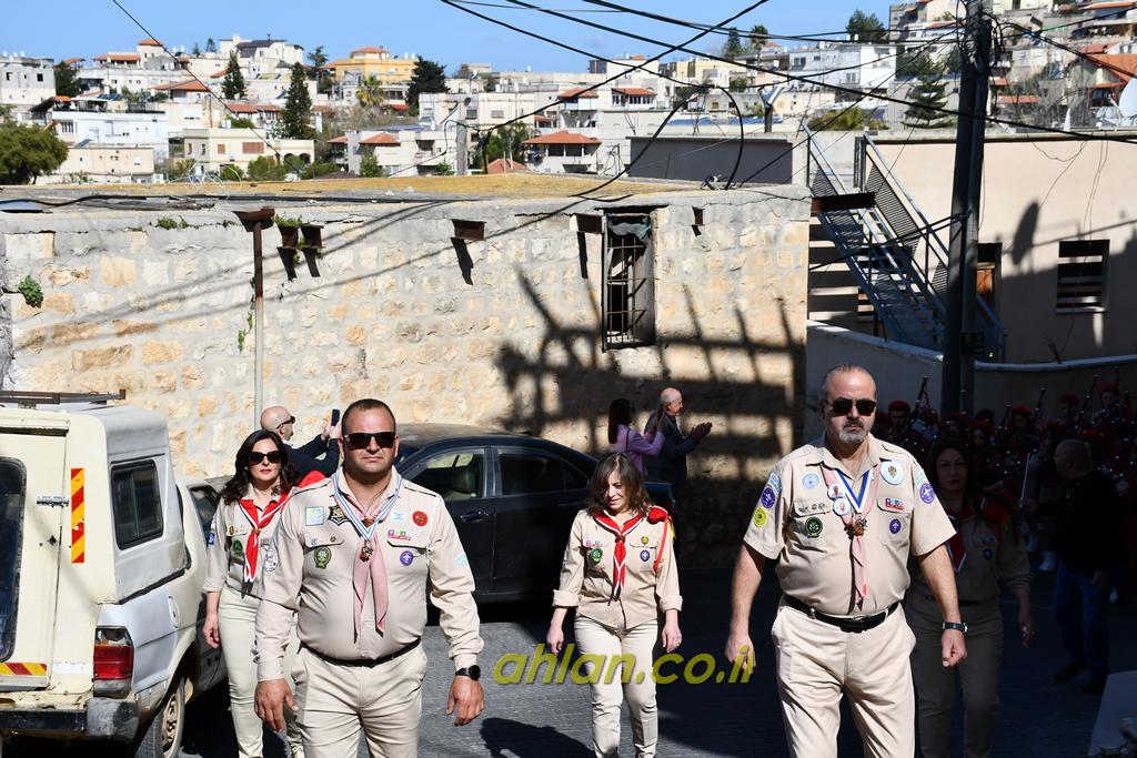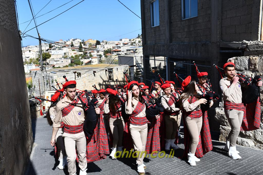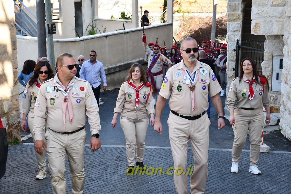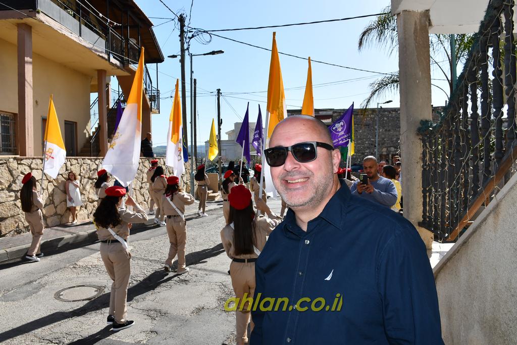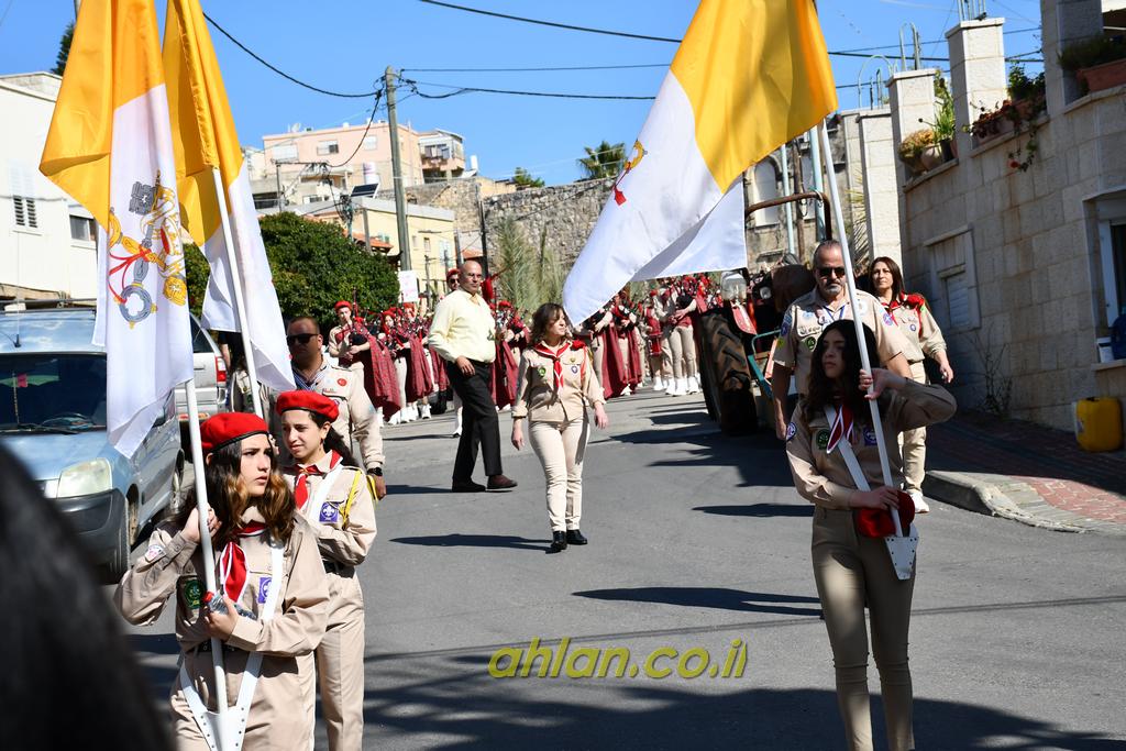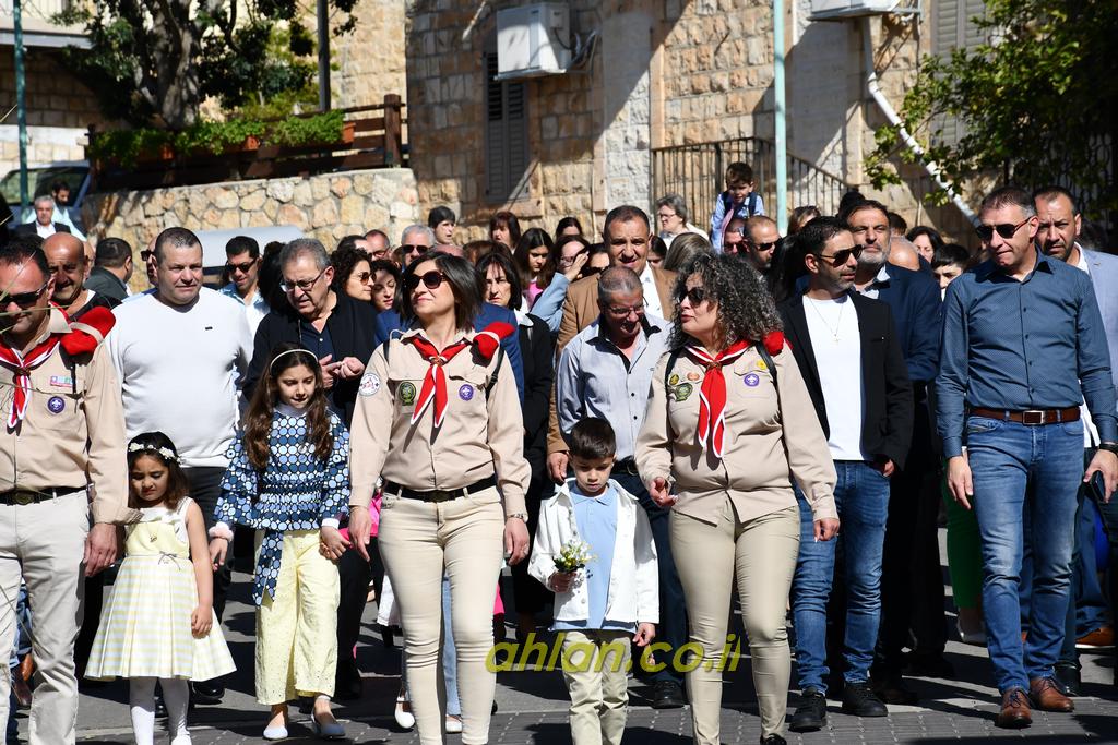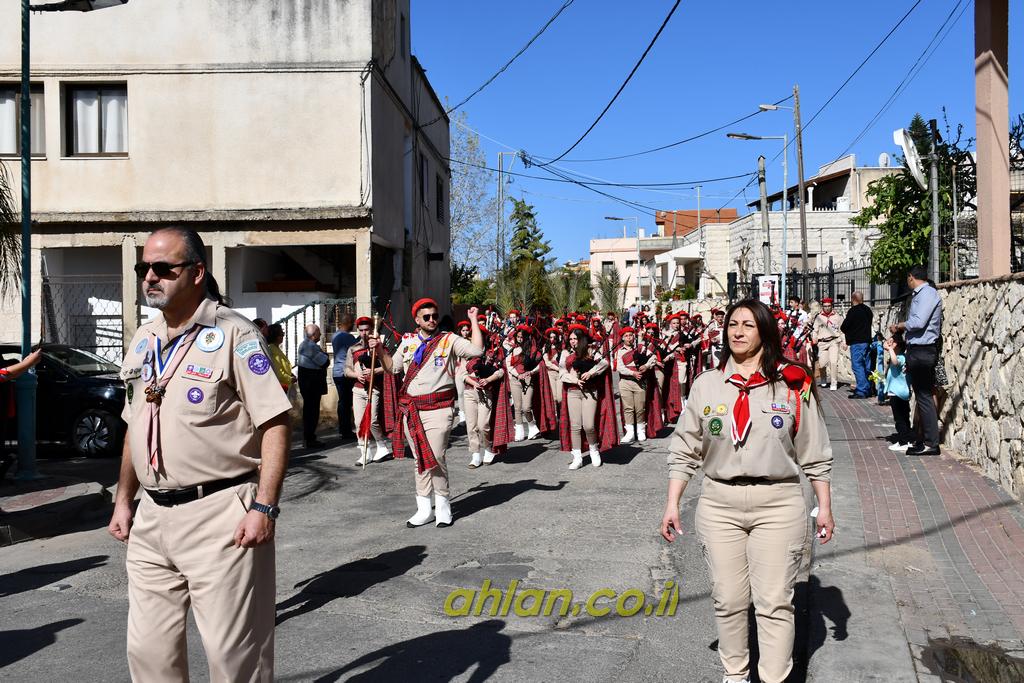 اهلا "هوشعنا، تبارك الآتي باسمِ الرّبّ" هوشعنا في العُلى (متى ٢١: ١ -١٧). اليوم أحد الشعانين، أحد المجد مع يسوع المسيح، المجد الذي سيُدخلنا في أسبوع الآلام لنرافق يسوع حتى القيامة. لماذا نسمي يوم أحد الشعانين بيوم المجد؟ بعد أن أقام يسوع صديقه لعازر من بين الأموات (يوحنا ١١: ١-٤٣)، قرّر أن يدخل للمرة الأخيرة إلى أورشليم ليحتفل بعيد الفصح مع تلاميذِهِ، فاستقبله الشعب بفرح كبير وبعلامات النصر واعتبره هو الملك. استقبله الشعب بأغصان النخل التي تُعبّر عن استقبال الملك المنتصر، وبأغصان الزيتون التي تُعبّر عن السلام الذي يحمله الشعب في قلبه. استقبله الكبار والصغار، وبخاصة الأطفال والرضّع وهم يهتفون: هُوشَعْنا! تَبارَكَ الآتي، الْمَلِكُ، باسمِ الرَّبّ! هكذا الحال في قرية معليا وبمشاركة واسعه لا مثيل لها انطلقت المسيرة الكشفية مع حملة سعف النخيل من مدخل القرية ووصولا الى باحة كنيسة السيدة هناك اقيم القداس الالهي احتفل به قدس الاب نديم شقور كاهن رعية معليا وشارك معه النائب العام قدس الاب الياس عبد وجوقة الكنيسة وعدد كبير من المصلين داخل وخارج الكنيسة ومن ثم انطلقت دورة الشعانين خارج الكنيسة وعل صوت المرنمين من الداحل وصوت العزف من سرية كشافة معليا التي شارك امتعت الجميع بالالحان العذبة ومع صوت جرس الكنيسة احتفلت رعية معليا في احد الشعانين نشيد بمشاركة مدير عام حركة الكشافة العربية اشرف شحادة