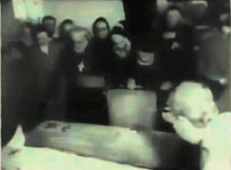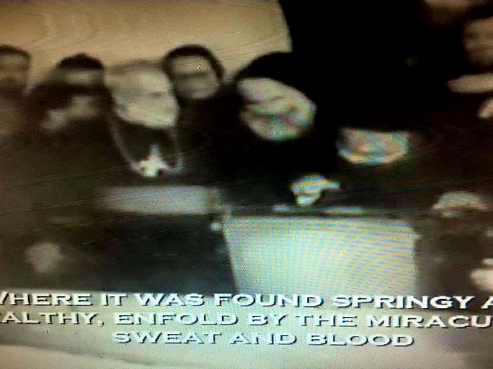 إرتجف الأب الرّئيس ومن معه أمام التابوت حين شاهدوا القبر ناشفًا وقسمًا من التابوت مهترئًا، عائمًا بالعرق الدمويّ، يَتقطَّر منه ويتصبّب على الحضيض، ثم يجري حتّى الجدار الغربي داخل المعبد..منظرٌ مذهلٌ، كأنَّ الأب شربل في اليوم الأوَّل لدفنه في جثمانه السَّليم ! وبعد أن صلَّوْا مسح الأب الرَّئيس وجه الحبيس ويدَيْه بمنصفة (قطعة بيضاء من اللباس الكهنوتي) فإنطبع رسم الوجه واليدين عليها.. وبعد ذلك أعاد زائرو القبر كلّ شيء إلى ما كان عليه، وعادوا في دجى اللَّيل من حيث أتوا، ولم يغمض لهم جفن في تلك الليلة..