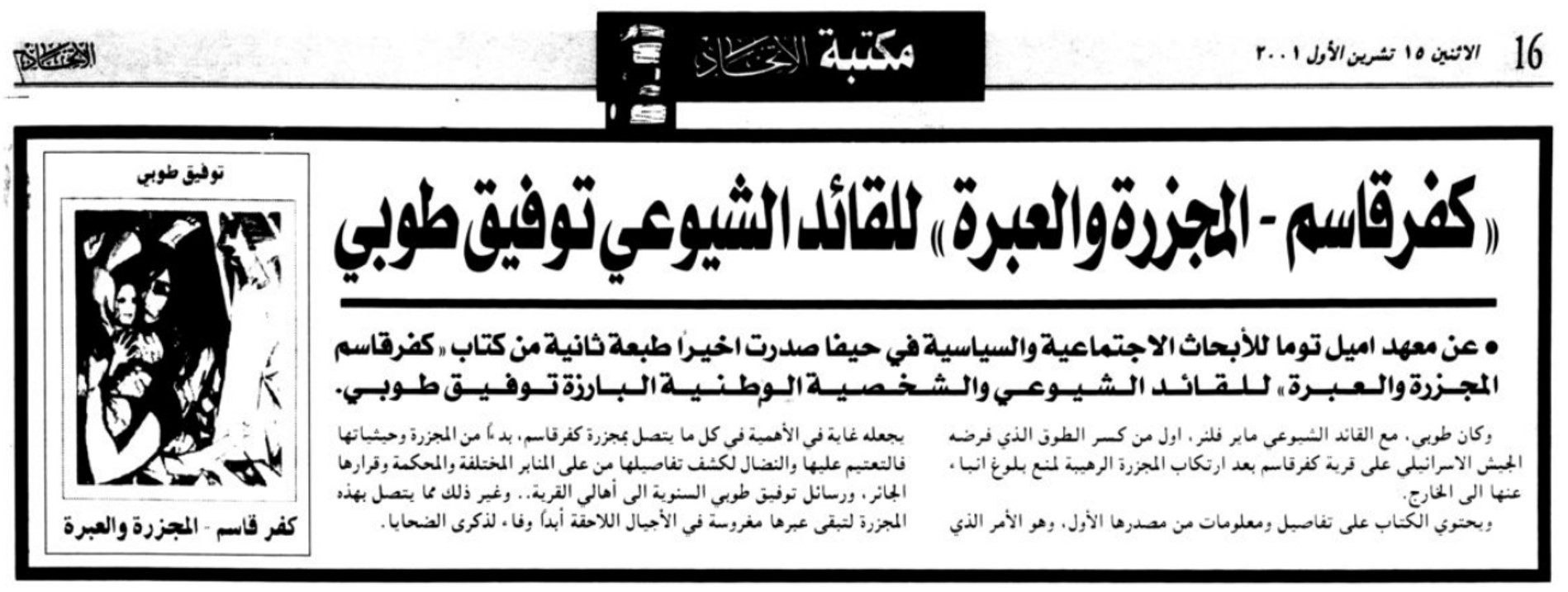 بالإضافة لتمثيل العرب والمظلومين في أروقة الكنيست، قام وزميله ماير فلنر باختراق جميع الحواجز والوصل الى قرية كفر قاسم وفضح المذبحة التي ارتكبها الجيش وحرس الحدود، حيث قامت الحكومة بمنع نشرها.