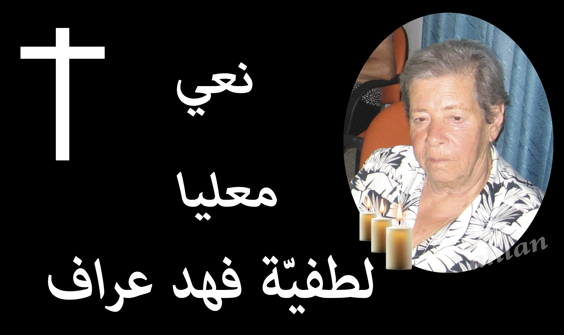 معليا - نعي الفاضلة لطفية فهد عراف