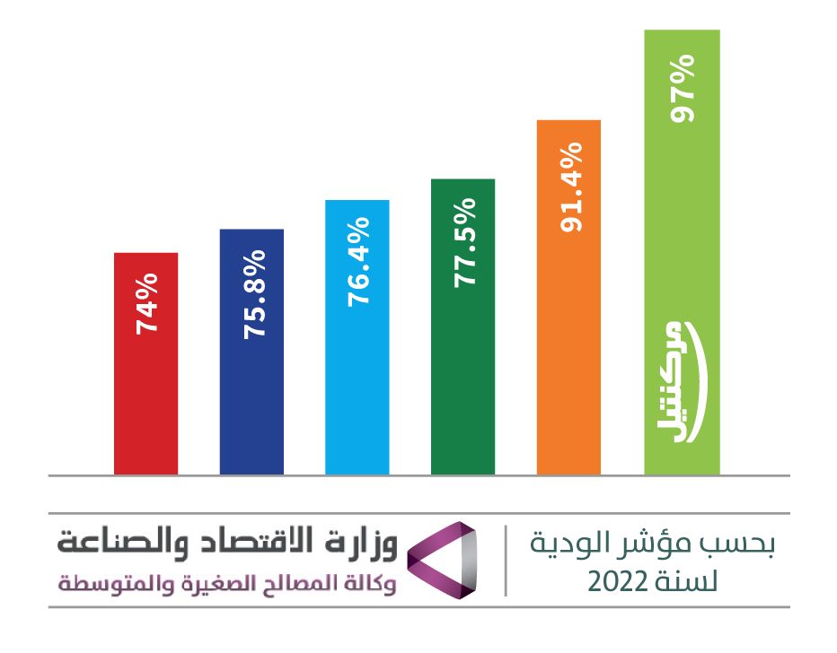 وكانت وكالة المصالح التجارية الصغيرة والمتوسطة التابعة لوزارة الاقتصاد قد نشرت مؤشر ودية البنوك، للمصالح الصغيرة والمتوسطة للعام 2022، والذي يظهر أن بنك مركنتيل يحتل المرتبة الأولى بين البنوك، ويتقدم بفارق كبير أيضا في غالبية المعايير التي يتم فحصها وفقا لهذا المؤشر الحكومي الرسمي. وقد منح المؤشر الرسمي علامة 97 من 100 لبنك مركنتيل، وهذا ما يتوج بنك مركنتيل البنك الأكثر سهولة في التعامل مع المصالح التجارية الصغيرة والمتوسطة.