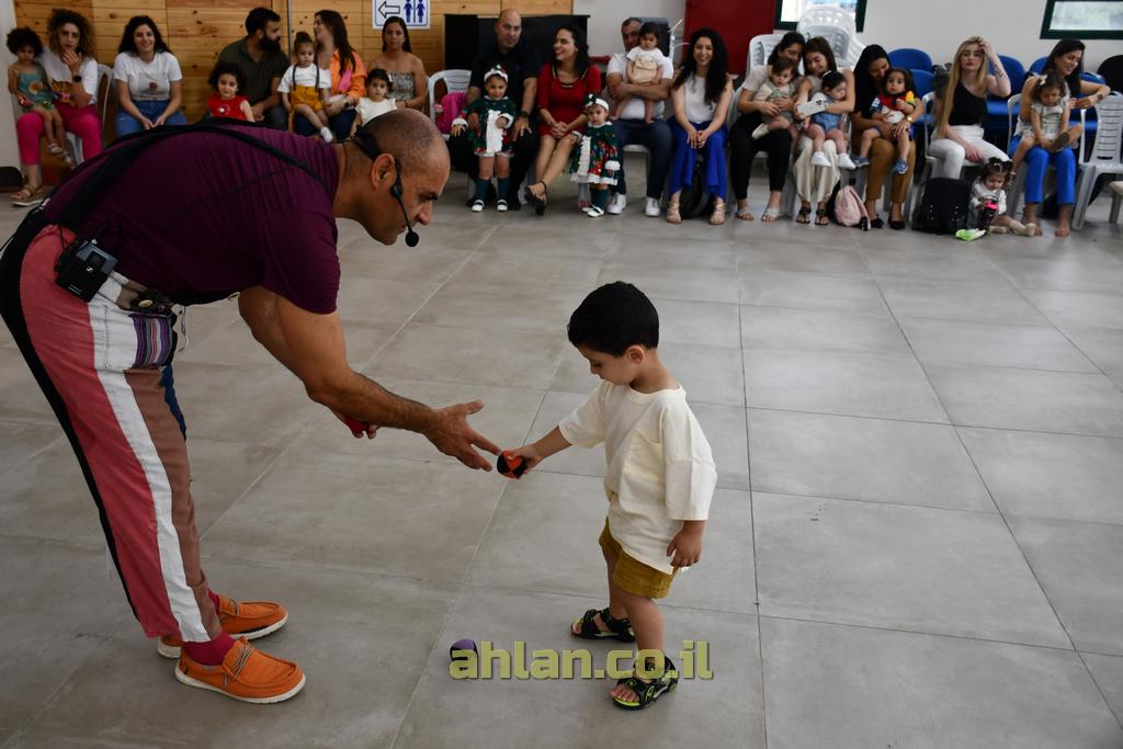اهلا بمناسبة يوم الطفل العالمي وتزامنا مع اقتراب نهاية السنة الدراسية فقد ارتأت حضانة الشمس بادارتها المربية عفاف شاهين وطاقم المربيات والمساعدات والعاملات وبالتنسيق مع الاهل الاعزاء ان يقام يوم ترفيهي احتفالي بمشاركة اطفال الحضانة مع والديهم احتفلت حضانه الشمس التابعه للمركز الجماهيري باداره السيده عفاف شاهين وبمساعده طاقم المربيات احتفالا مع فنان الاطفال موفق علي شارك فيه اهالي واطفال ورقصوا وغنوا لرسم الضحك والفرحه على شفاه كل طفل هذا وتميز اللقاء في قاعة المركز الجماهيري في قرية ترشيحا بحضور مميز ومشاركة واسعة من الاطفال وذويهم خلال ساعة من الرقص والترفيه واللعب على صوت الموسيقى والاغاني التي ادخلت في نفوس الحاضرين رونقا خاصا .