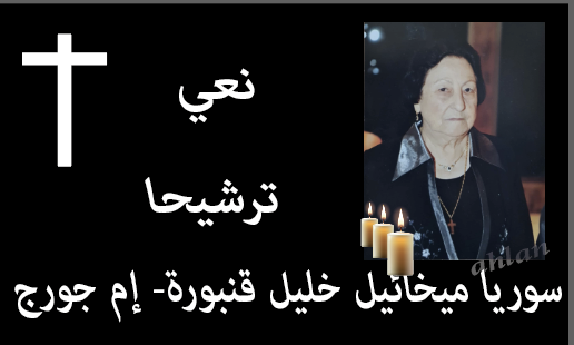 ترشيحا : وفاة الفاضلة سوريا ميخائيل خليل قنبورة- إم جورج