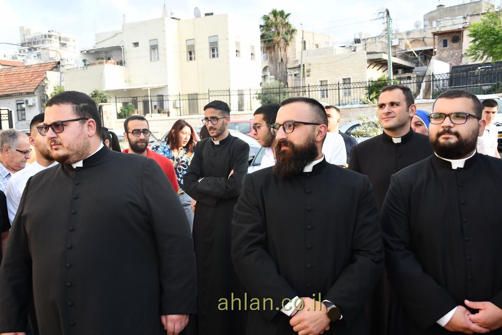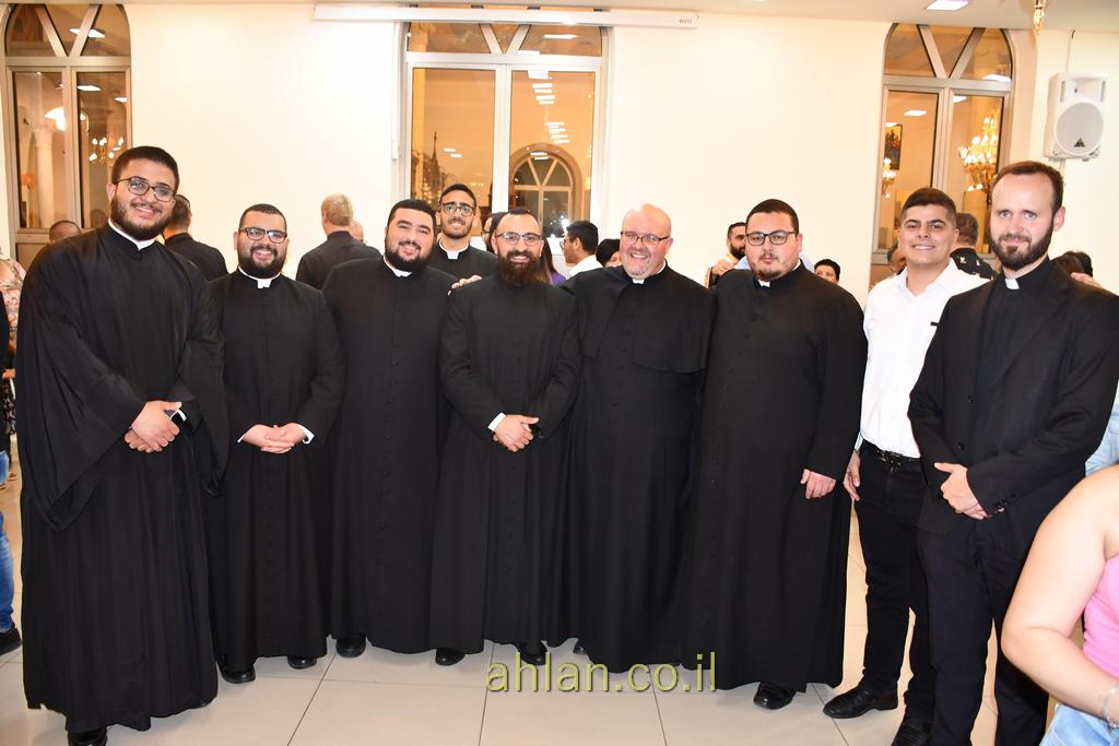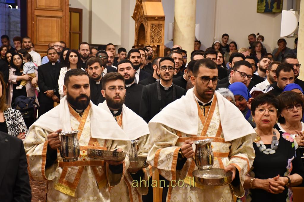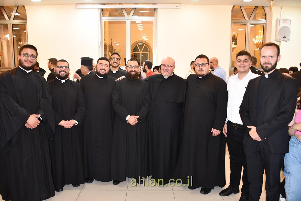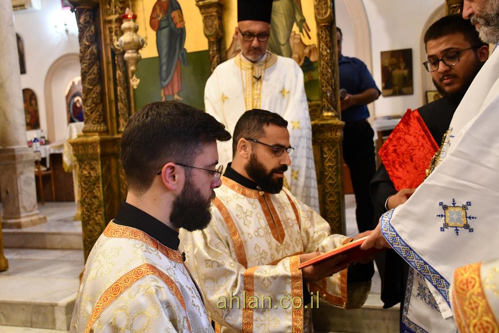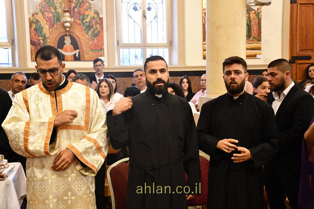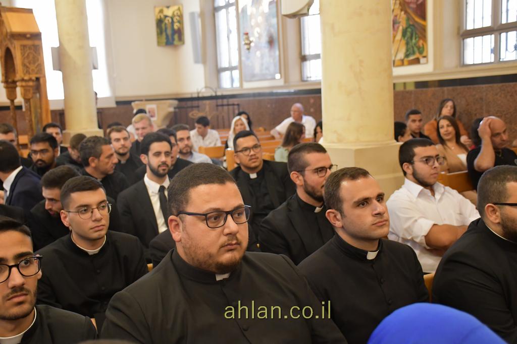 اهلا حلول الروح القدس على التلاميذ في علية صهيون وخميس الجسد الالهي به تم وضع تاسيس الكهنوت ومن على هيكل كاتدرائية مار الياس للروم الملكيين الكاثوليك في مدينة حيفا رحب سيادة المطران يوسف متى كلي الوقار رئيس اساقفة عكا وحيفا والناصرة وسائر الجليل بثلاث من خيرة الشباب في الابرشية العكاوية بعد انهائهم مرحلة التعليم والدراسة وصولا الى هذا اليوم المنشود ومن ثم رحب بذويهم واهلهم والمرافقين وجميع الحضور الكرام الذين وصلوا من حيفا والقرى والمدن المجاورة ليشاركوا جميعا هذا الحدث الاحتفالي حيث تم استقبال سيادتة والشماسين الثلاثة مع الكهنة ولفيف من كهنة الابرشية وكهنة الاكليريكيين حيث دروسوا مع سرية الكشافة الكاثوليكية في مدينة حيفا ومن ثم شرع الخورص التابع للكاتدرائية باعذب الالحان والتراتيل ومن ثم كانت فقرة قص الشعر وقراءة فقرات من الرسائل اعلانا عن ابتداء الرسامة الشماسية الرسائلية للشباب أدهم أبوزهيا ٫ نضال بشارة ويوسف حداد التي منحها سيادته يوم الاحد الحادي والعشرين من شهر حزيران لعام ٢٠٢٣ .