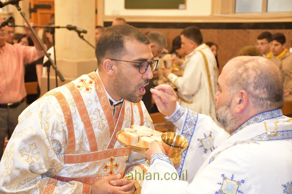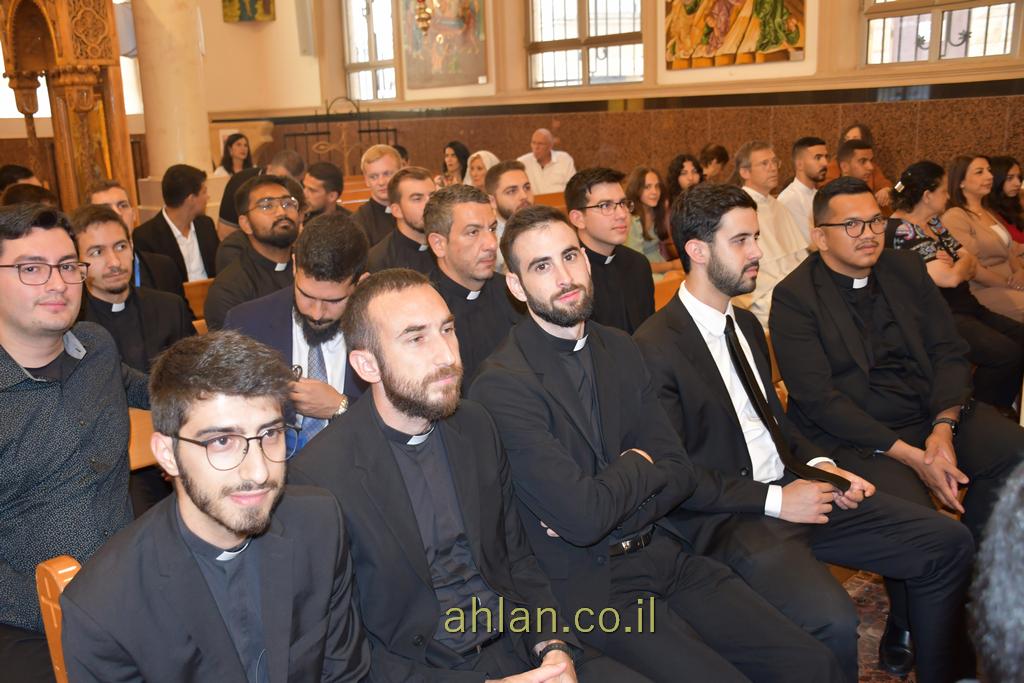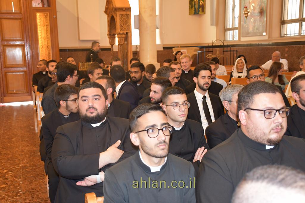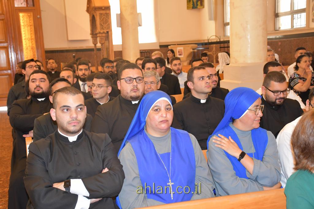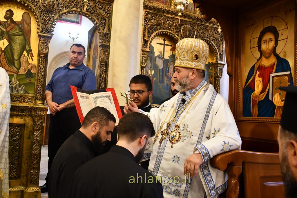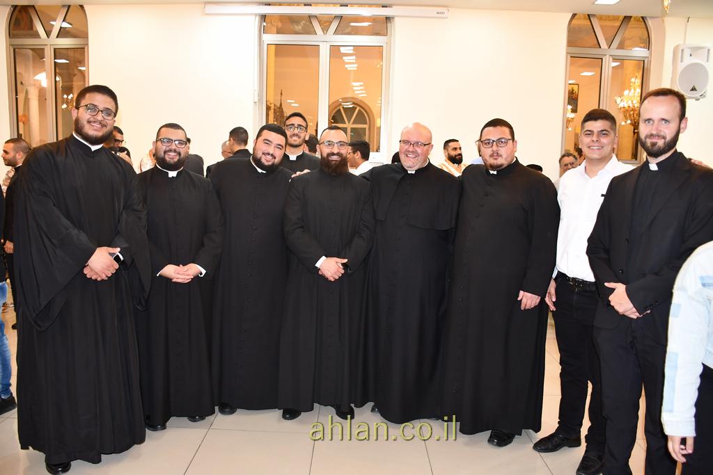 اهلا حلول الروح القدس على التلاميذ في علية صهيون وخميس الجسد الالهي به تم وضع تاسيس الكهنوت ومن على هيكل كاتدرائية مار الياس للروم الملكيين الكاثوليك في مدينة حيفا رحب سيادة المطران يوسف متى كلي الوقار رئيس اساقفة عكا وحيفا والناصرة وسائر الجليل بثلاث من خيرة الشباب في الابرشية العكاوية بعد انهائهم مرحلة التعليم والدراسة وصولا الى هذا اليوم المنشود ومن ثم رحب بذويهم واهلهم والمرافقين وجميع الحضور الكرام الذين وصلوا من حيفا والقرى والمدن المجاورة ليشاركوا جميعا هذا الحدث الاحتفالي حيث تم استقبال سيادتة والشماسين الثلاثة مع الكهنة ولفيف من كهنة الابرشية وكهنة الاكليريكيين حيث دروسوا مع سرية الكشافة الكاثوليكية في مدينة حيفا ومن ثم شرع الخورص التابع للكاتدرائية باعذب الالحان والتراتيل ومن ثم كانت فقرة قص الشعر وقراءة فقرات من الرسائل اعلانا عن ابتداء الرسامة الشماسية الرسائلية للشباب أدهم أبوزهيا ٫ نضال بشارة ويوسف حداد التي منحها سيادته يوم الاحد الحادي والعشرين من شهر حزيران لعام ٢٠٢٣ .