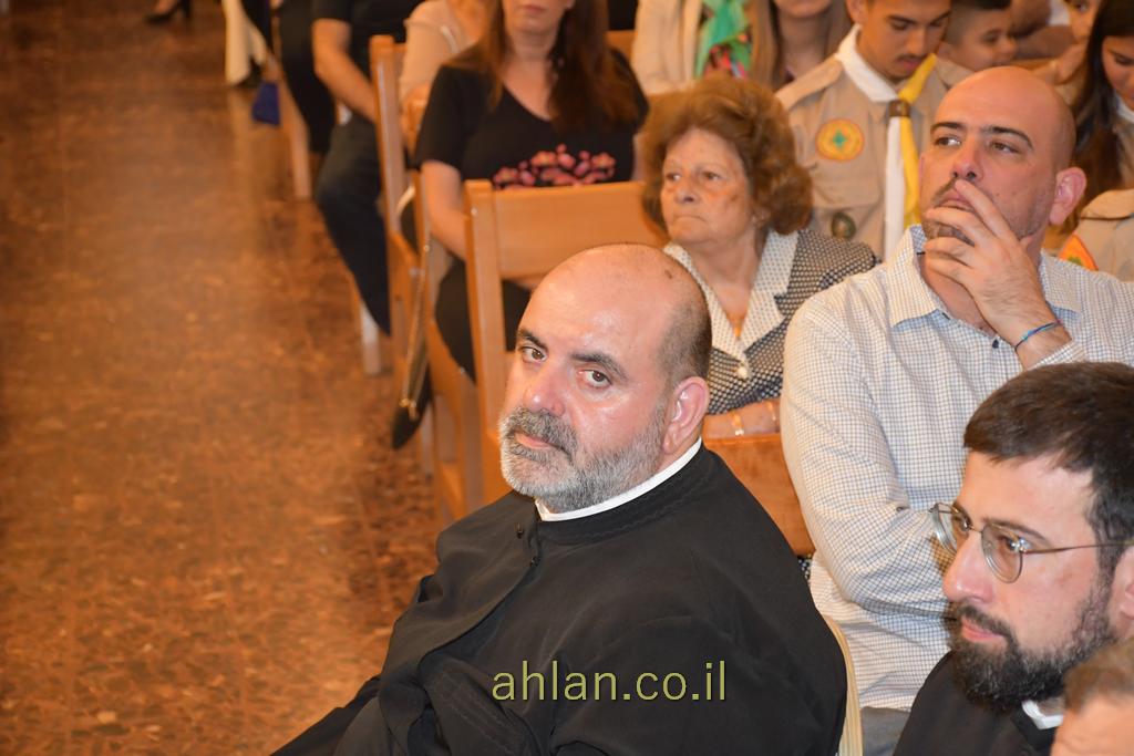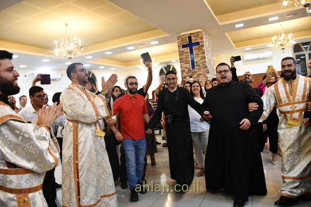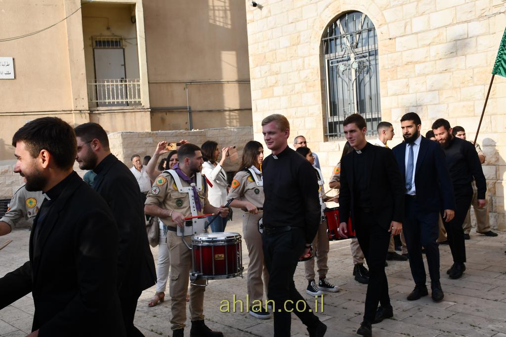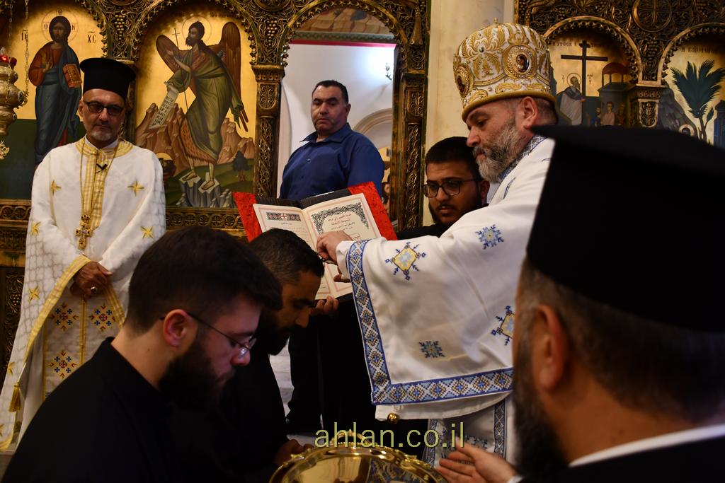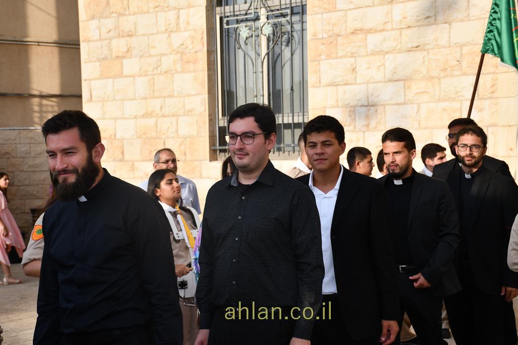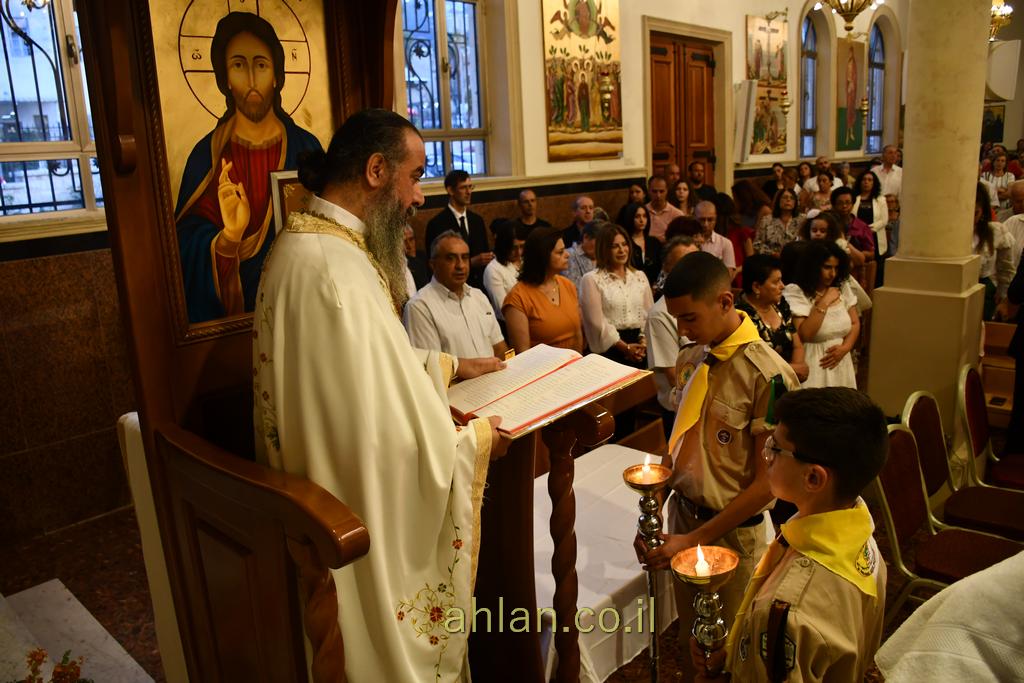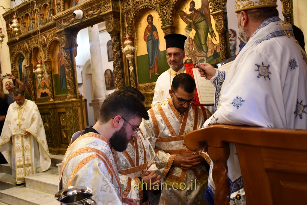 اهلا حلول الروح القدس على التلاميذ في علية صهيون وخميس الجسد الالهي به تم وضع تاسيس الكهنوت ومن على هيكل كاتدرائية مار الياس للروم الملكيين الكاثوليك في مدينة حيفا رحب سيادة المطران يوسف متى كلي الوقار رئيس اساقفة عكا وحيفا والناصرة وسائر الجليل بثلاث من خيرة الشباب في الابرشية العكاوية بعد انهائهم مرحلة التعليم والدراسة وصولا الى هذا اليوم المنشود ومن ثم رحب بذويهم واهلهم والمرافقين وجميع الحضور الكرام الذين وصلوا من حيفا والقرى والمدن المجاورة ليشاركوا جميعا هذا الحدث الاحتفالي حيث تم استقبال سيادتة والشماسين الثلاثة مع الكهنة ولفيف من كهنة الابرشية وكهنة الاكليريكيين حيث دروسوا مع سرية الكشافة الكاثوليكية في مدينة حيفا ومن ثم شرع الخورص التابع للكاتدرائية باعذب الالحان والتراتيل ومن ثم كانت فقرة قص الشعر وقراءة فقرات من الرسائل اعلانا عن ابتداء الرسامة الشماسية الرسائلية للشباب أدهم أبوزهيا ٫ نضال بشارة ويوسف حداد التي منحها سيادته يوم الاحد الحادي والعشرين من شهر حزيران لعام ٢٠٢٣ .