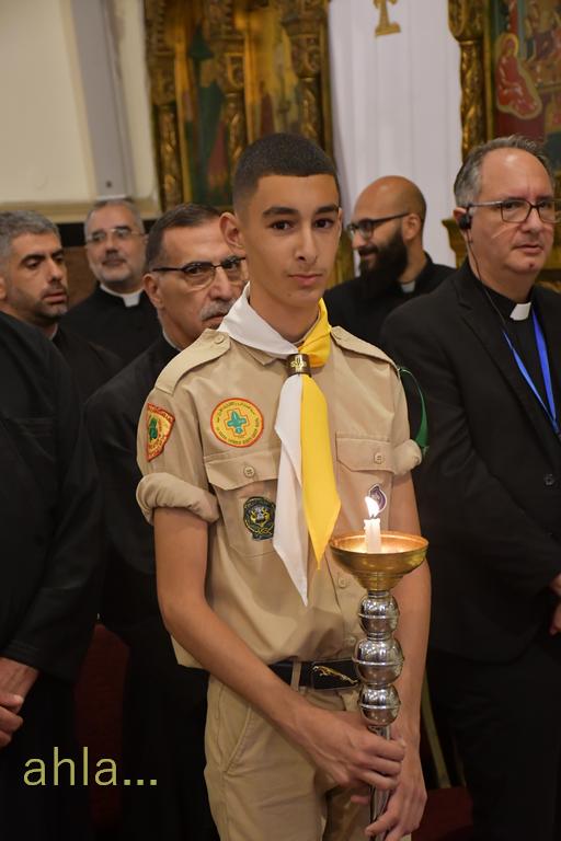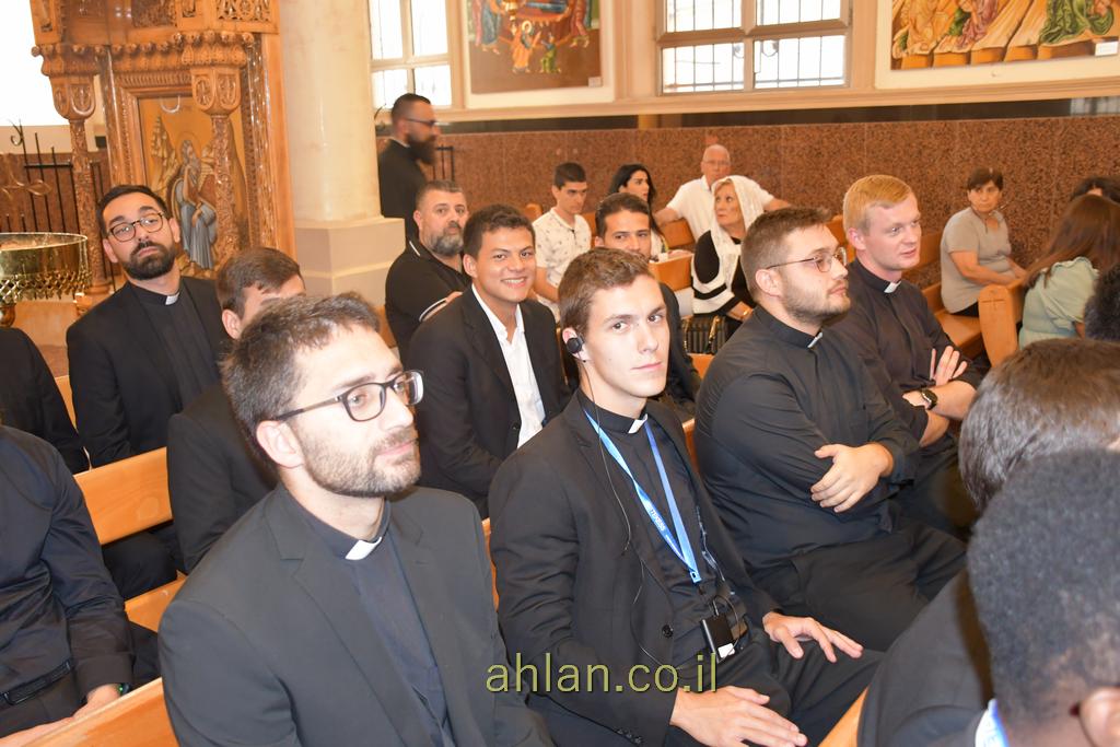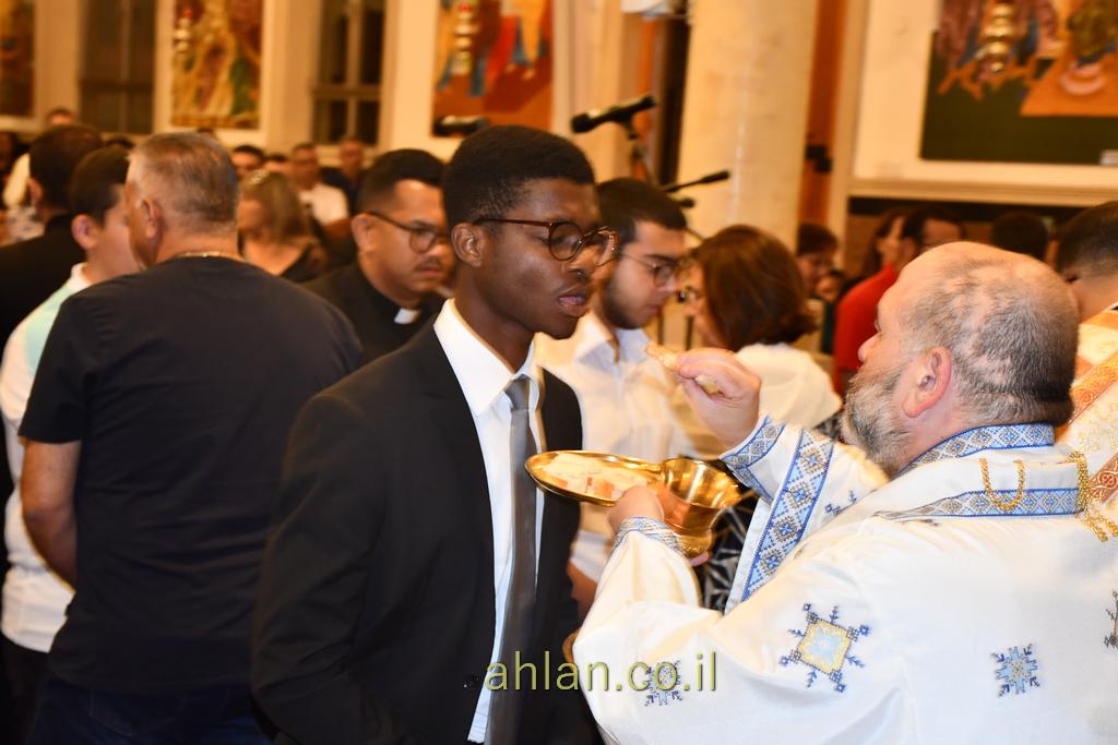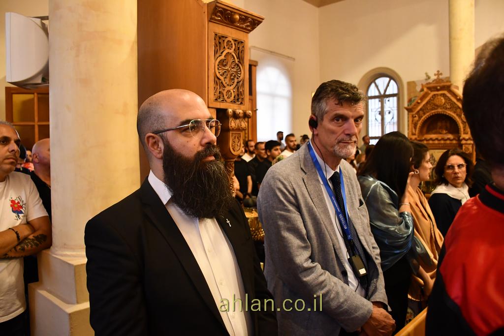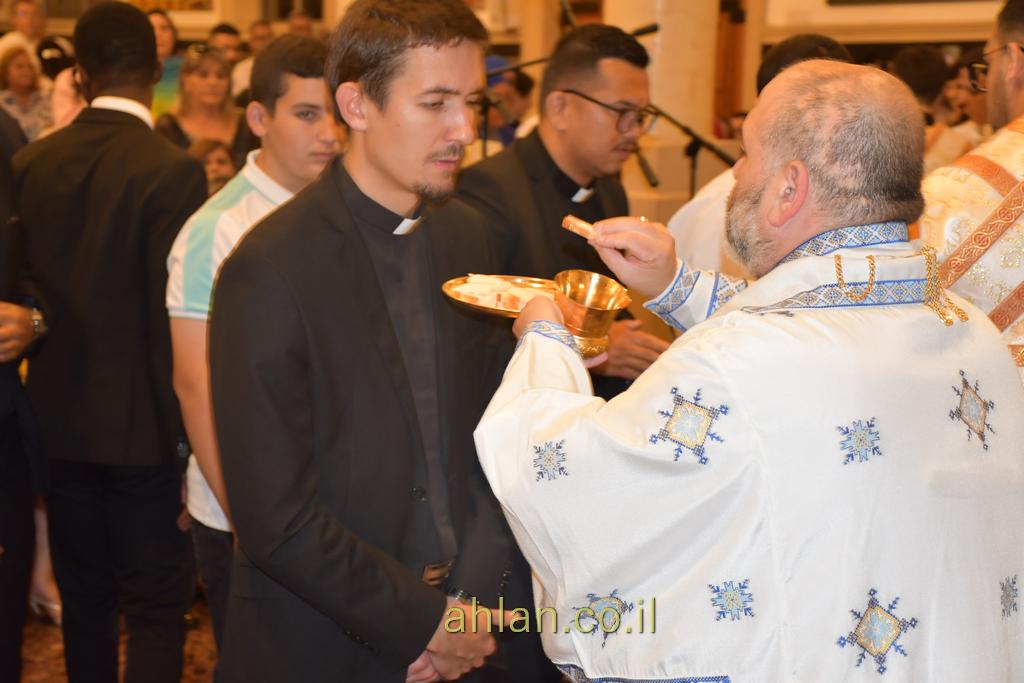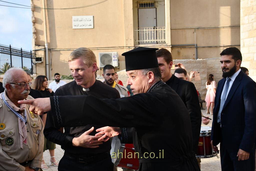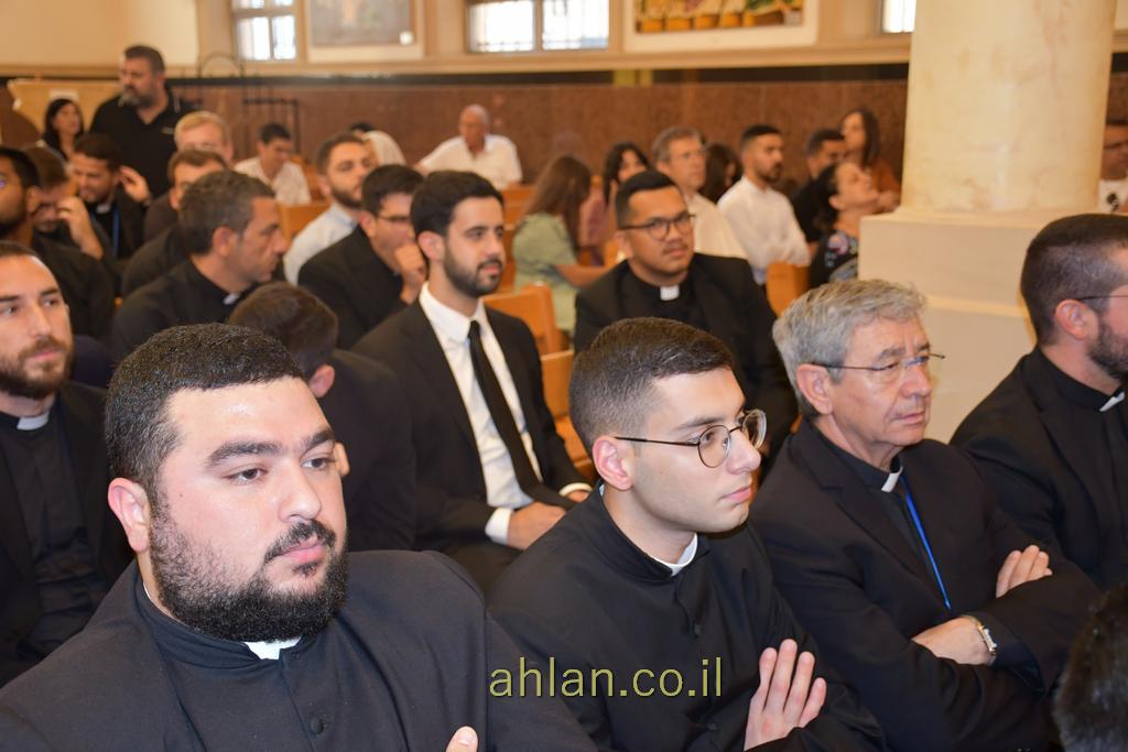 اهلا حلول الروح القدس على التلاميذ في علية صهيون وخميس الجسد الالهي به تم وضع تاسيس الكهنوت ومن على هيكل كاتدرائية مار الياس للروم الملكيين الكاثوليك في مدينة حيفا رحب سيادة المطران يوسف متى كلي الوقار رئيس اساقفة عكا وحيفا والناصرة وسائر الجليل بثلاث من خيرة الشباب في الابرشية العكاوية بعد انهائهم مرحلة التعليم والدراسة وصولا الى هذا اليوم المنشود ومن ثم رحب بذويهم واهلهم والمرافقين وجميع الحضور الكرام الذين وصلوا من حيفا والقرى والمدن المجاورة ليشاركوا جميعا هذا الحدث الاحتفالي حيث تم استقبال سيادتة والشماسين الثلاثة مع الكهنة ولفيف من كهنة الابرشية وكهنة الاكليريكيين حيث دروسوا مع سرية الكشافة الكاثوليكية في مدينة حيفا ومن ثم شرع الخورص التابع للكاتدرائية باعذب الالحان والتراتيل ومن ثم كانت فقرة قص الشعر وقراءة فقرات من الرسائل اعلانا عن ابتداء الرسامة الشماسية الرسائلية للشباب أدهم أبوزهيا ٫ نضال بشارة ويوسف حداد التي منحها سيادته يوم الاحد الحادي والعشرين من شهر حزيران لعام ٢٠٢٣ .