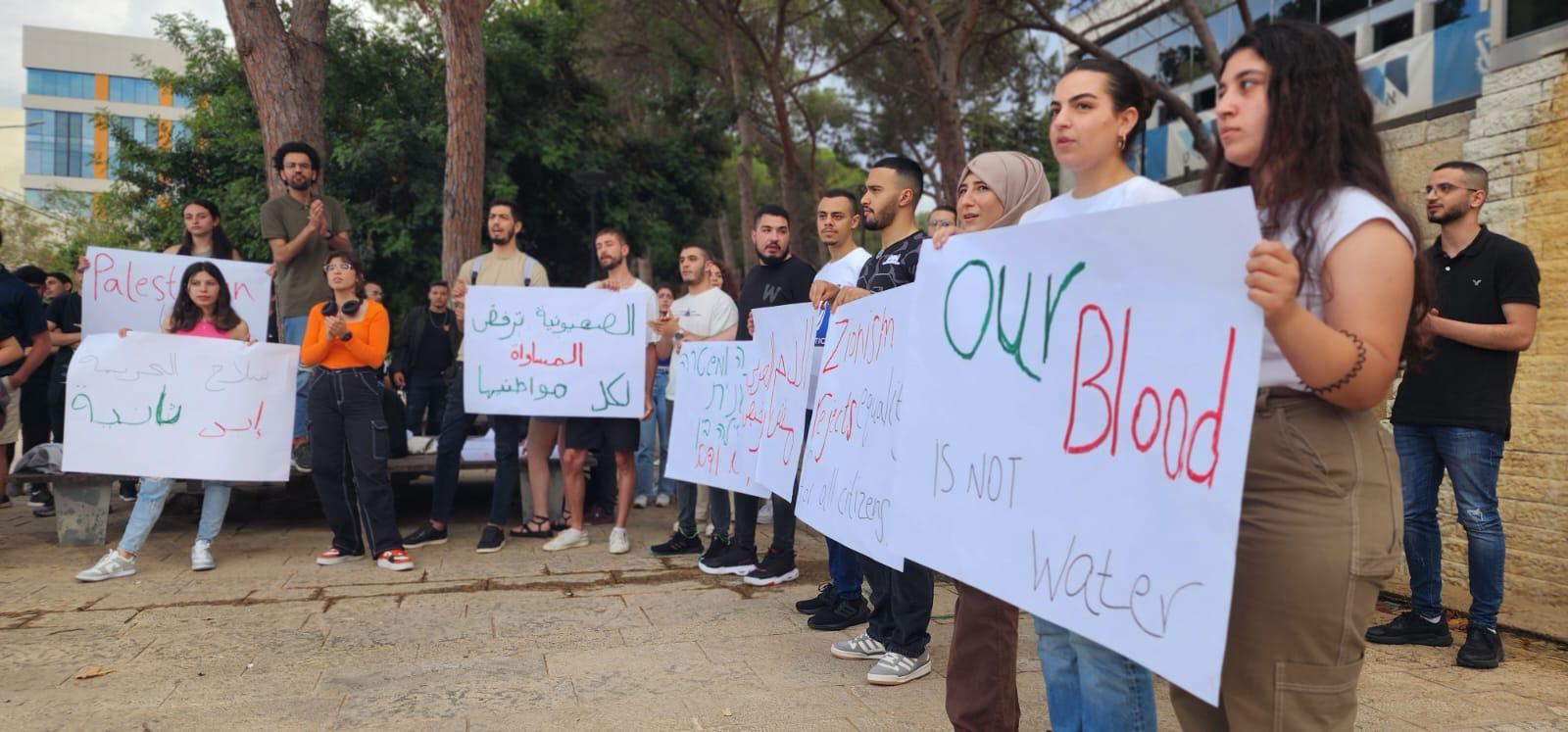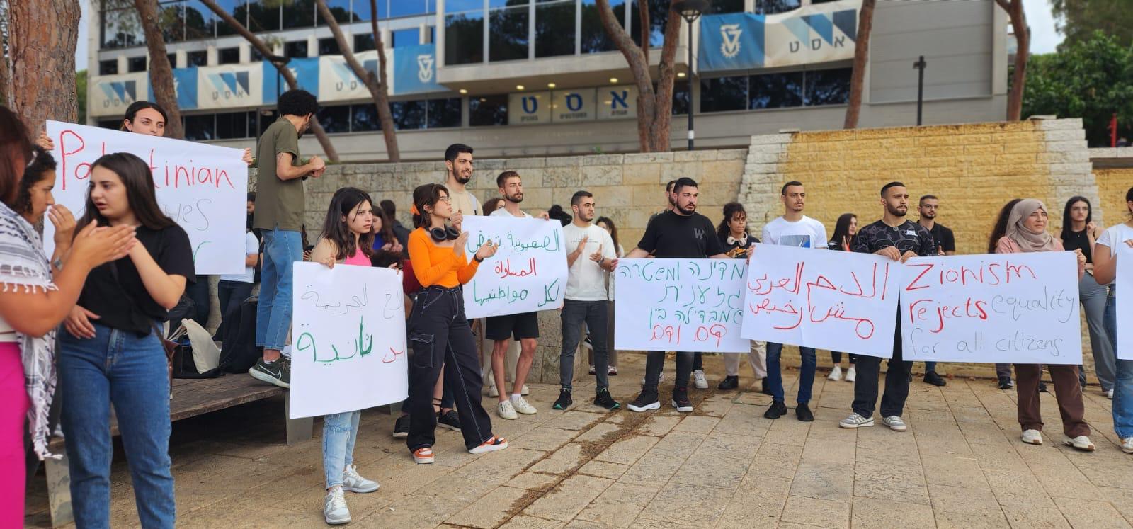 اهلا- يوسف طه تظاهر العشرات من طلاب معهد التخنيون، مساء اليوم، الثلاثاء، في صرخة طلابية موحدة ضد هدر الدمّ العربيّ والجرائم اليومية التي تقض مضاجع مجتمعنا العربي بشكل يومي، ووجه الطلاب أصبع الاتهام للشرطة والمؤسسة الإسرائيلية التي تتقاعس وبل وتتواطؤ مع الجريمة والمجرمين في المجتمع العربيّ بتفريقهم وتمييزهم بين الدم العربي واليهودي. من الجدير بالذكر أن هذه التظاهرة تأتي بعد نضال طلابي لانتزاع الحق في التظاهر والتعبير عن رأيهم داخل الحرم الجامعي في هذه القضية الهامة التي تقلقنا جميعًا والتي يعاني منها مجتمعنا العربيّ في الداخل، وهو ما نجح به طلابنا وكان تفاعل واسع بين صفوف الطلاب ومشاركة كبيرة منهم. وقال الطالب شادي أبو صالح، عضو الدائرة الطلابيّة في التجمّع والمُبادر لهذه الوقفة: "نرى أهمية كبيرة أن نكون كطلاب جزء من هذا التحرك الشعبي والمجتمعي ضد الجريمة والمجرمين وهدر دمنا المستمر بشكل يومي دون أي حسيب ولا رقيب، ويقع على عاتقنا كاكاديميين وطلاب وحركة طلابية مسؤولية كبيرة في التلاحم مع قضايا شعبنا ونضالاته الدائمة". وأنهى أبو صالح: "نحيي هذا الحضور الكبير والتفاعل الطلابي الواسع من قبل زملائنا الطلاب رغم أن الدعوة كانت خلال يوم واحدة، إذ حصلنا على الموافقة يوم أمس فقط، ونجحنا أن نحصل عليها لتكون داخل الحرم الجامعي من أجل التعبير عن موقفنا في قضية مصيرية يعيشها شعبنا، وما قمنا به هو واجب علينا وسنستمر بالعمل في هذا المضمار ولنكون مع شعبنا ونضالاته كما دومًا ".