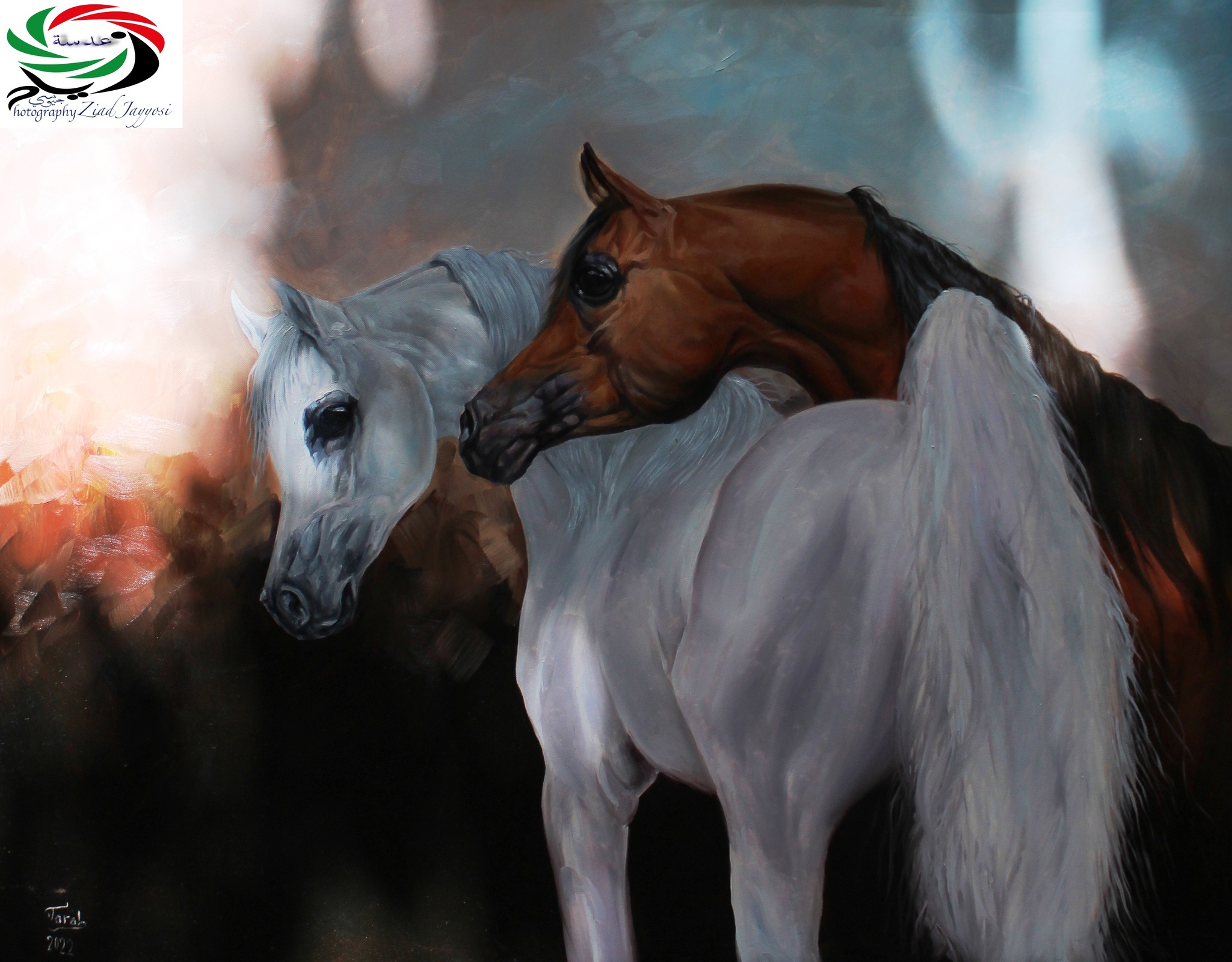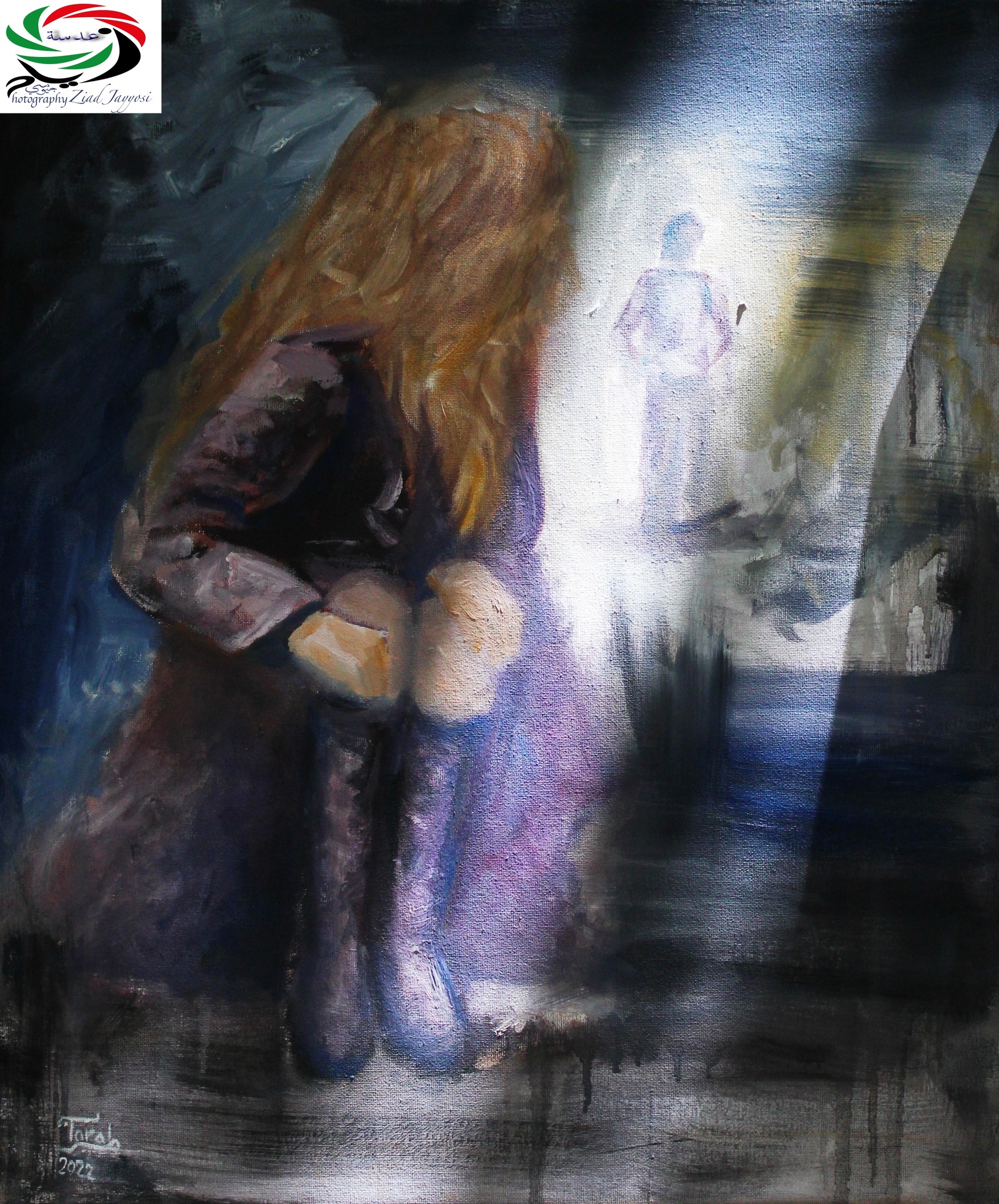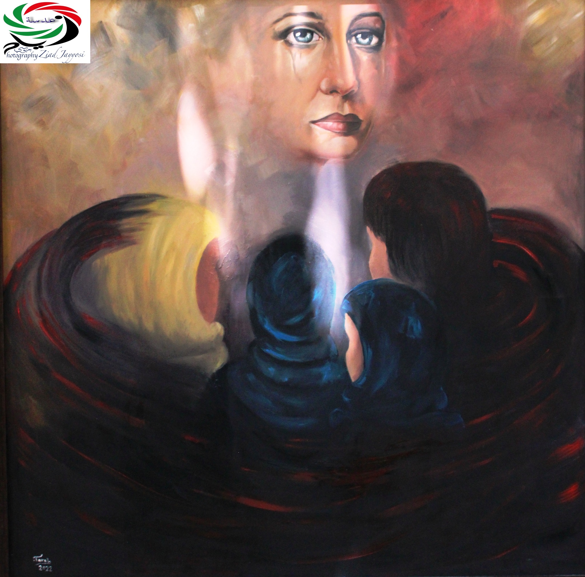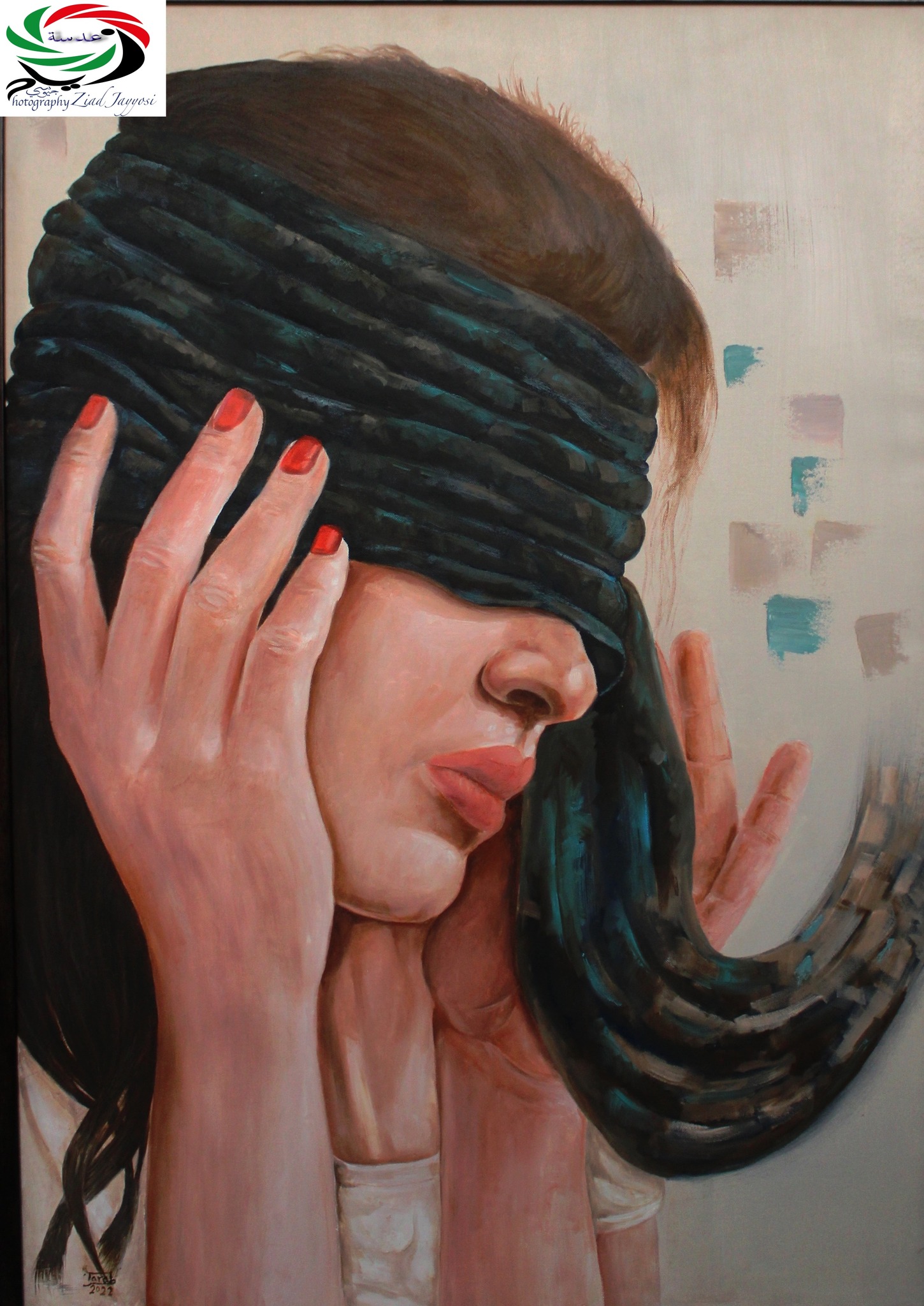 اهلا القليل من المعارض التشكيلية التي حضرتها في حياتي كانت تروي حكاية، وهذه المعارض كانت من أجمل المعارض التي شاهدتها عبر ما يزيد عن نصف قرن من الاعوام التي مرت من عمري، وحين وجهت لي الفنانة طرب أبو زهرة الدعوة لحضور معرضها الشخصي "حكاية صمت" والذي كان في بيت عرار في مدينة اربد يوم 15 أيار للعام الحالي 2023م وبتنظيم من ملتقى ألق الثقافي ورئيسته السيدة حمدة الهربيد وبالتعاون مع مديرية ثقافة اربد وحضور رئيس قسم الهيئات الثقافية الأستاذ سامي الدبيس لافتتاح المعرض، كنت أشد الرحال لقضاء يوم في رحاب الفن التشكيلي وذاكرة المكان في بيت عرار، وخلال الطريق كنت اسائل نفسي: ترى ما هي حكاية الصمت التي سترويها ريشة الفنانة؟ وخاصة أنها المرة الأولى التي سأحضر لها معرض شخصي. من لحظة وصولي وبعد احتساء القهوة بدعوة وتكريم من مديرة بيت عرار السيدة فاطمة الصباحين كنت أجول لوحات المعرض والتي بلغت ثلاث وعشرين لوحة وأستمع منها همساتها وأناتها وهي تروي الحكاية، حكاية المرأة المعنفة والتي تحلم بالسكينة والطمأنينة في بيتها، بعيدا عن العنف والقمع الذي تعانيه، ومن هنا نجد أن الفنانة في لوحاتها تناولت قضية اجتماعية مهمة، من حيث الواقع الاجتماعي وتنمر الذكورية على المرأة، ومن الجوانب النفسية التي مثلتها شخصية المرأة في لوحاتها، معتمدة في روايتها التكوين اللوني والريشة والأسلوب، وكان لكل لوحة اسم يعبر عن تسلسل حكايات الرواية، حكاية الصمت التي روتها بصمت من خلال لوحات تتحدث ولا تصمت. يلاحظ أن المرأة كانت هي الموضوع الظاهر في ثلاث عشرة لوحة من اللوحات، بينما الخيول التي رمزت بها للمرأة كانت في ستة لوحات، وكانت هناك لوحة واحدة ترمز لبيت المرأة المعنفة ولوحة واحدة تشير لواقع المجتمع ولوحة رمزية تعبيرية تشير للعلاقة بين الطرفين ولوحة واحدة تشير للواقع الذي تعيشه المرأة في بيتها رغم كل المعاناة، ومن خلال هذه اللوحات سنستمع لهمسات بعض اللوحات، مع المرور السريع على باقي اللوحات لتروي جميعها لنا حكاية الصمت التي كتبتها ورسمتها الفنانة التشكيلية طرب من خلال الريشة واللون. اللوحة الأولى: وقد أسمتها "أنا لا أعيش يومي، أنا أنجو منه فقط" وفيه صورت امرأة جميلة تضع أحمر الشفاه وطلاء الأظافر وتسدل شعرها الناعم على كتفيها، وترتدي رداءً أنيقاً يكشف عن ذراعيها ومساحة من أعلى الصدر، في رمزية إلى أن المعنفة ليست من تعيش ظروف اقتصادية أو اجتماعية متعبة فقط، بل ربما تكون سيدة تعلمت وتعيش بظروف اقتصادية واجتماعية جيدة، والمرأة في اللوحة تضع يديها على وجنتيها وملامح الحزن تظهر على وجهها من أسفل العينين حتى الذقن، فالعينان تغطيهما عصبة سوداء معتمة برمزية واضحة إلى الواقع الذي تحياه والظلم الذي تعيشه. ونرى أن طرف العصبة بدأ بالانفكاك وكأنه يتعرض لريح بدأت تعصف به، وهذه إشارة رمزية أن تحرر المرأة بدأ لتعود مكرمة كما يجب أن تكون وكما نص عليها الدين الحنيف، هذه الحقوق التي أضاعتها ظلامية المجتمع وعدم الوعي الذكوري أن المرأة هي النصف الآخر للذكر، وخلفية اللوحة وفضائها اعتمدت اللون الفاتح مع ضربات فرشاة بالأزرق والرصاصي الفاتح، ترمز من خلالها أن المنغصات والتعنيف والتنمر هو من يشوه حلم المرأة والواقع الذي تريده بطمأنينة واحترام وتقدير، مع الإشارة أن الفنانة كانت متمكنة برسم ملامح الوجه وتشريح الأصابع بدقة وإتقان تشير لموهبة وقدرة فنية جيدة. اللوحة الثانية: وحملت عنوان "فقدت بعضي وأنا أبحث عنه" وهذ العنوان يثير السؤال أين تبحث؟ وحين نتأمل اللوحة نرى الجواب وهو أنها تبحث عن بعضها في عالم الجمال وسحر الطبيعة، حيث نجد في اللوحة المرأة تقف على حافة جدول ماء يخترق غابة بشكل جانبي بدون أن يظهر وجهها، برداء أزرق مريح للنفس وشعر منسدل على الظهر بتسريحة بسيطة وجميلة، تنظر للجدول والأشجار بتأمل حالمة بأن تكون حياتها بهذا الجمال بعيدا عن التعنيف والتنمر، ومن خلال الاسقاط الضوئي نجد أن قلب اللوحة حيث تنظر المرأة
