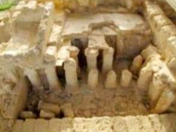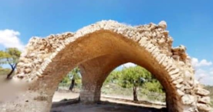 فوق العين توجد بقايا بناء دائري كان برجًا للحمام (كولومباريوم).