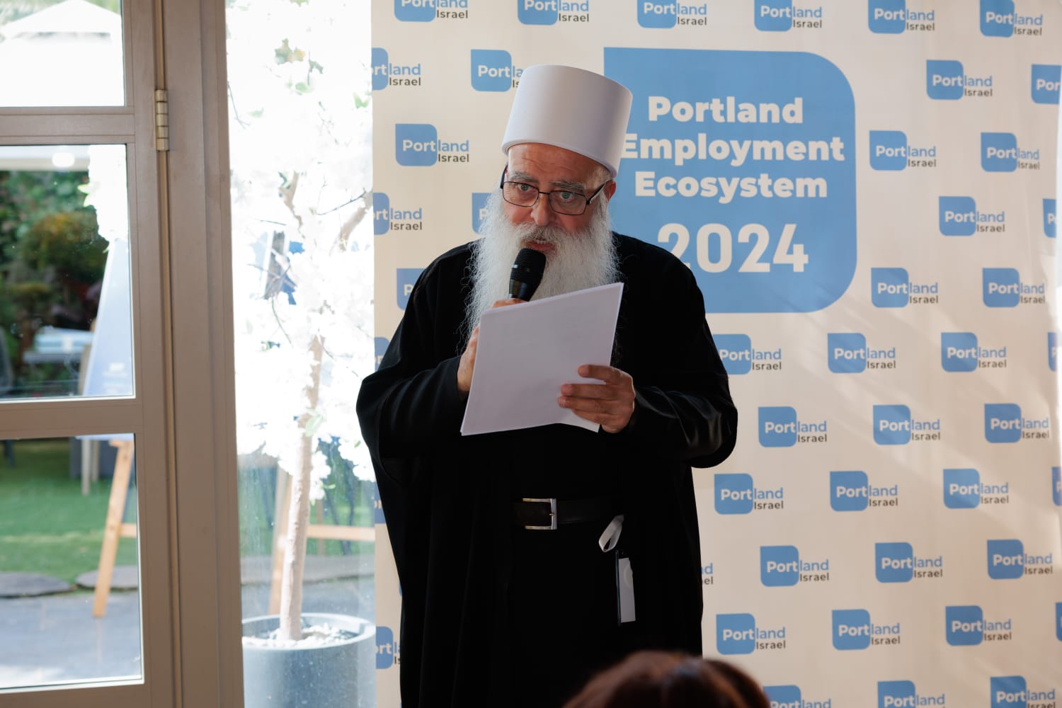 وشكر سماحة الشّيخ أعضاء مجلس إدارة بورتلاند إسرائيل رامي شفارتس، عينات مكموري، أيمن سيف ونسرين حاج يحيى، وأثنى على عمل مديرة مشروع لوتس السّيّدة ميساء حلبي-الشّيخ من عسفيا، المهندس يوسف حمّود من بيت جن، مدير مشروع لتأهيل وتشغيل الشّباب.