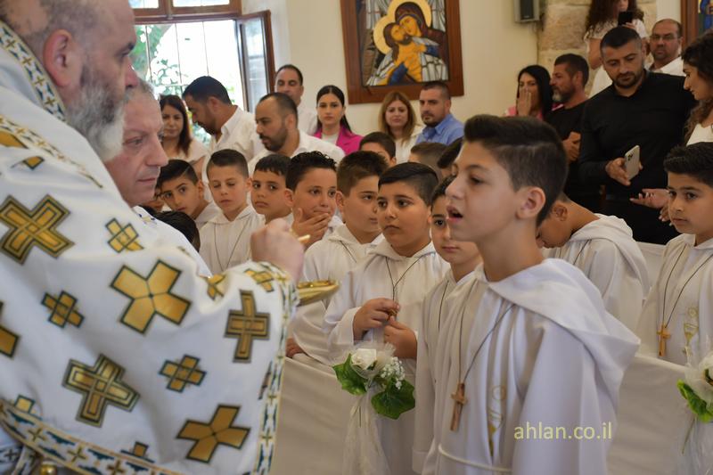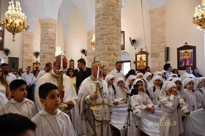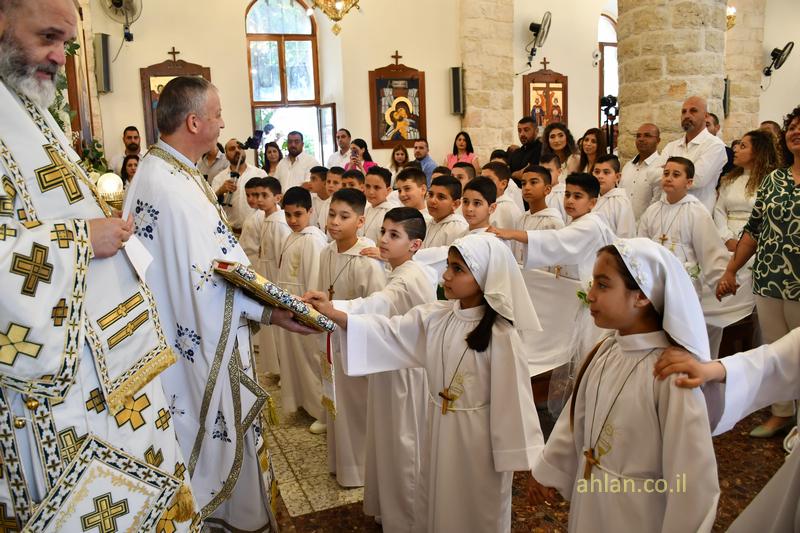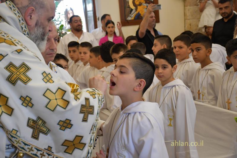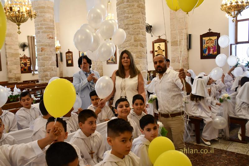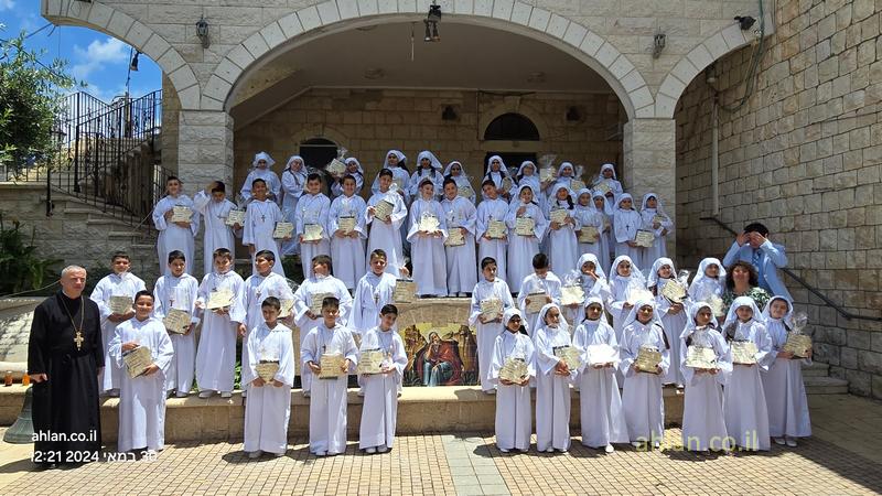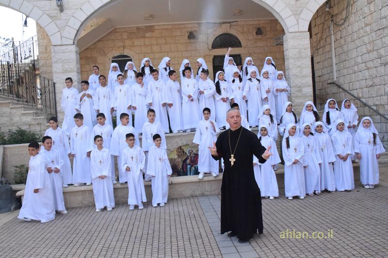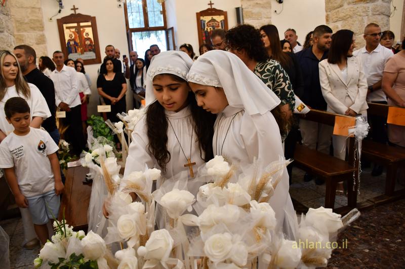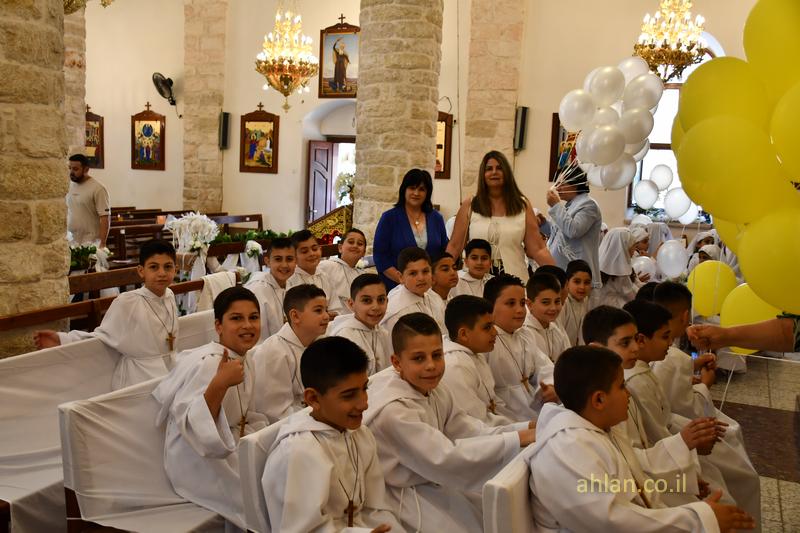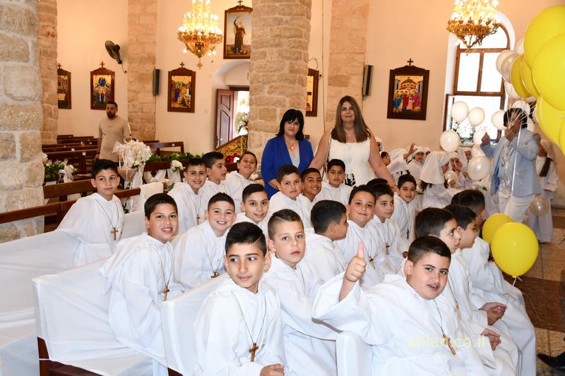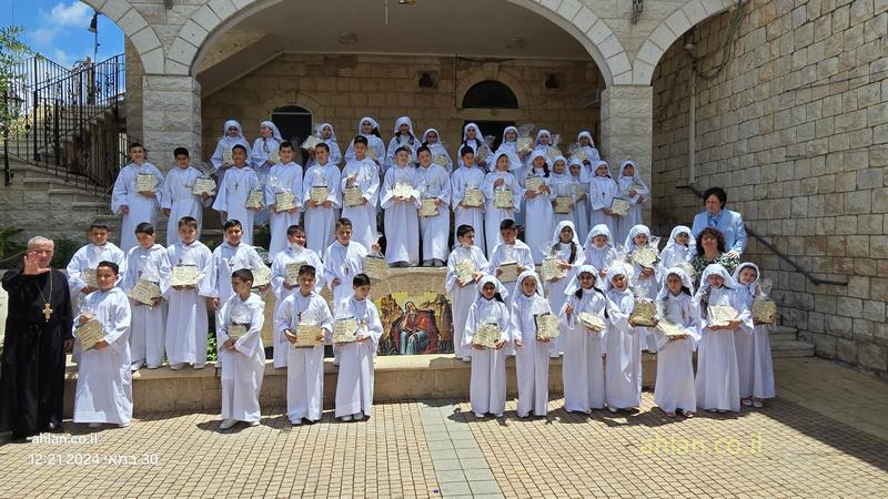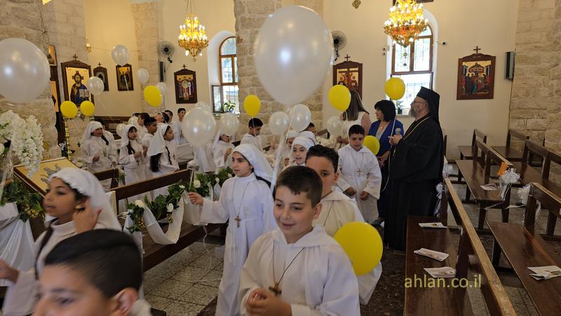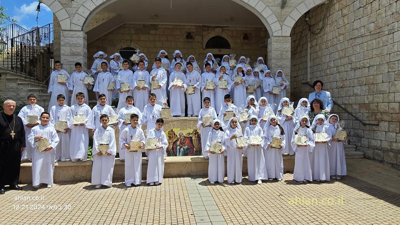 واليوم في كنيسة مار الياس للروم الملكيين الكاثوليك في #قرية فسوطة ترأس القداس الاحتفالي سيادة المطران يوسف متى كلي الوقار رئيس اساقفة عكا وحيفا والناصرة وسائر الجليل ورافقه قدس الاب ميخائيل عاصي كاهن رعية قرية فسوطة وقدس الاب سيمون حداد #كاهن رعية الجش وحضر القداس كلا من الشماسين الانجيليين نضال بشارة ورامي دكور . اقيم القداس الالهي احتفالا بخميس الجسد وجرت العادة ان يقام الاحتفال بالمناولة الاحتفالية لطلاب وطالبات الصف الرابع في البلدة وبحضور مهيب من اهالي المتقدمين للمناولة كانت فقرة الاحتفال في باحة الكنيسة بتزيين السماء ببالونات حملت شعار السلام والمحبة باللونين الابيض والاصفر ومن ثم فقرة توزيع الهدايا والتضييفات في قاعة المركز الراعوي. كلمة شكر توجه بها قدس الاب ميخائيل عاصي للمتقدمين للمناولة الاحتفاليه علي المجهود الكبير الذي قدموه من اجل انجاح هذا اليوم المبارك الا وهم المربيات والمعلمات والمرشدات اللذين تابعوا هذه المسيرة المقدسة والاهل الكرام على ما بذلوه وقدموه من دعم للكنيسة والمتقدمين للمناولة الاحتفالية وكلمة شكر لسيادة المطران على متابعته وحضوره ومشاركته ومسك الختام لموقع اهلا وراديو مريم بالبث ونقل الحدث عبر البث الحي .