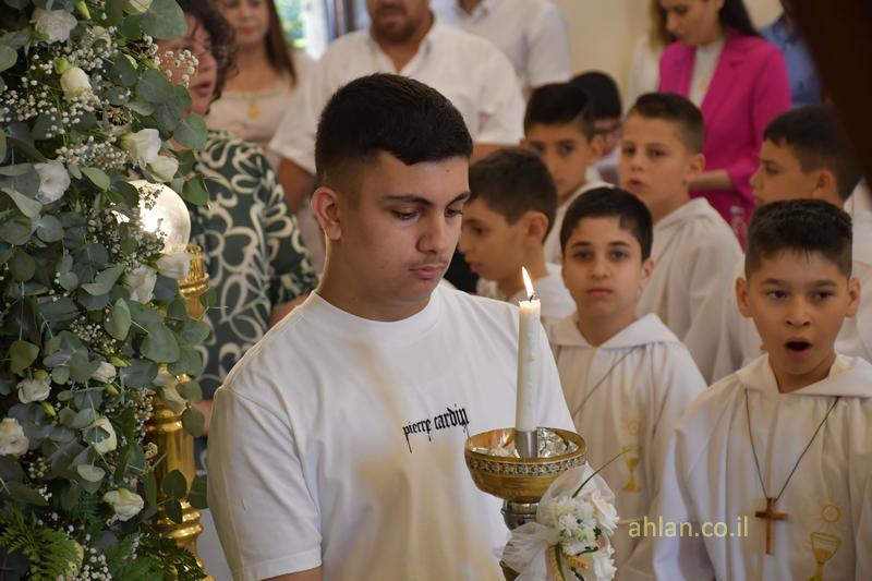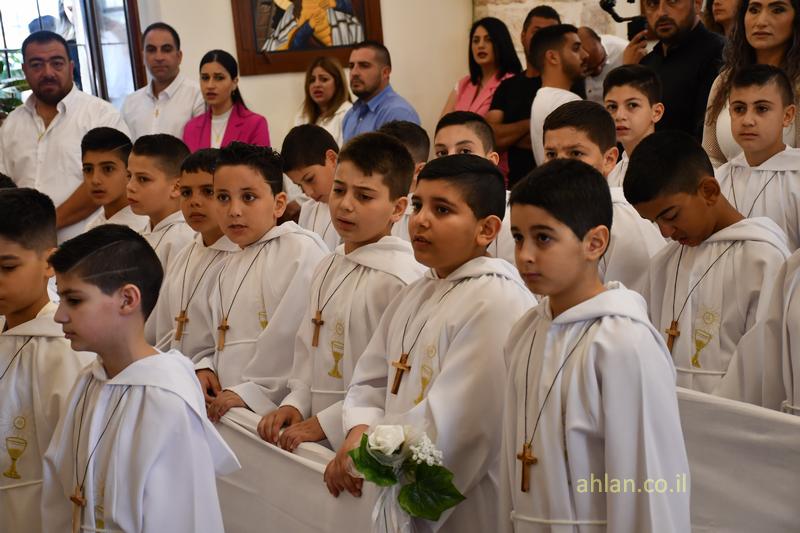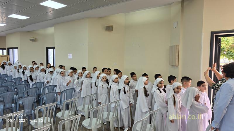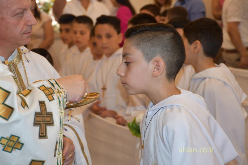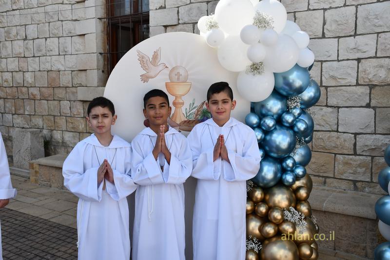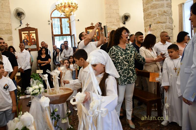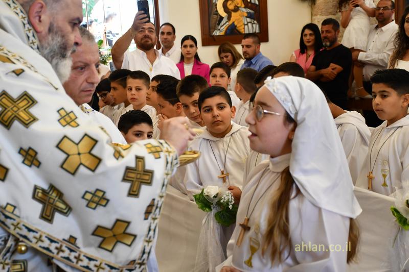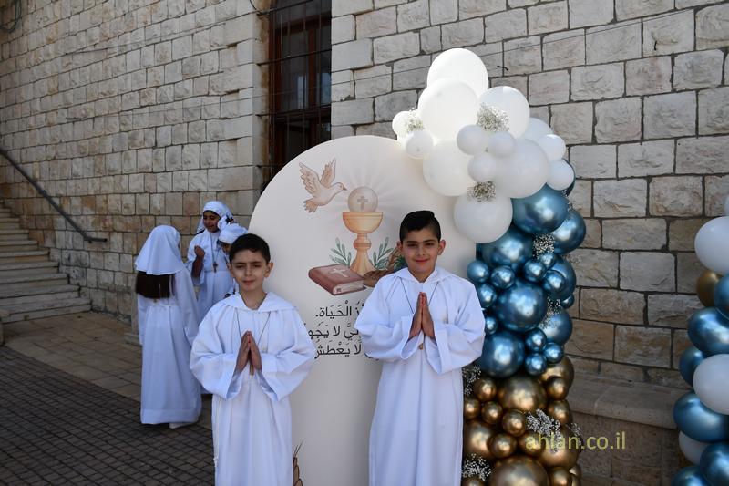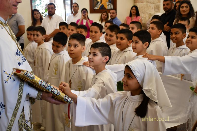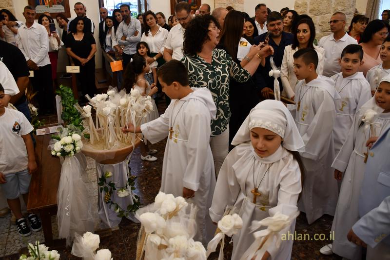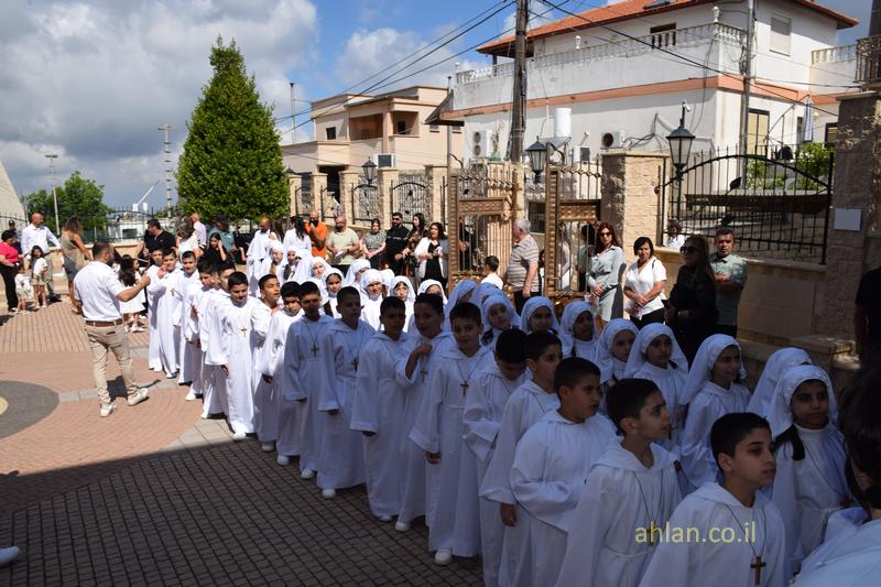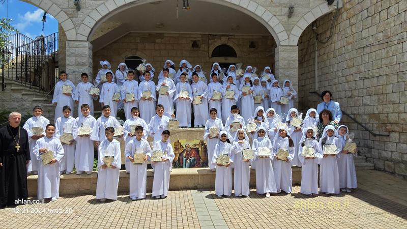 واليوم في كنيسة مار الياس للروم الملكيين الكاثوليك في #قرية فسوطة ترأس القداس الاحتفالي سيادة المطران يوسف متى كلي الوقار رئيس اساقفة عكا وحيفا والناصرة وسائر الجليل ورافقه قدس الاب ميخائيل عاصي كاهن رعية قرية فسوطة وقدس الاب سيمون حداد #كاهن رعية الجش وحضر القداس كلا من الشماسين الانجيليين نضال بشارة ورامي دكور . اقيم القداس الالهي احتفالا بخميس الجسد وجرت العادة ان يقام الاحتفال بالمناولة الاحتفالية لطلاب وطالبات الصف الرابع في البلدة وبحضور مهيب من اهالي المتقدمين للمناولة كانت فقرة الاحتفال في باحة الكنيسة بتزيين السماء ببالونات حملت شعار السلام والمحبة باللونين الابيض والاصفر ومن ثم فقرة توزيع الهدايا والتضييفات في قاعة المركز الراعوي. كلمة شكر توجه بها قدس الاب ميخائيل عاصي للمتقدمين للمناولة الاحتفاليه علي المجهود الكبير الذي قدموه من اجل انجاح هذا اليوم المبارك الا وهم المربيات والمعلمات والمرشدات اللذين تابعوا هذه المسيرة المقدسة والاهل الكرام على ما بذلوه وقدموه من دعم للكنيسة والمتقدمين للمناولة الاحتفالية وكلمة شكر لسيادة المطران على متابعته وحضوره ومشاركته ومسك الختام لموقع اهلا وراديو مريم بالبث ونقل الحدث عبر البث الحي .